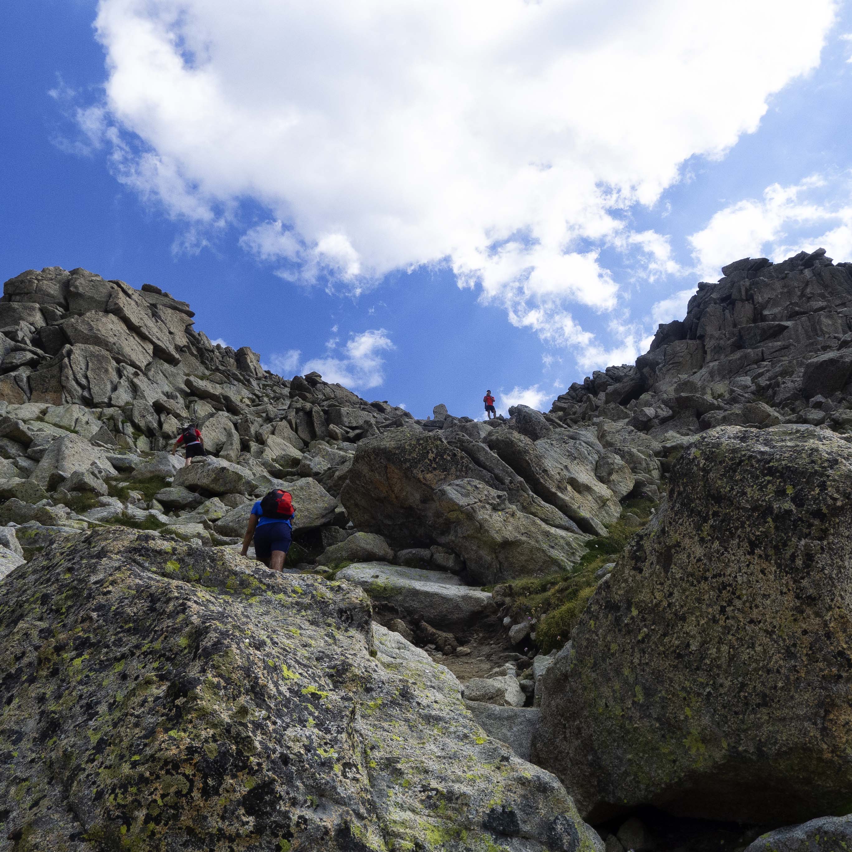 En el tercio final de la pala, la presencia de grandes bloques de granito nos fuerzan a poner las manos al suelo, más por estabilidad que por otra cosa.