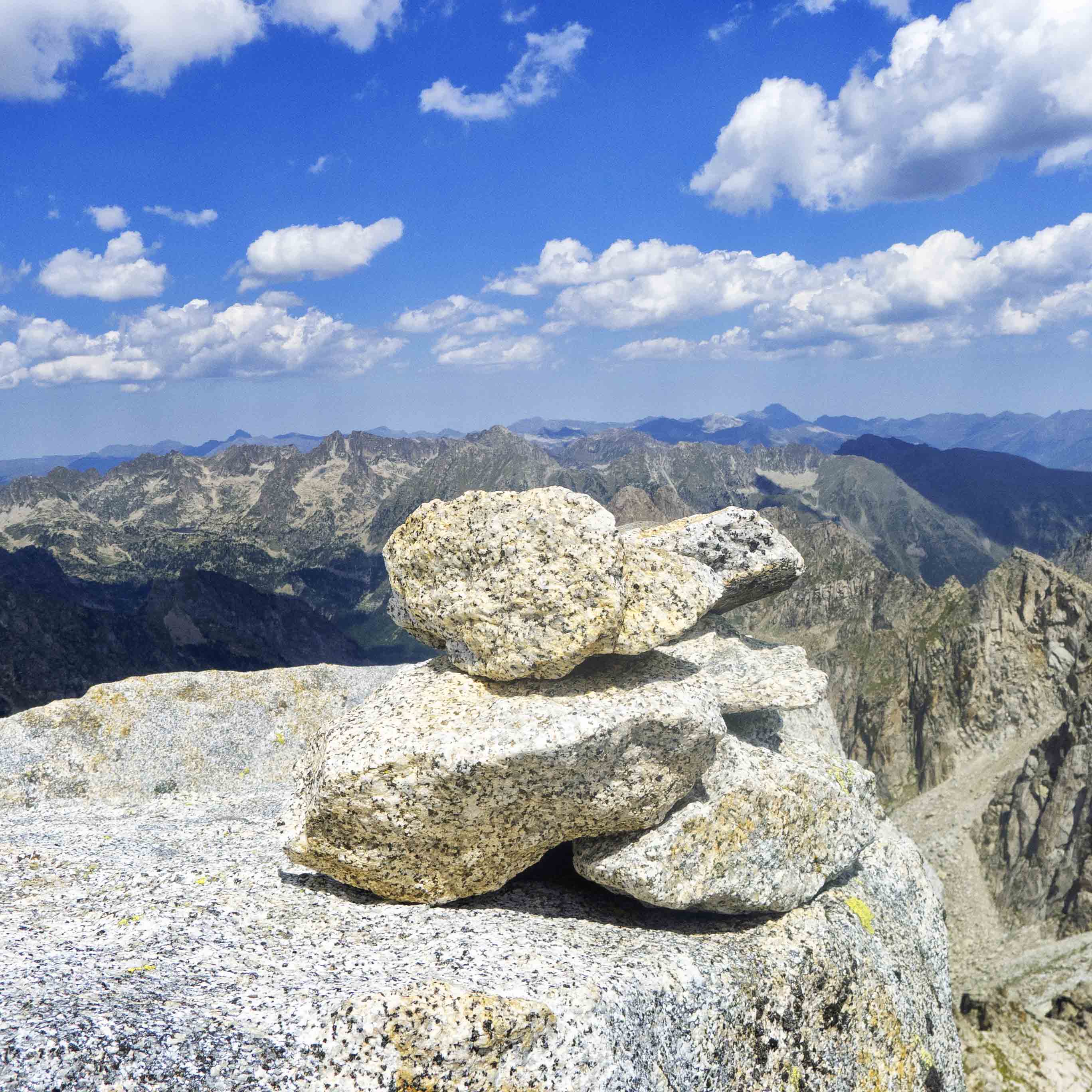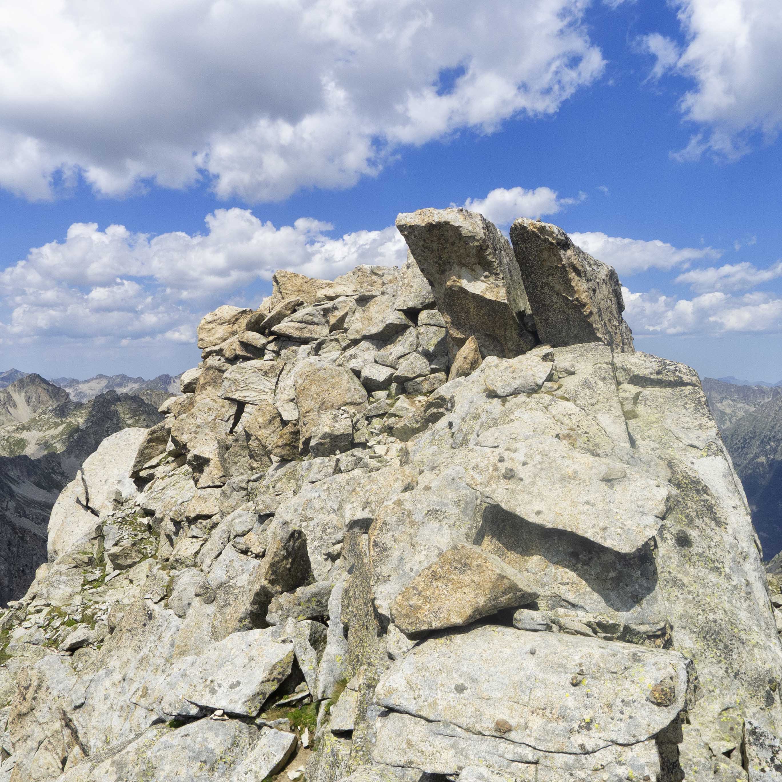 El austero hito que marca la cumbre del Pic de Peguera.