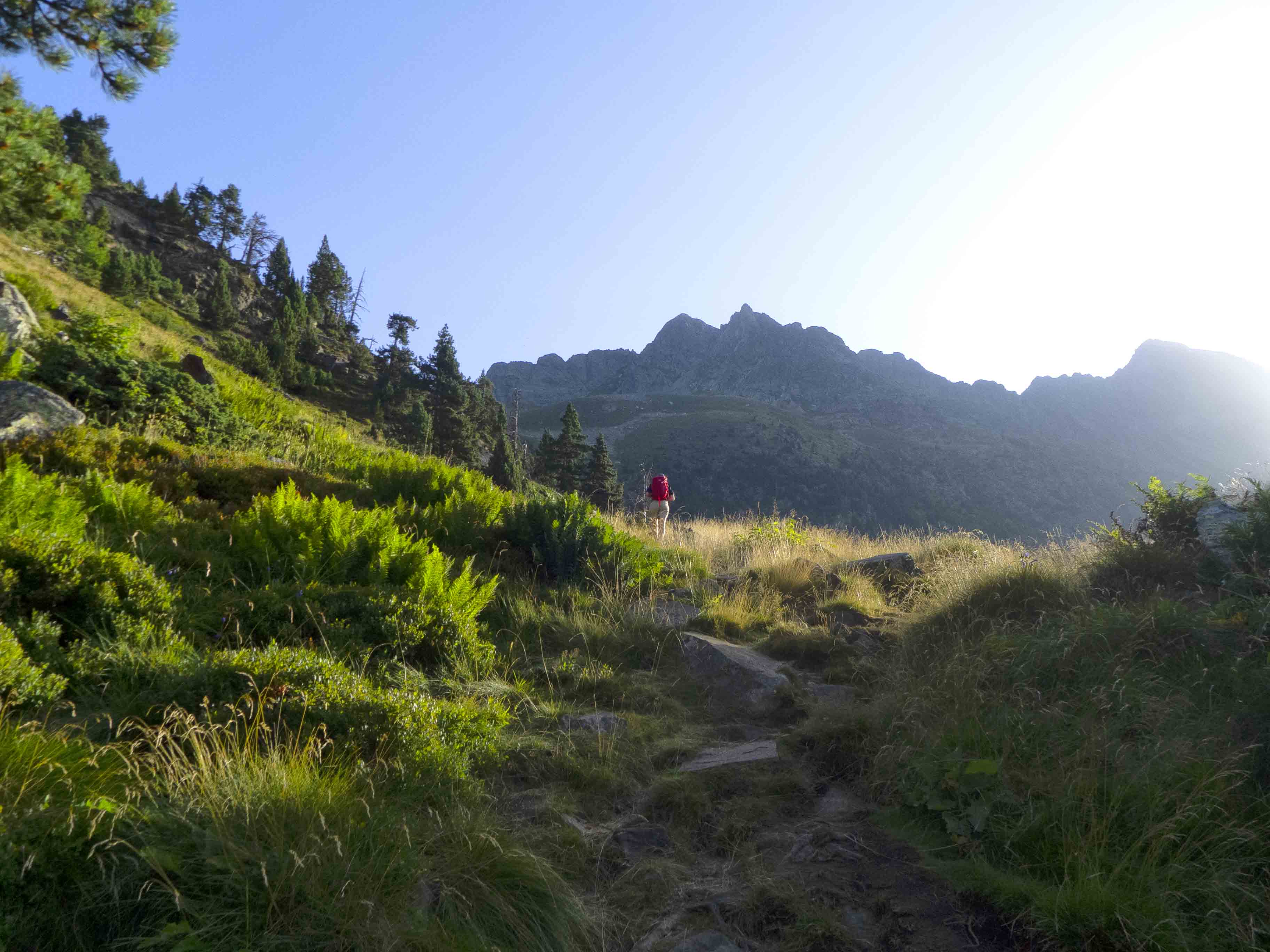 Llegamos al Puerto de la Glera, uno de los collados que separan el valle de Benasque del valle de Luchon, de mucha inferior altura. Por ello, la vertiente francesa del Puerto se hunde abruptamente, a diferencia de la española, que pierde altura de forma mucho más gradual. Nuestra dirección es otra, concretamente hacia el oeste, donde está situada la cabecera de Gorgutes, que forman el Sacroux y el Estauas. Para ello, empezamos al andadura aprovechando el buen sendero que conduce al primer pico, un clásico del valle.