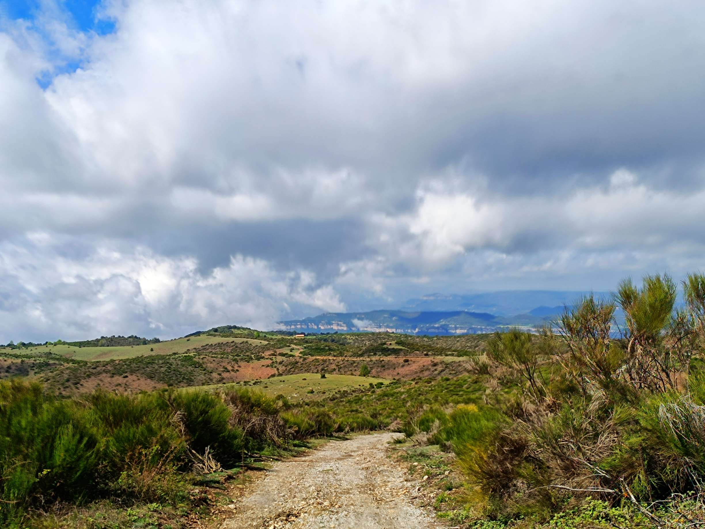 Con el Sui en el horizonte, la pista empieza un suave ascenso por la incipiente arista SE del Pla de la Calma, cuya primera elevación en el modesto Turó del Socarrat, que aparece precediendo al Sui.