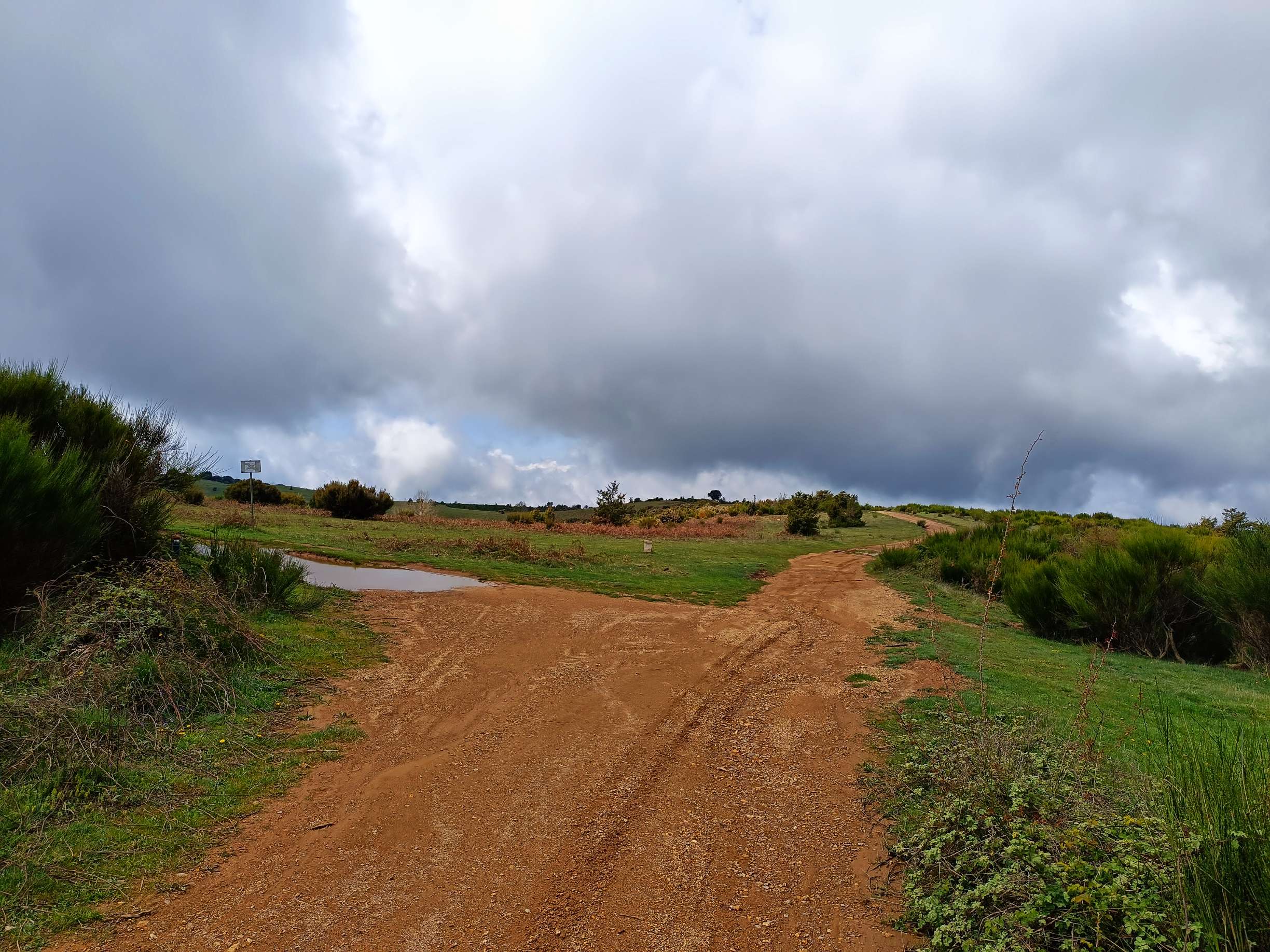 Curiosamente, la pista cambia de color y adquiere un tono rojizo debido a la mayor presencia de arcillas en el suelo. Tras caminar unos minutos por el altiplano, llegamos a un cruce de caminos y giramos a la derecha para tomar la pista que sube hasta la tercera gran cumbre del Montseny.
