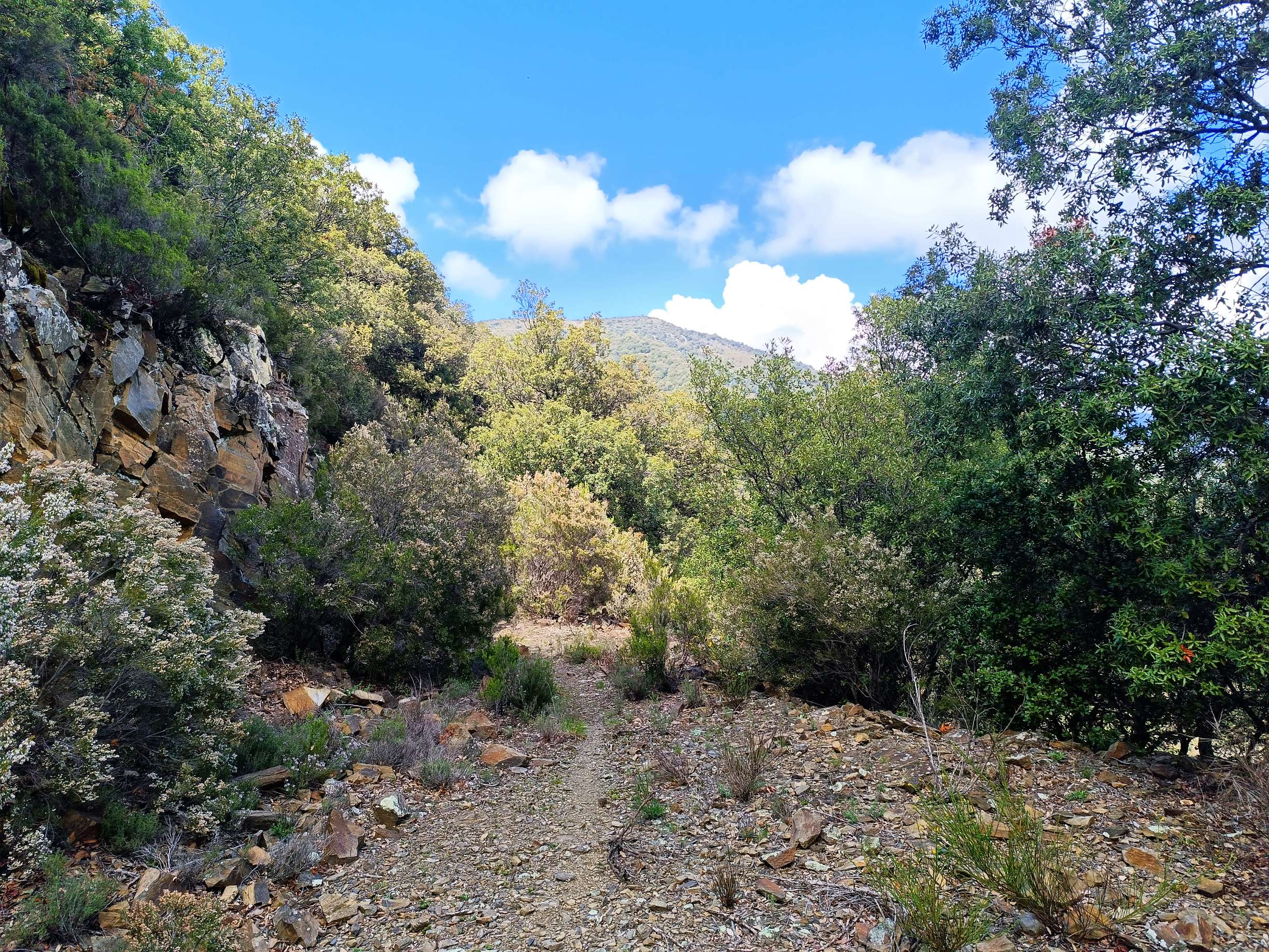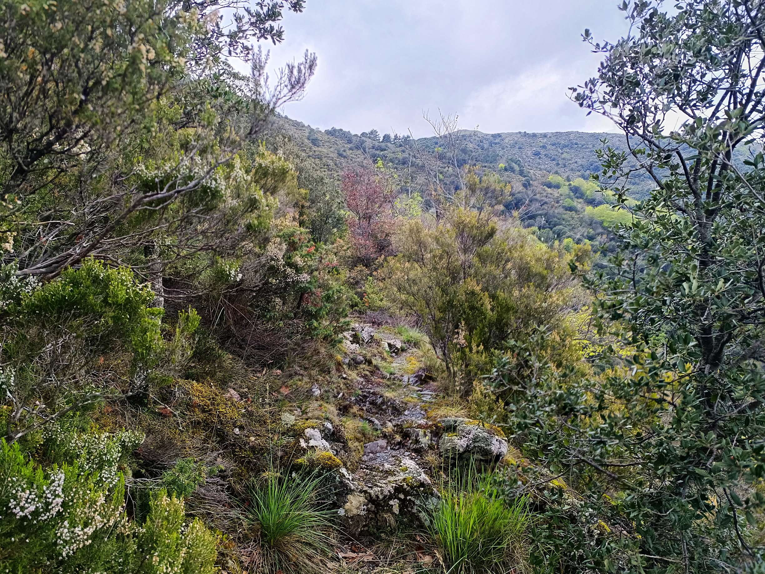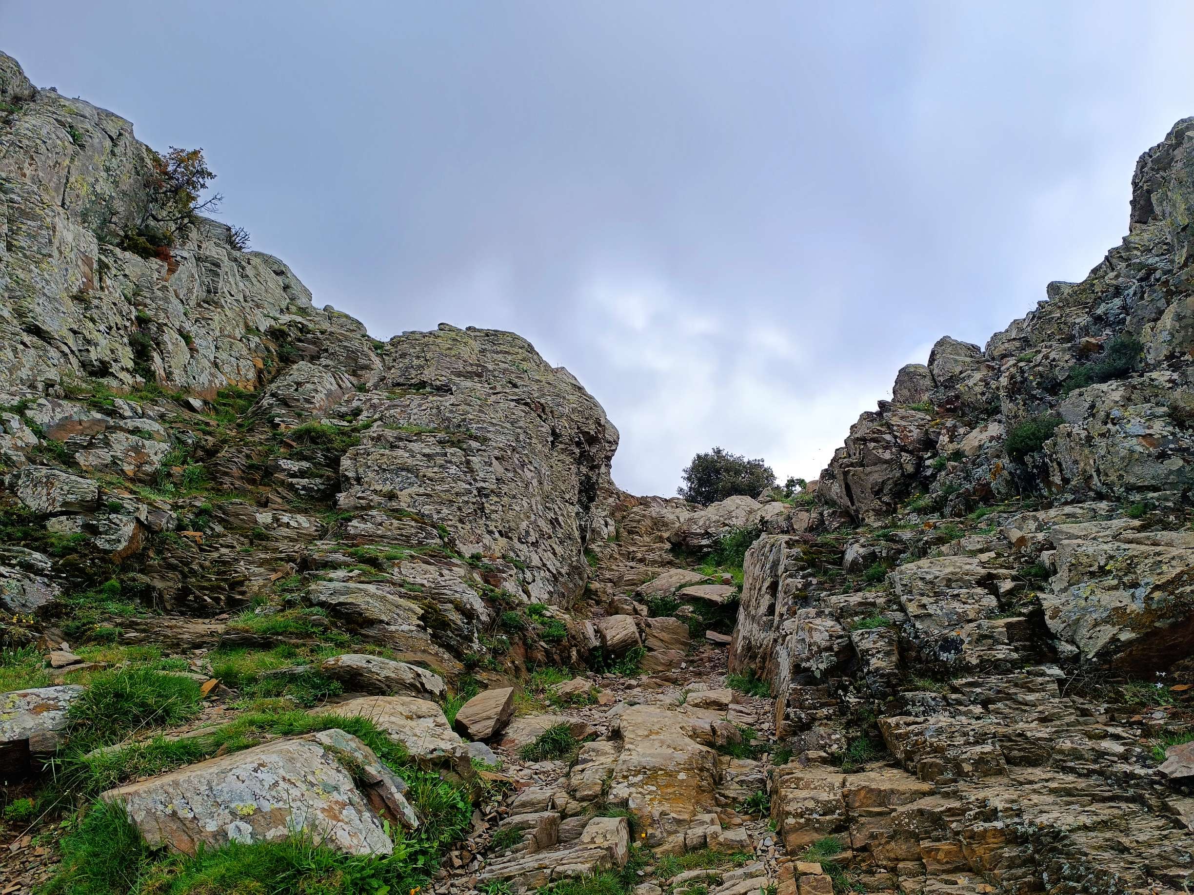 El sendero asciende por el lado derecho de un espinazo rocoso que tenemos que coronar.