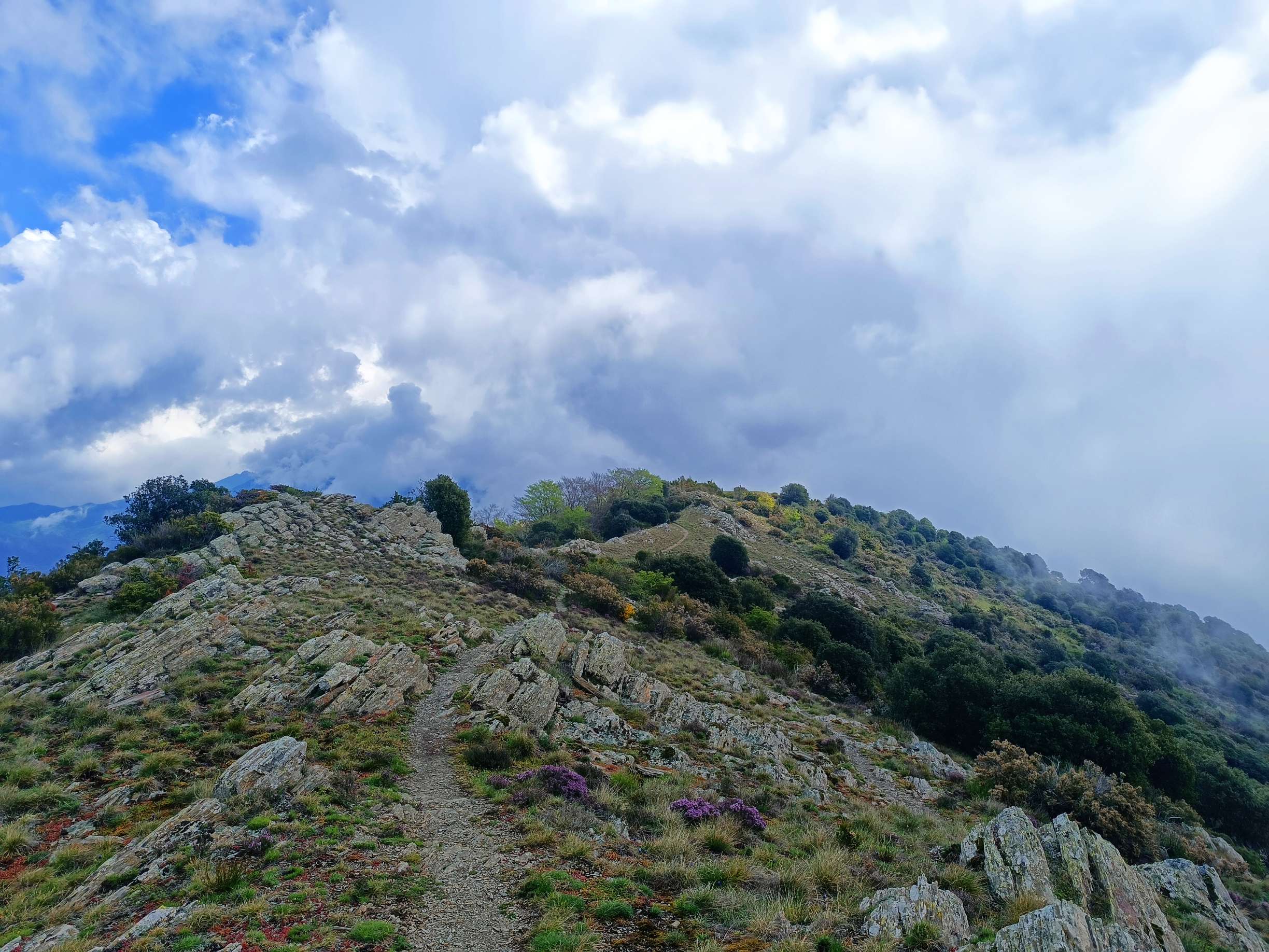 Finalmente, alcanzamos la cresta somital del Turó del Samont, cuya cumbre nos aguarda al otro lado mientras vemos como los últimos retazos de la tormenta se desvanecen.