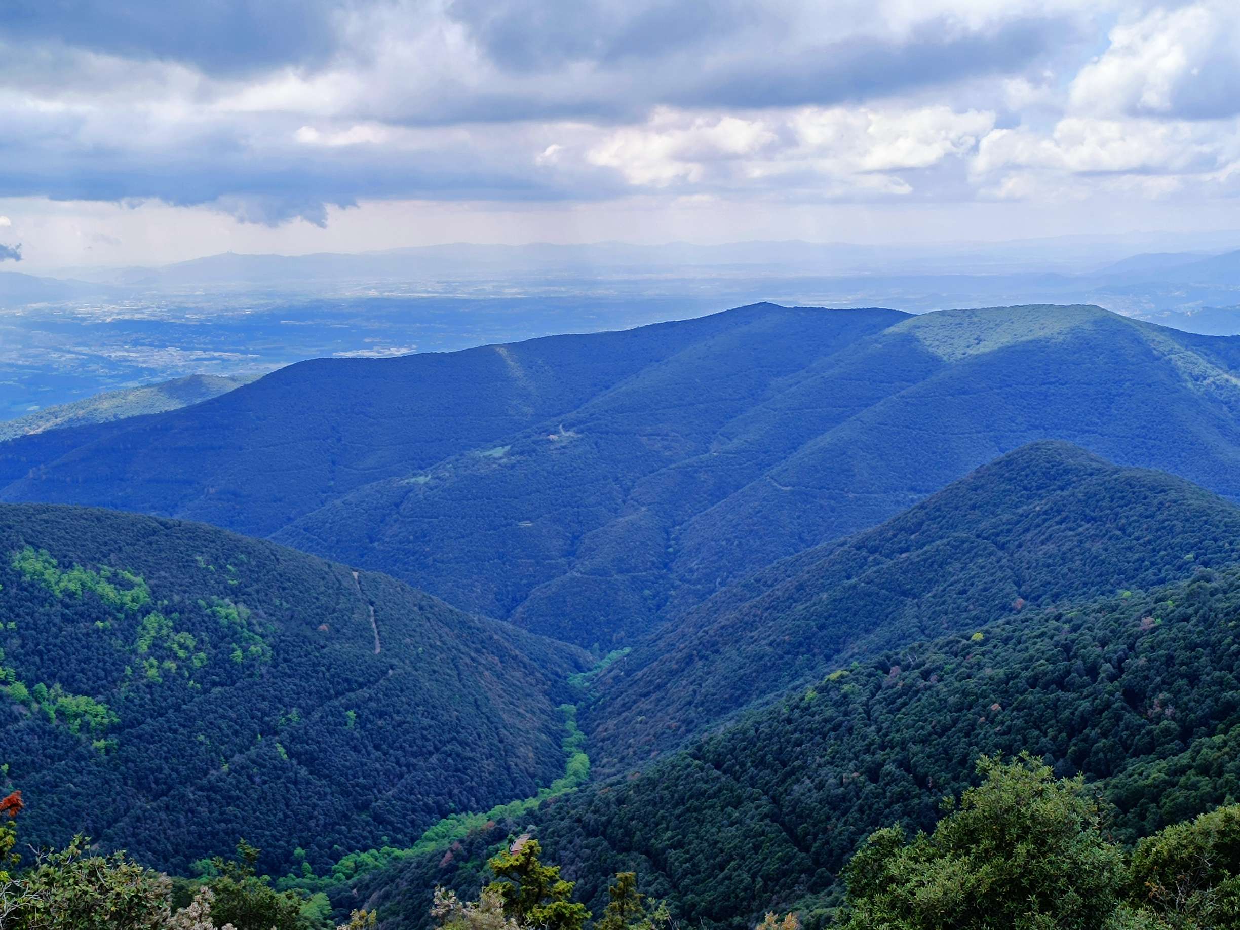 Hacia el sur, los "turons" del Montseny van perdiendo potencia hasta fundirse con la llanura del Vallès.