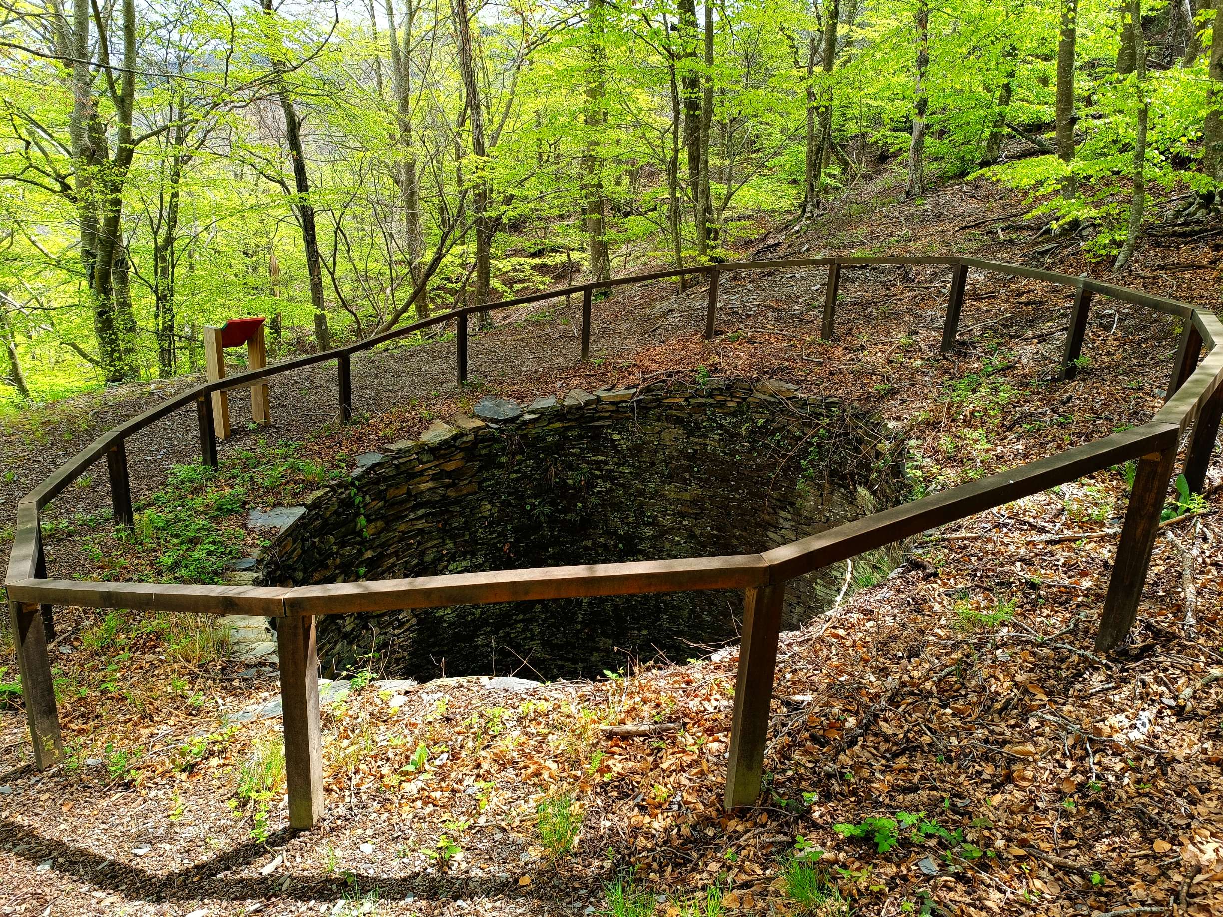 Tras descender una veintena de metros, llegamos al pozo de hielo d'en Bessa, de un tamaño más que notable. Estos pozos de hielo son bastante habituales en el Montseny, ya que aprovechaban la abundante precipitación que cae en esta zona y el frío que hace en sus partes altas para tener hielo durante todo el año.