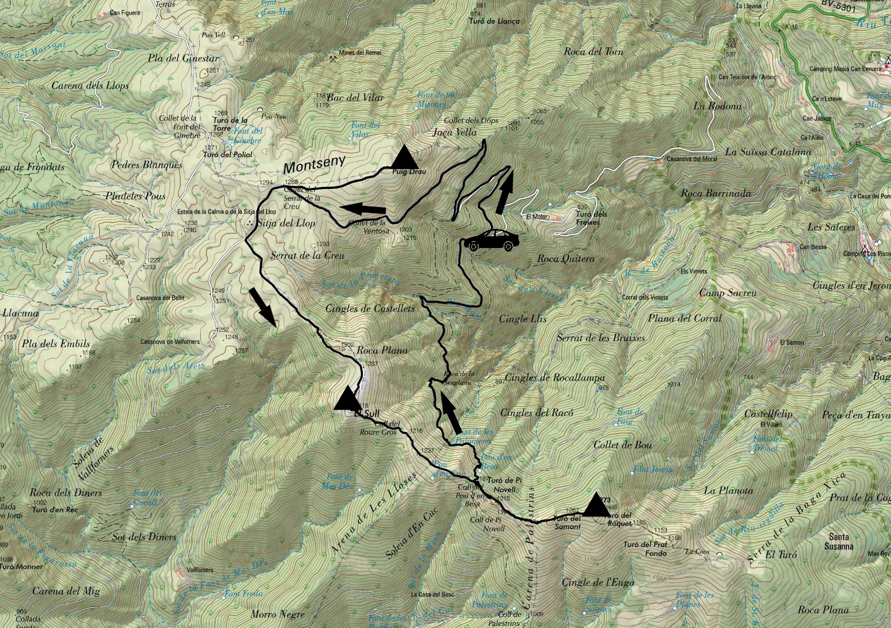 Puig Drau (1.345 m), el Sui (1.319 m) y Turó del Samont (1.273 m)