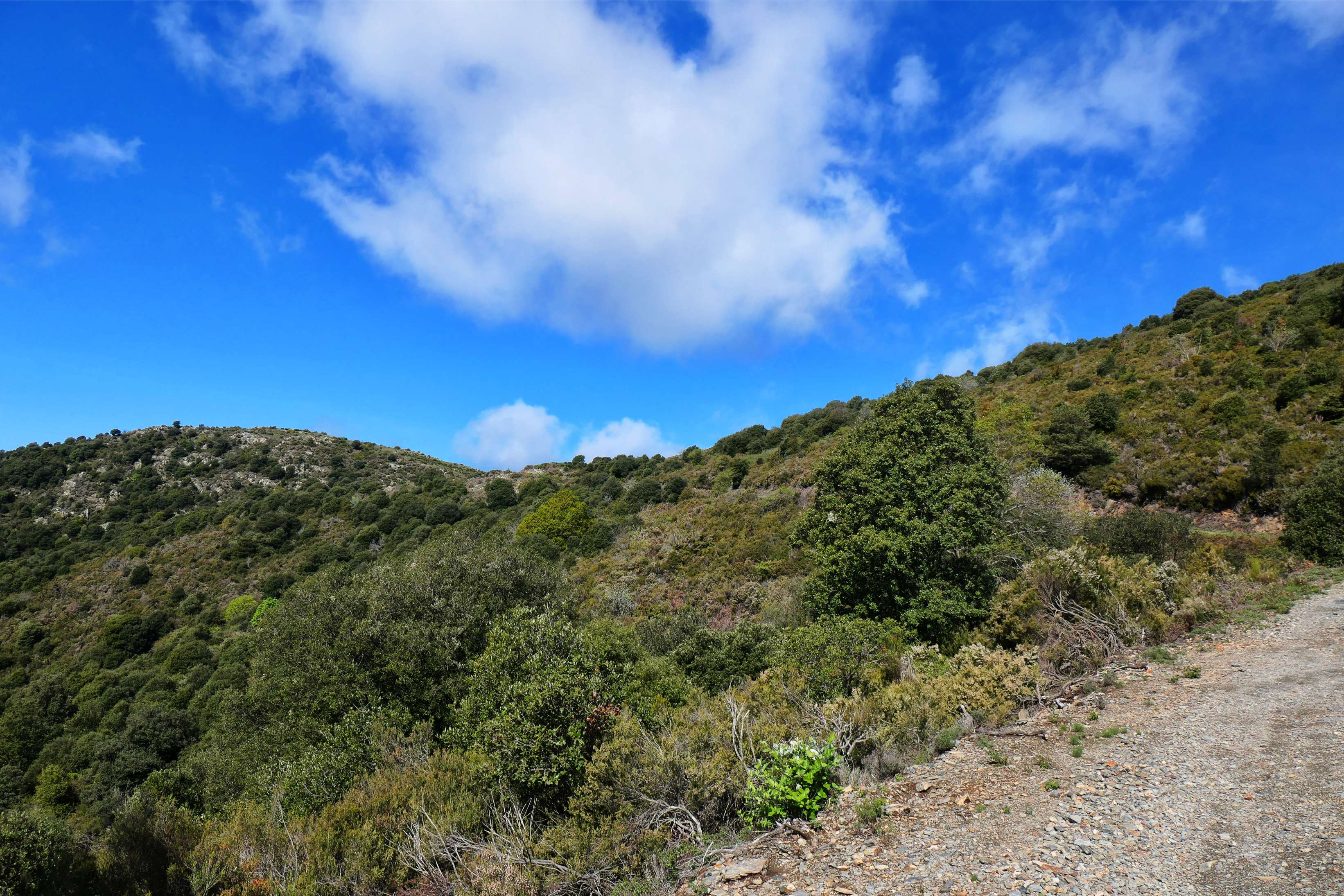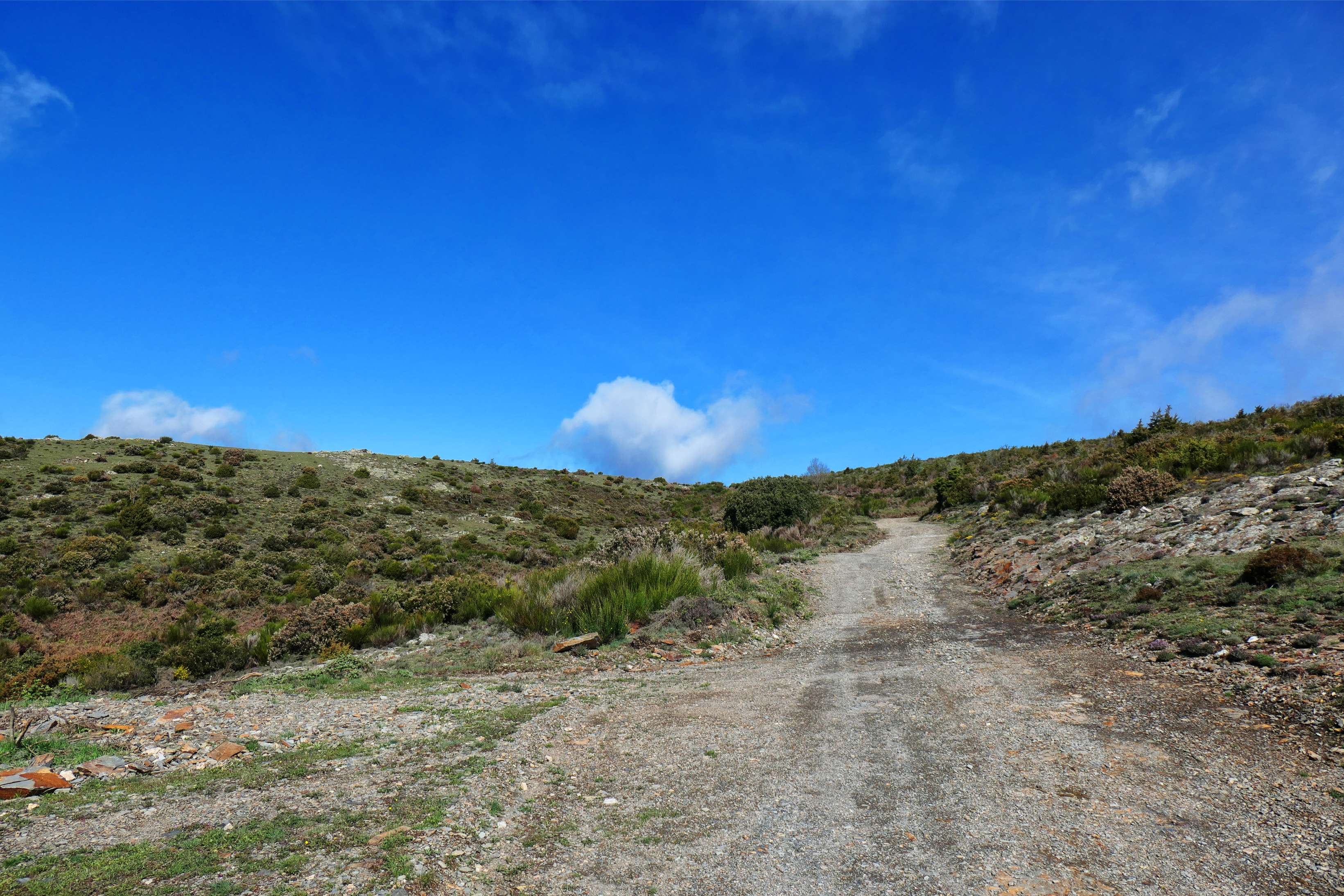 Al otro lado del barranco, el sendero se transforma en pista, la misma que, en menos de un kilómetro, se unirá a la pista donde hemos dejado el coche, justo en la curva donde lo hemos aparcado.