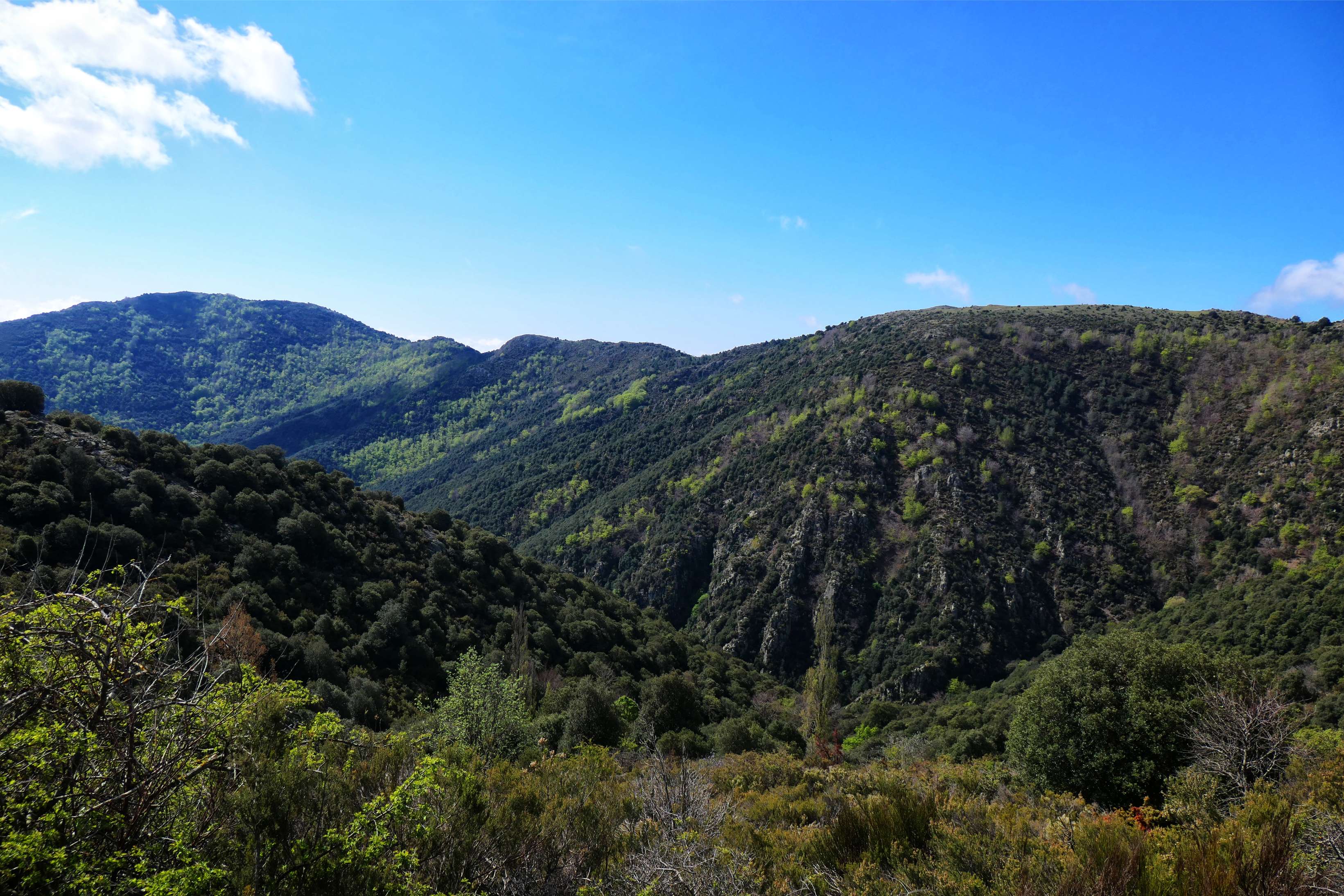 La pista es bastante larga y puede resultar monótona, ya que debemos recorrer casi 4 km para alcanzar lo alto del macizo, en su mayoría atravesando un bosque que limita las panorámicas. Al principio, podemos ver el Turó del Samont al otro lado del Riu Major y cerrando la arista SE del Pla de la Calma, que recorreremos casi por completo. Entre el tupido bosque del Montseny, los únicos claros son los abiertos alrededor de las masías que emergen entre la fronda, como la del Molar, justo debajo de nosotros.