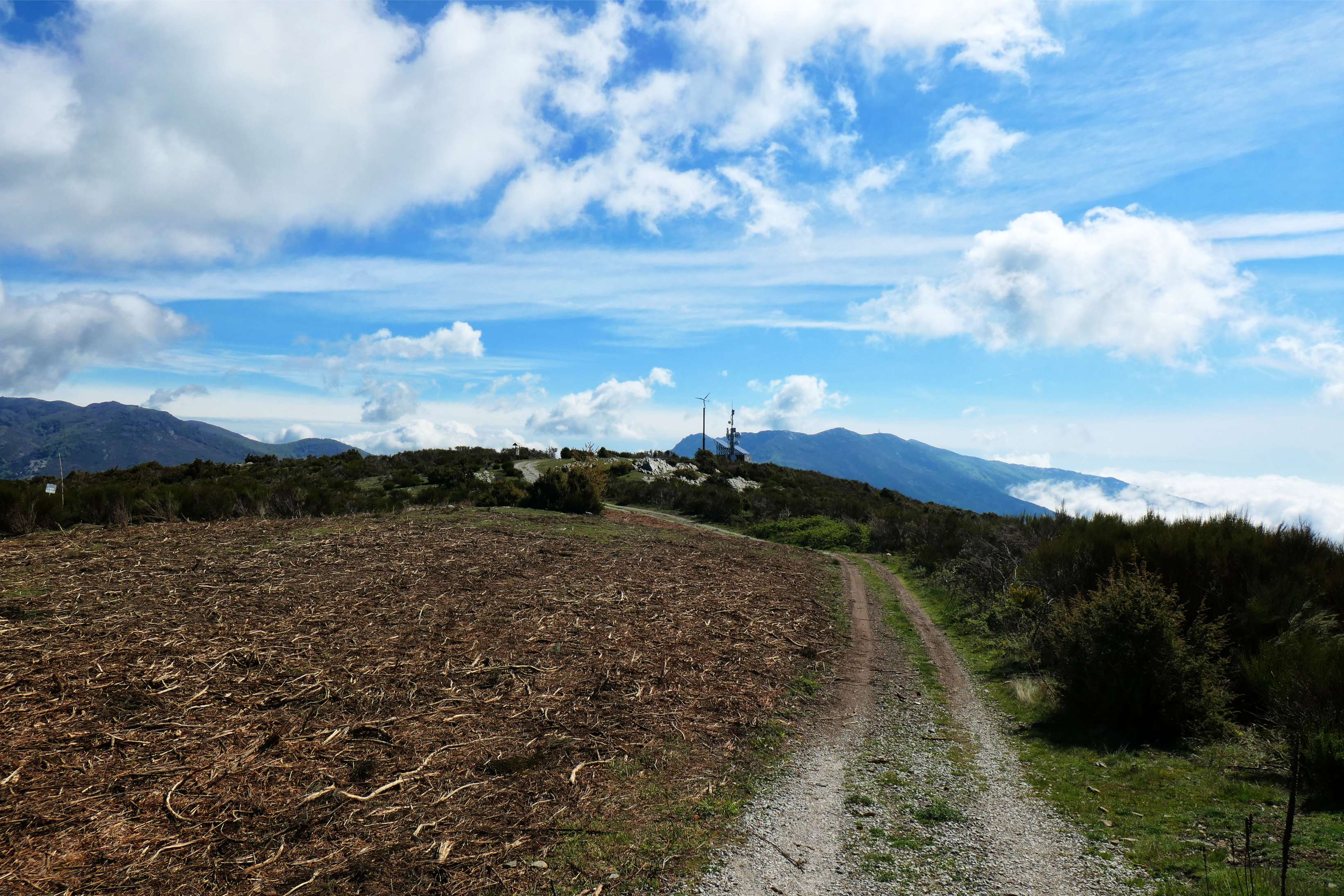 Ascendidos unos 50 metros la cima del Puig Drau aparece en el cercano horizonte, que compartiremos con unas antenas y placas solares.