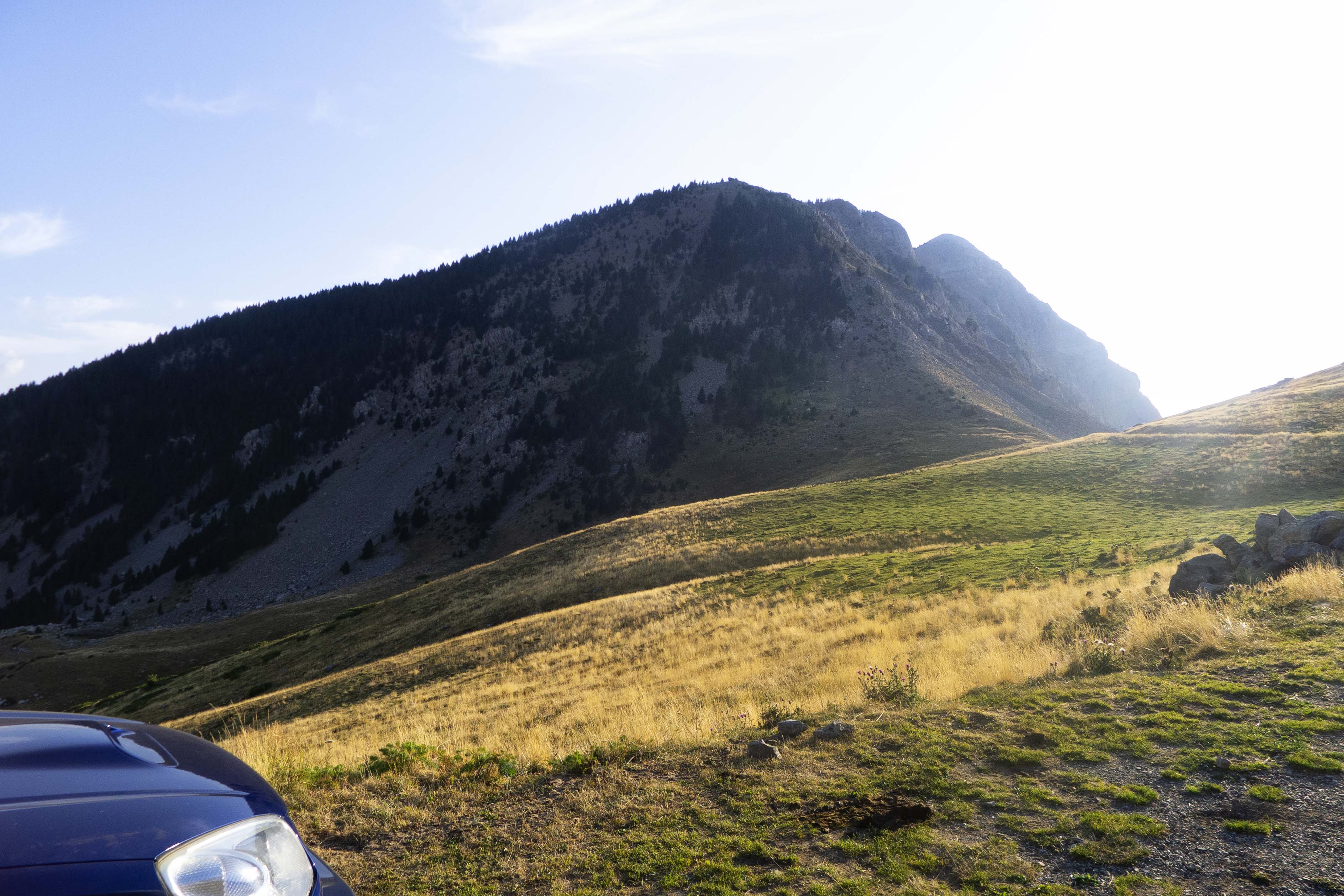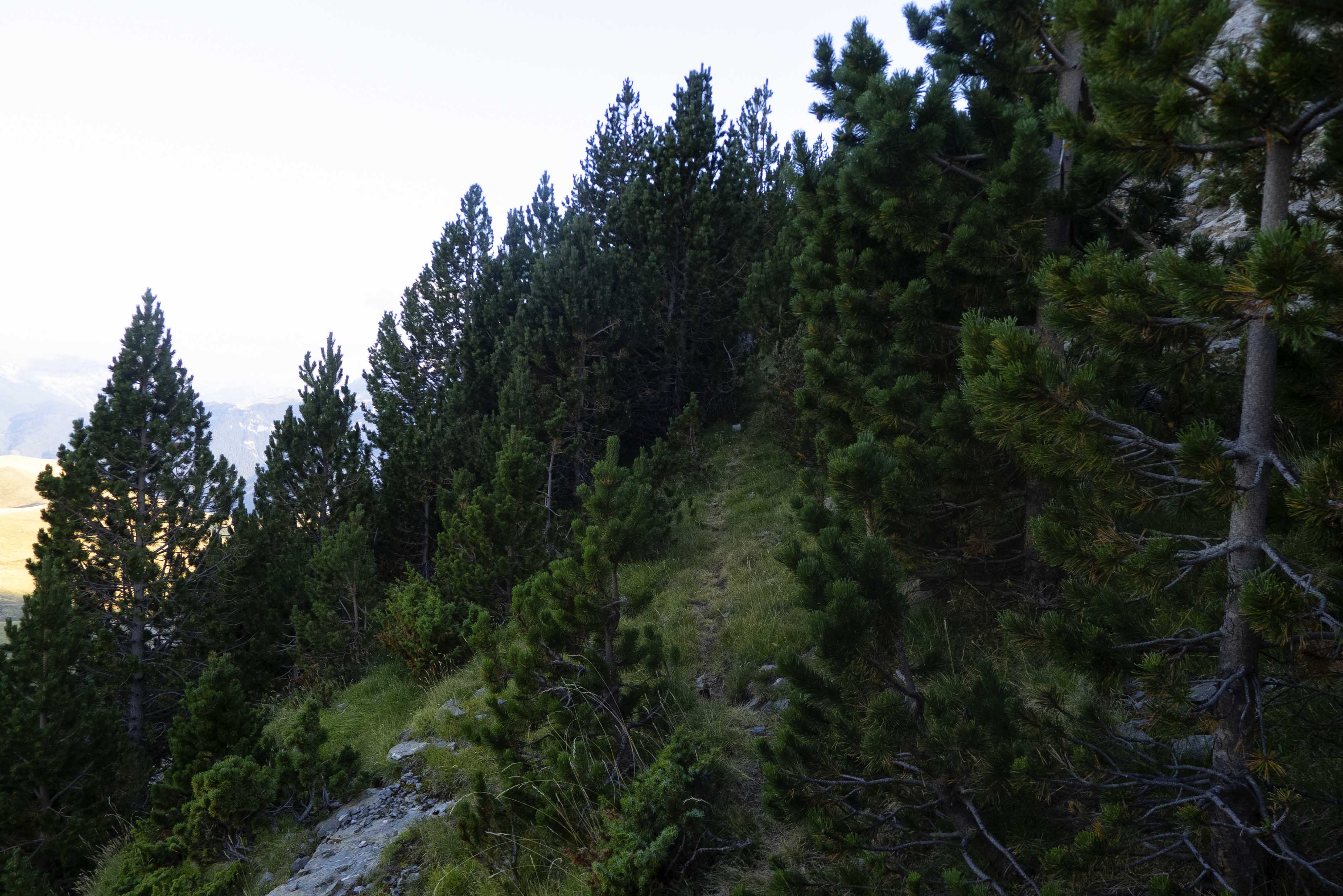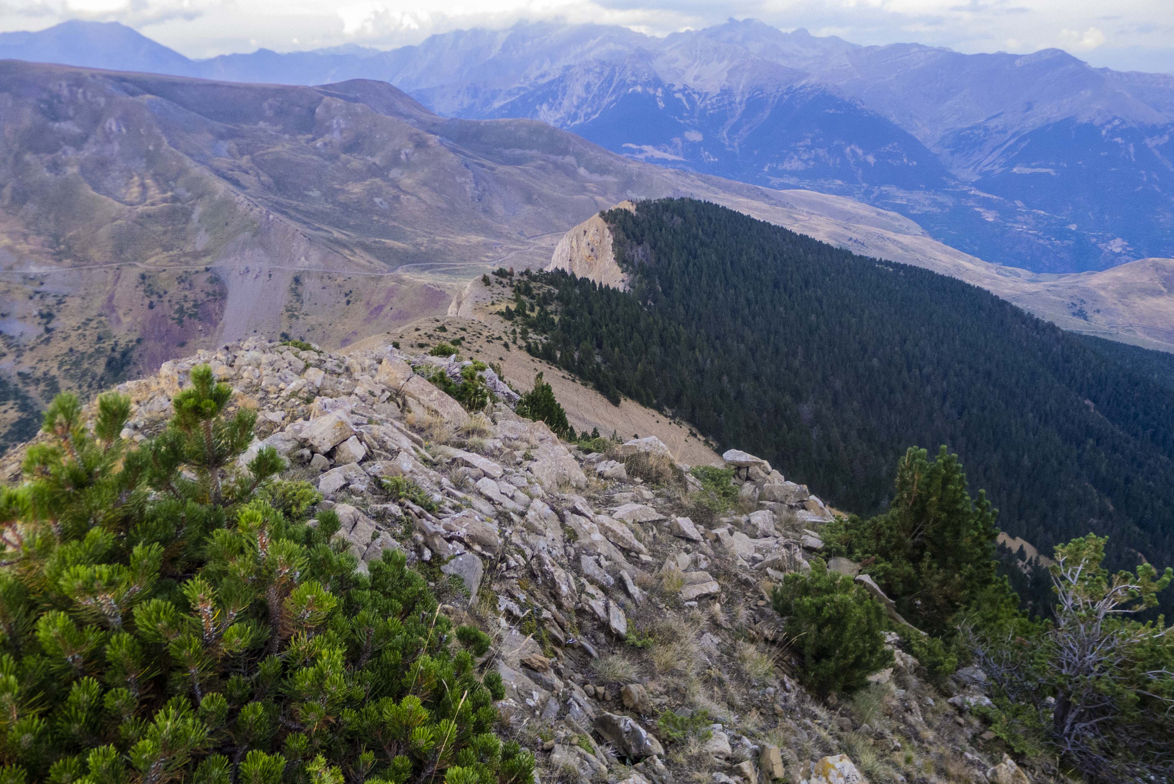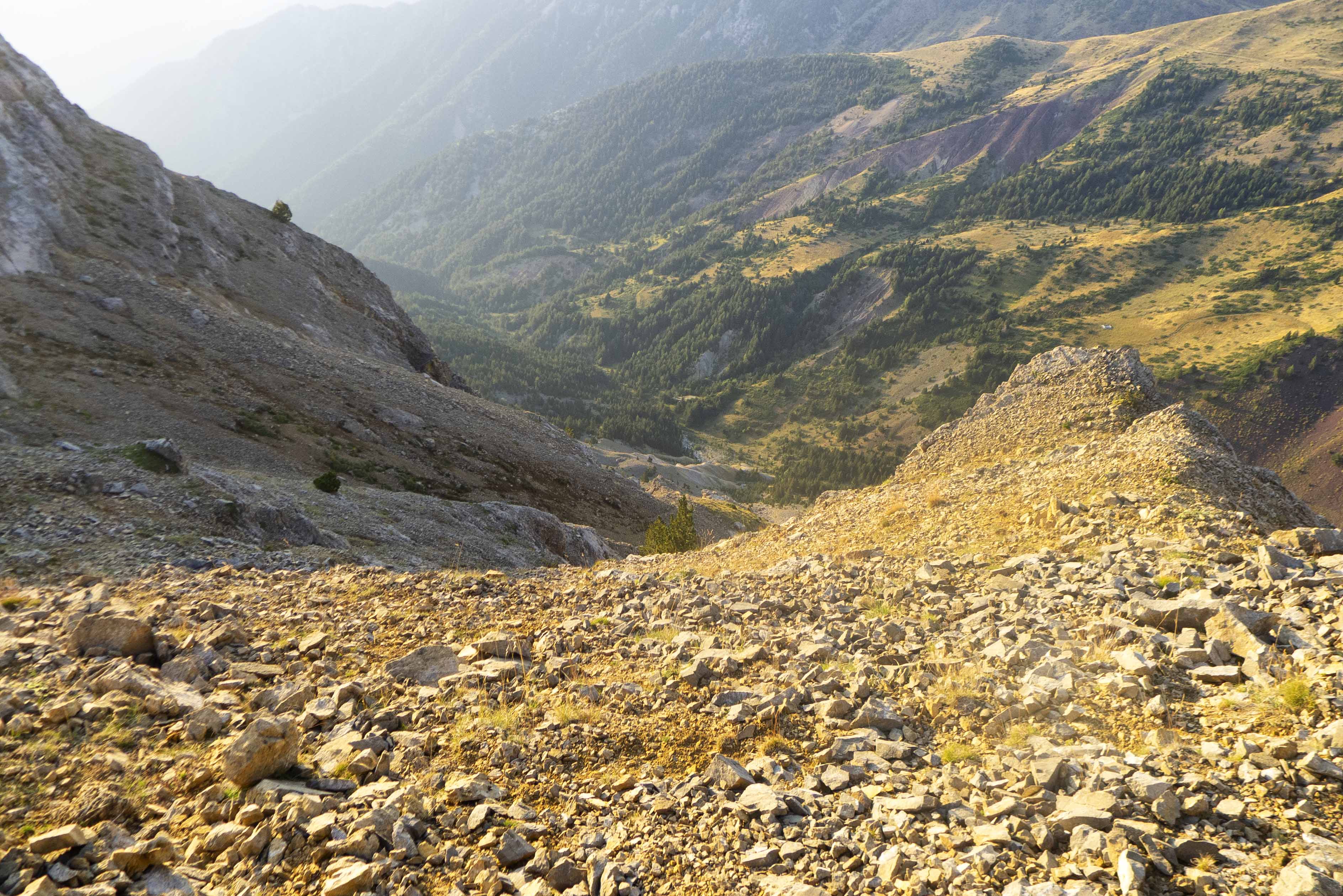 Cuando llegamos al cambio de vertiente, el sendero desaparece o nosotros lo perdemos, pero ya no es necesario puesto que, ya que el terreno es cómodo, vamos directamente hacia el norte, donde se encuentra la cresta.
