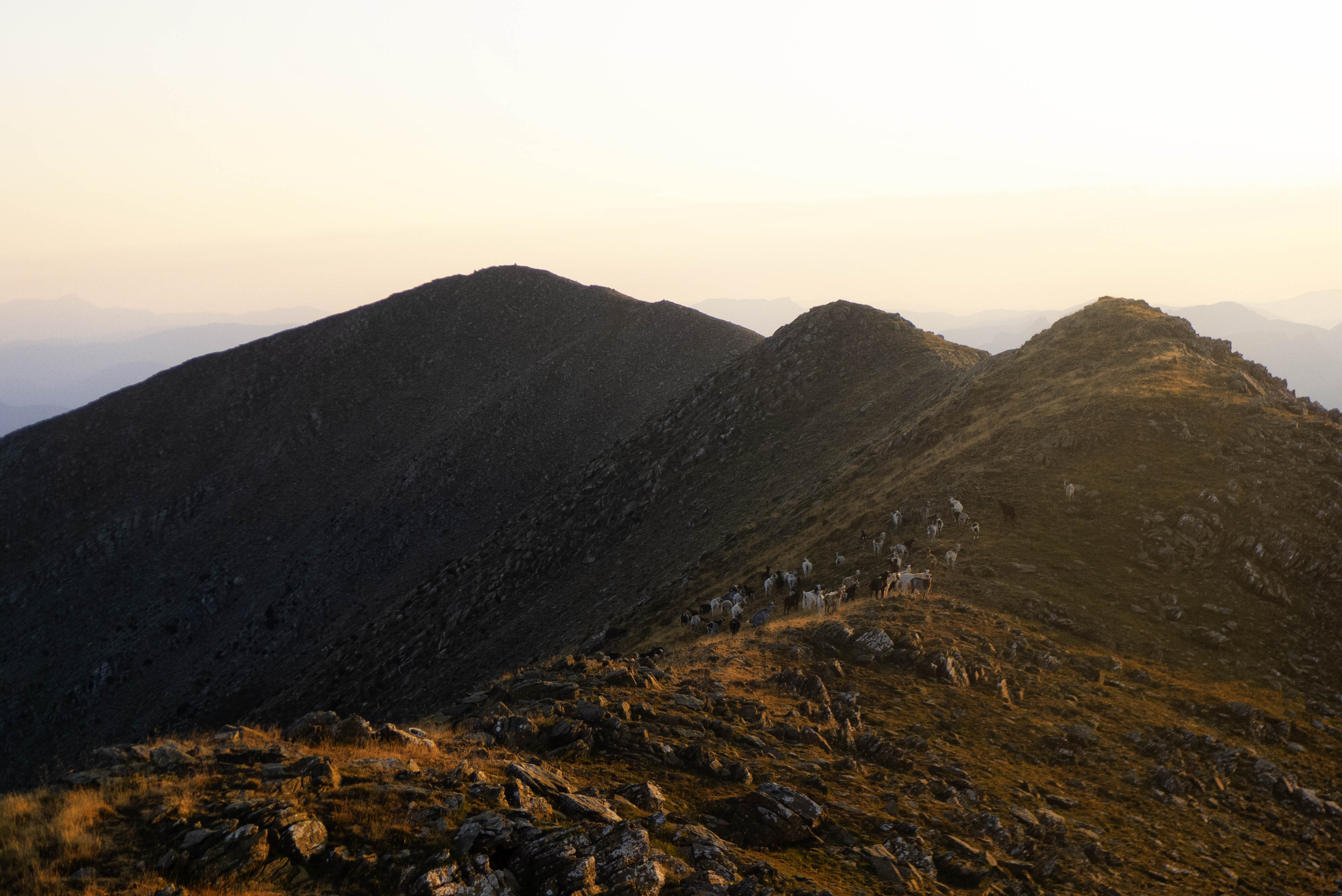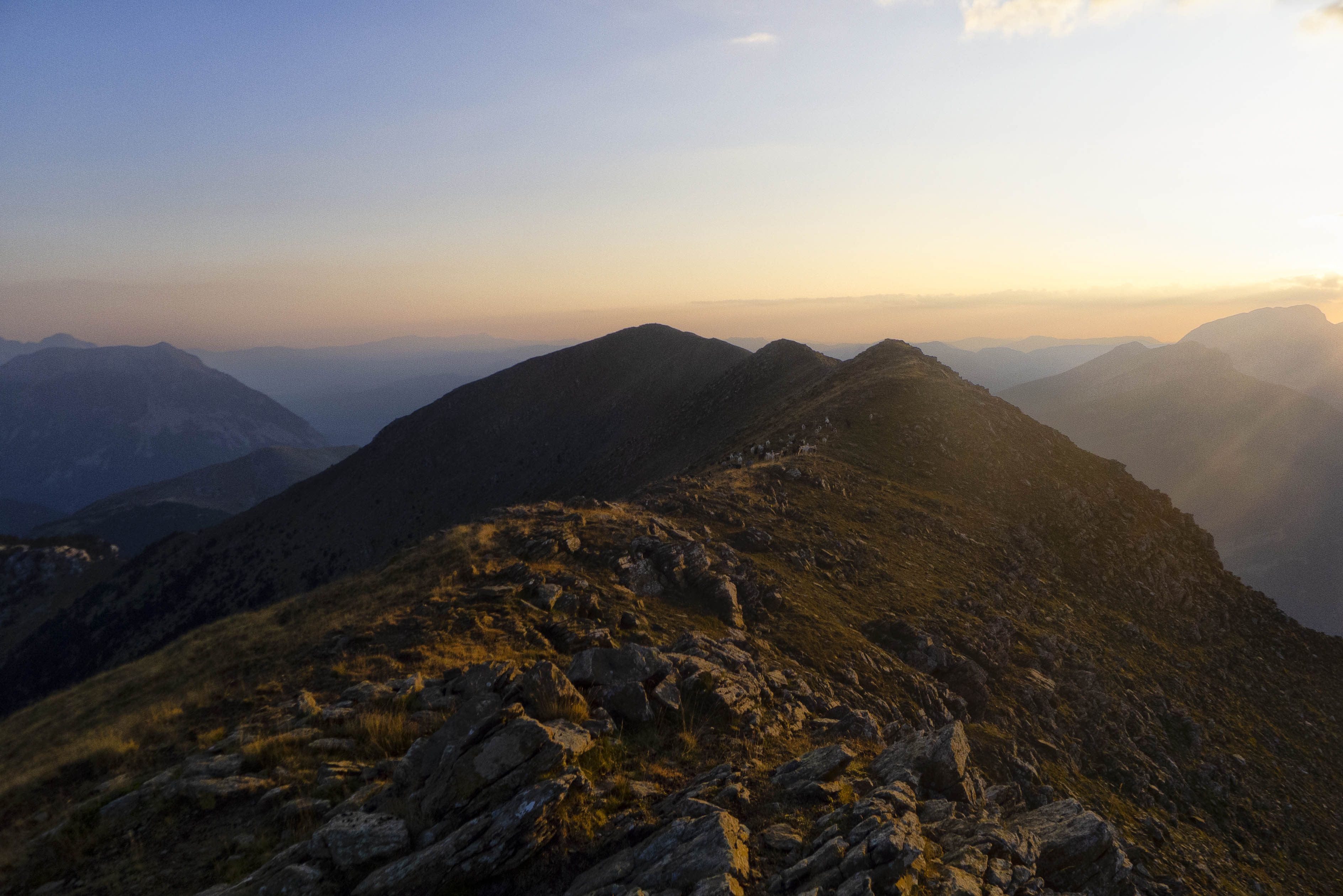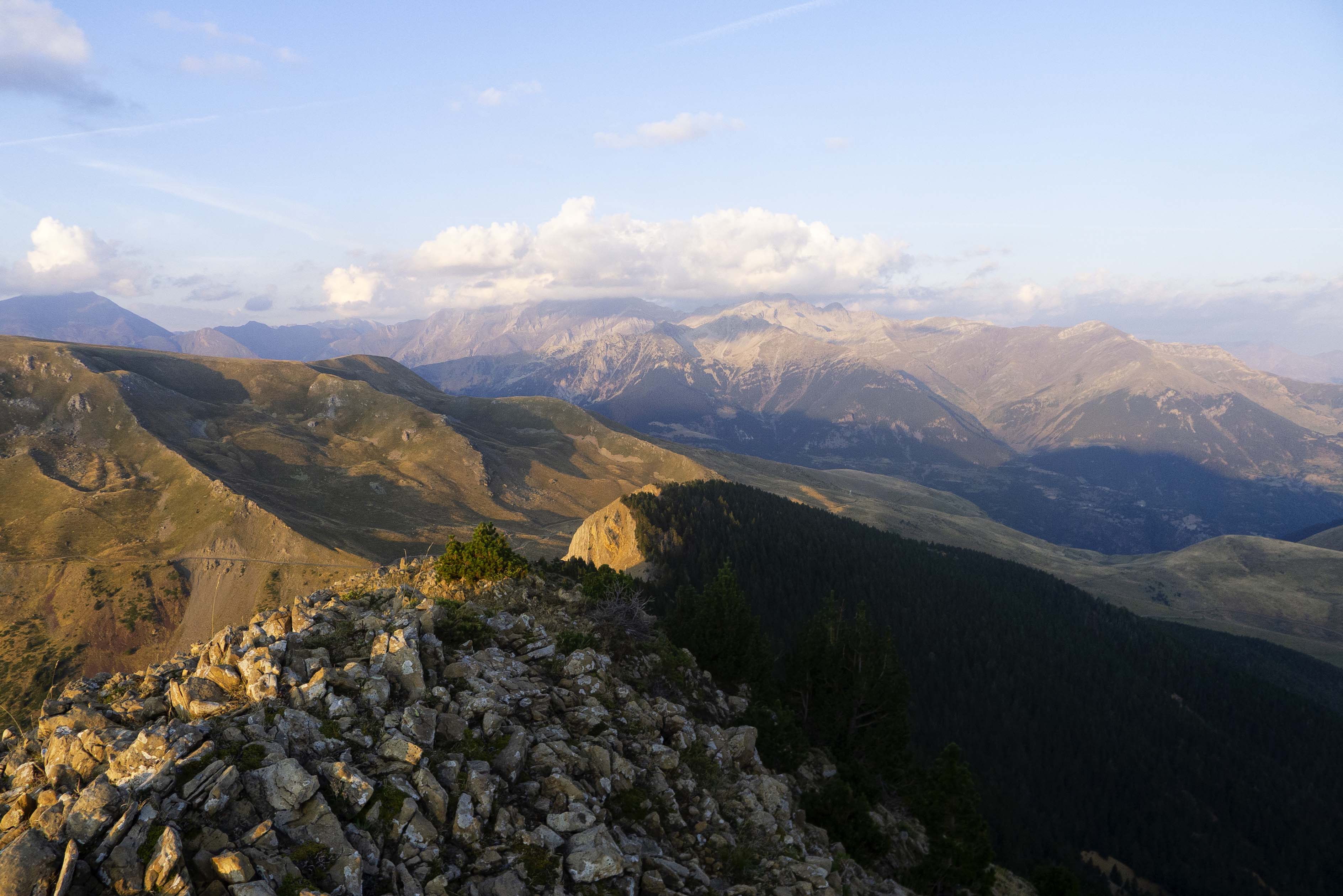 No estamos solos en la cresta, puesto que estas parece que se van a quedar a dormir aquí arriba. Detrás, la otra cumbre de la cresta, el Pico de l'Orbar.
