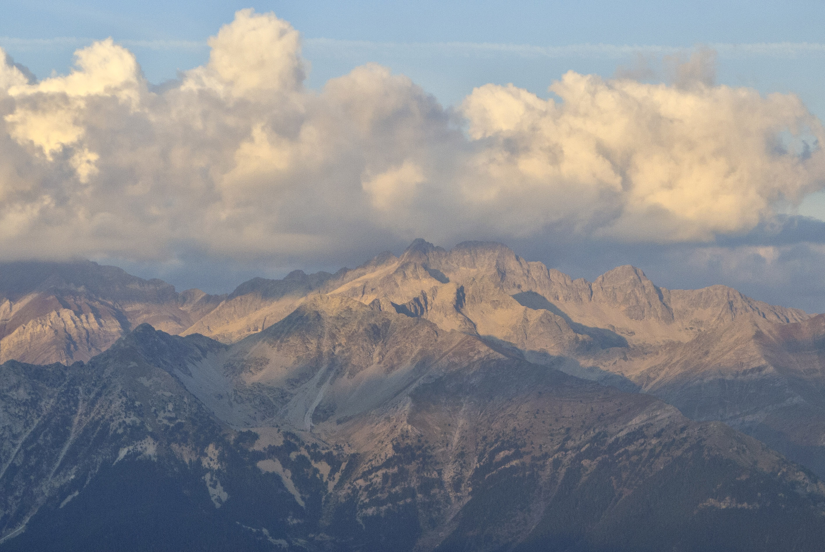 El macizo del Cotiella, que bajo esta luz y las caprichosas sombras de sus cumbres parece casi irreal.