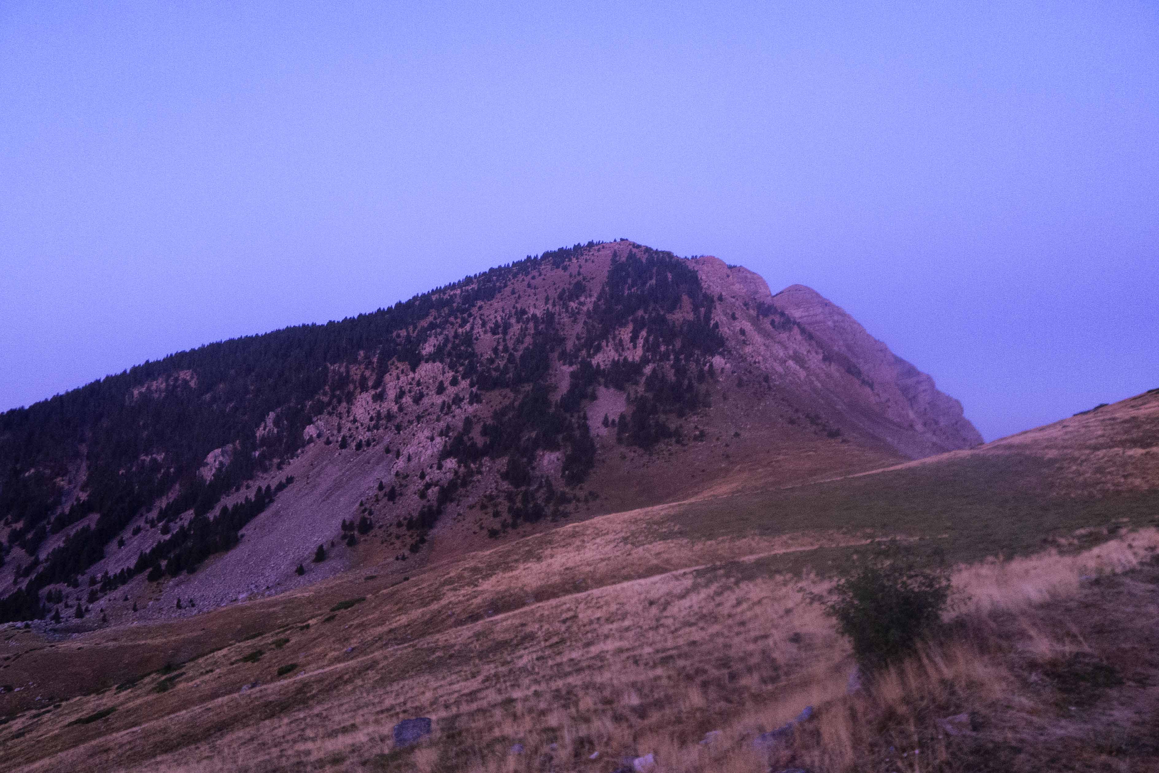 Y tras hacer la diagonal, llegamos al collado de la Cruz de Guardia mientras la Punta Maristás va tornándose rosada. Ahora a dormir pues mañana toca la Punta Suelza.