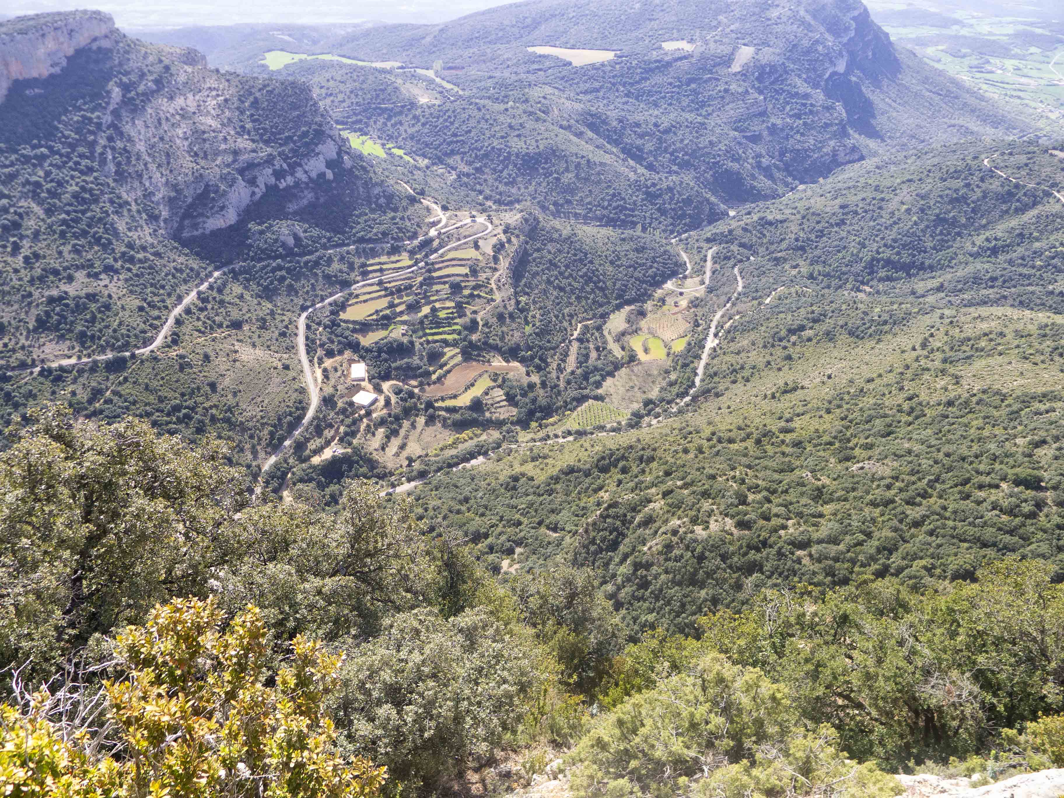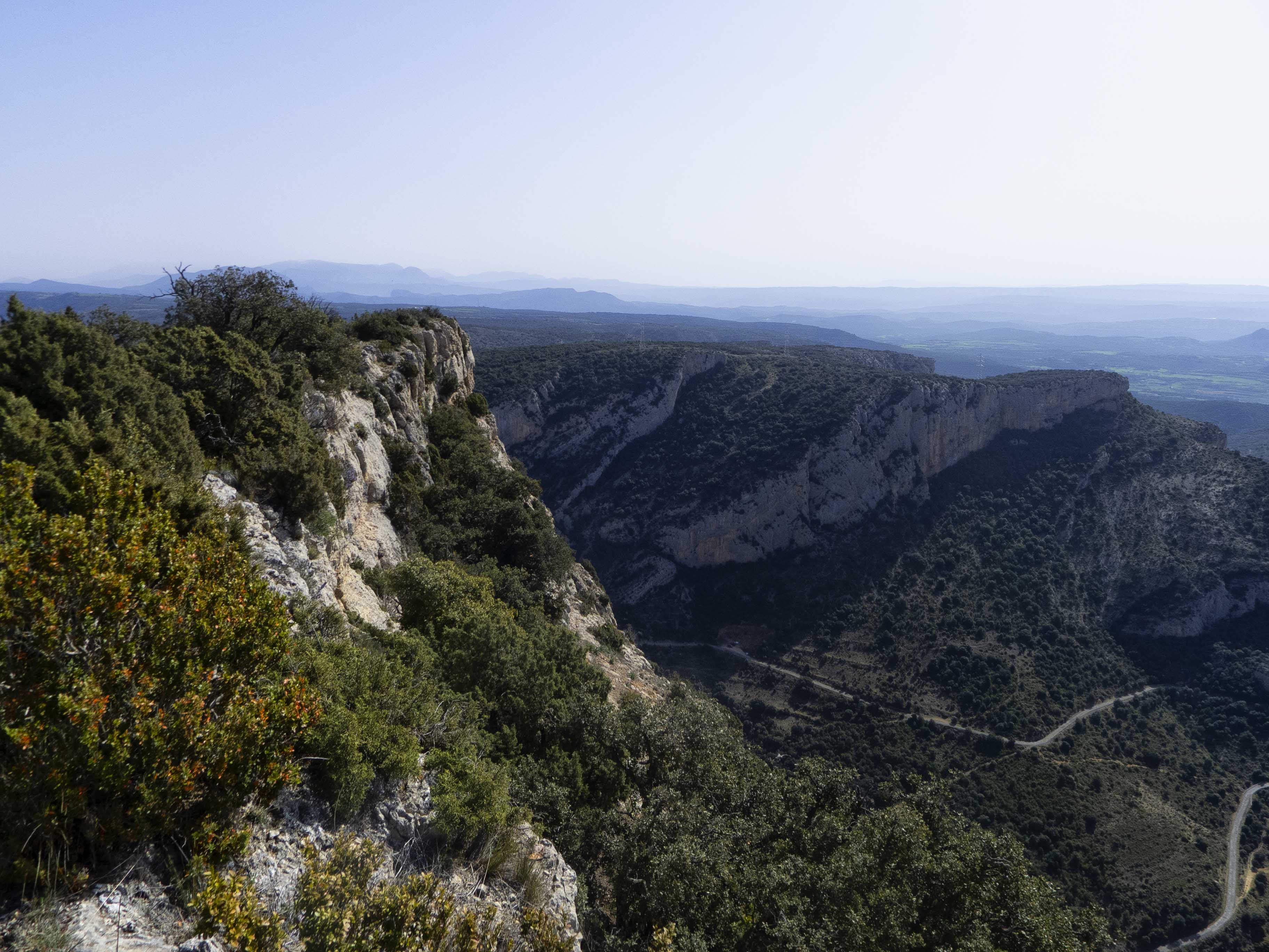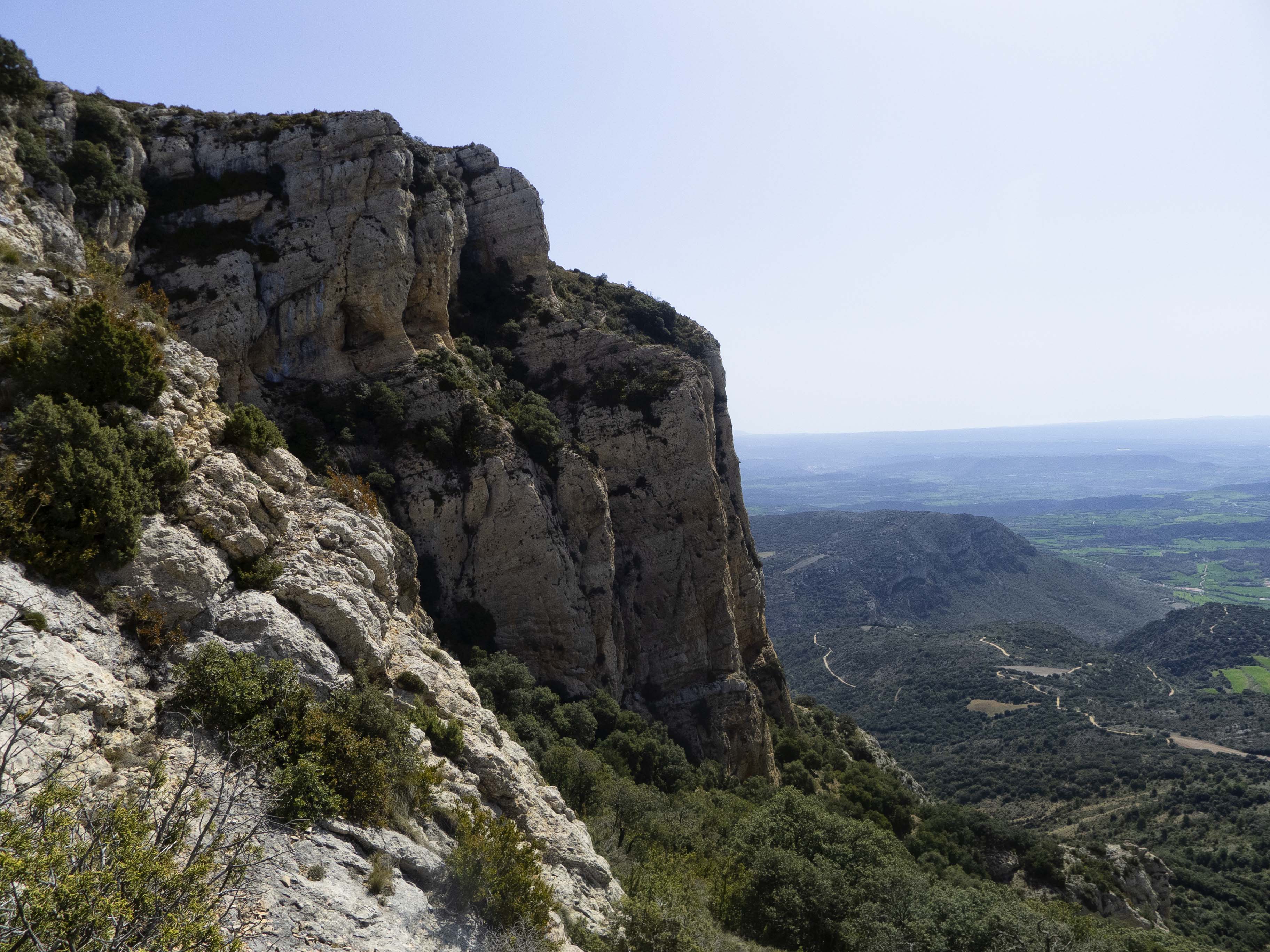 Vale la pena girarse para ver el vacío que se desploma desde la Roca dels Arcs hacia el sur y que desde su cima no se llega a apreciar.