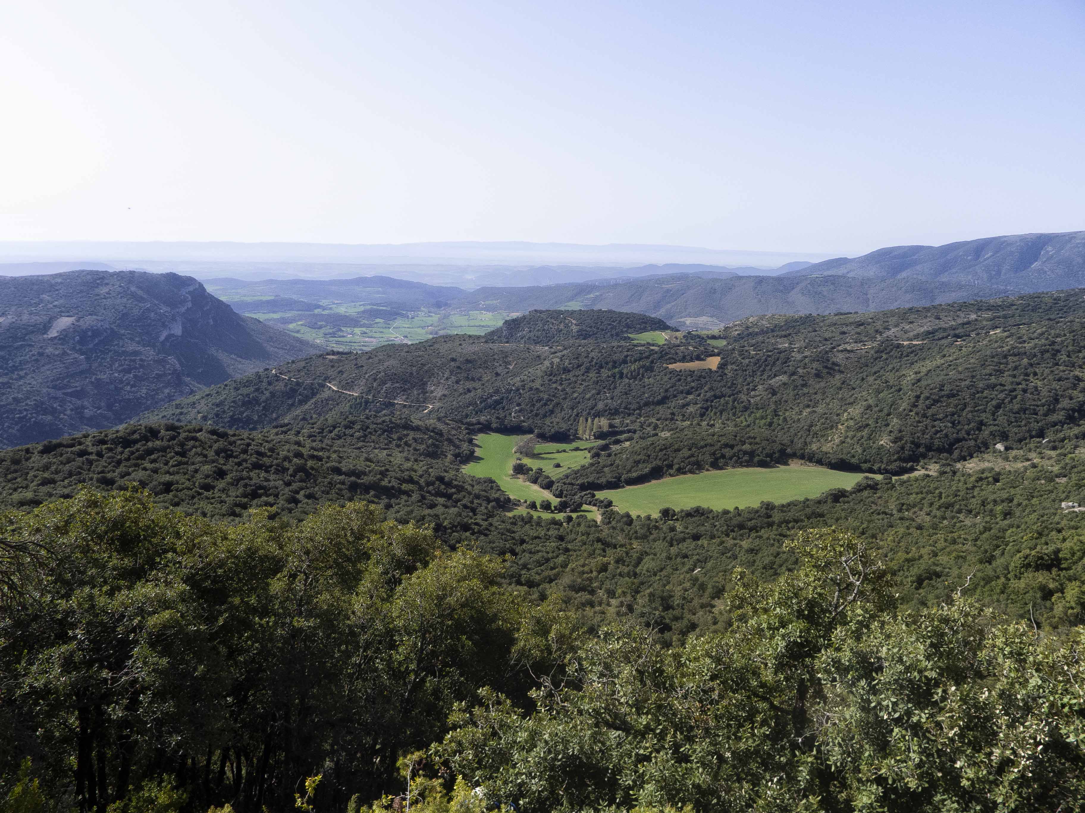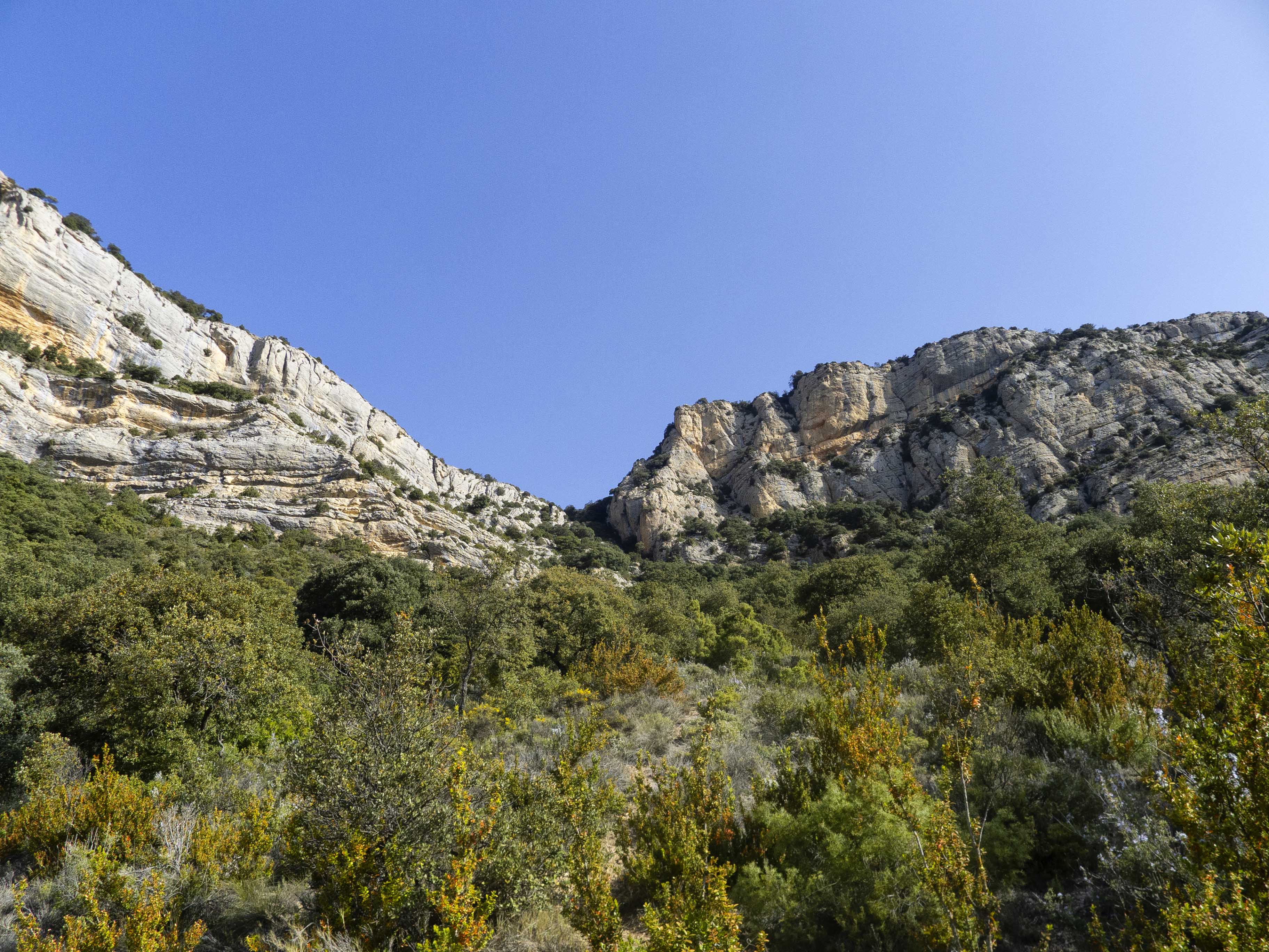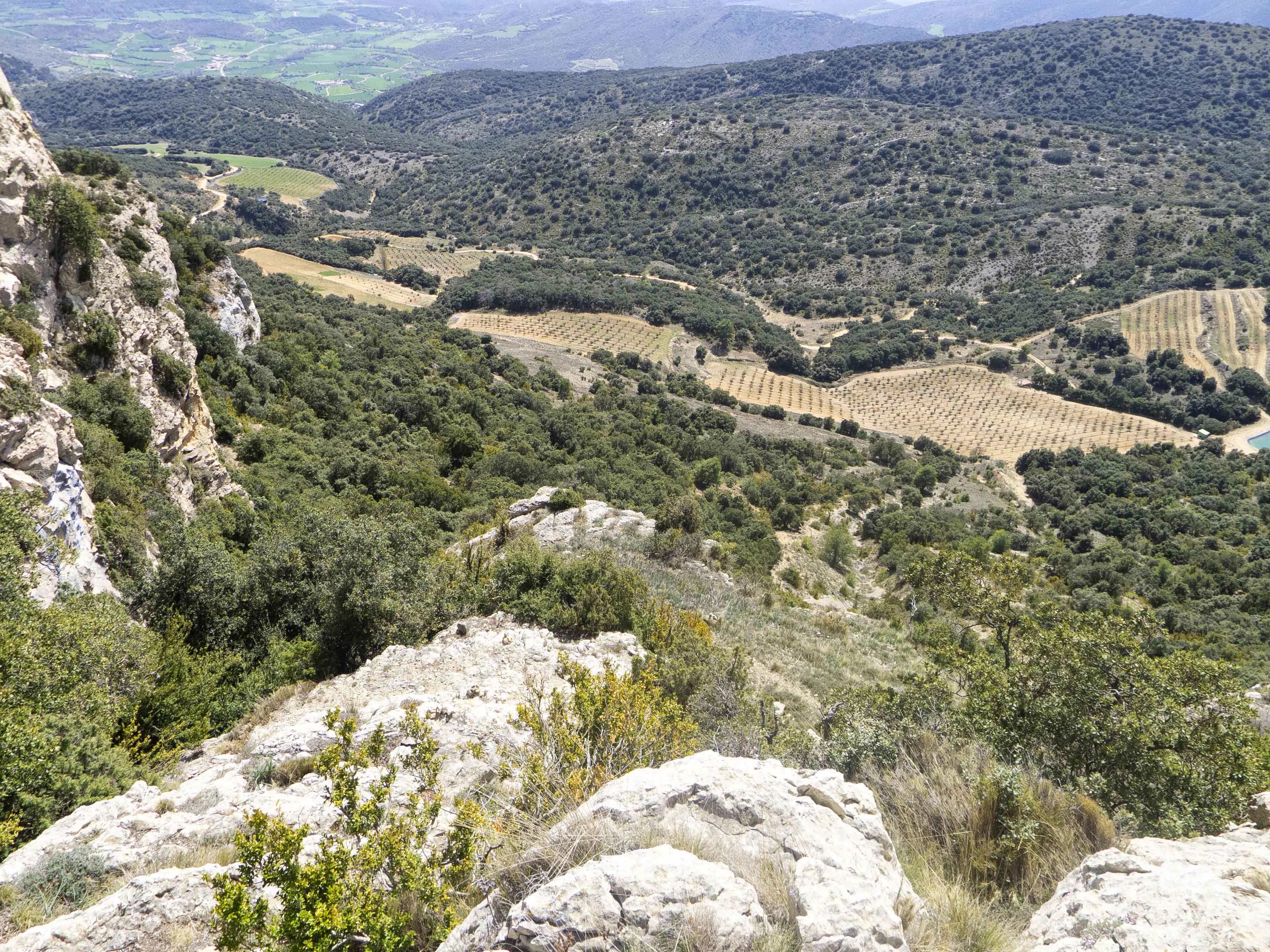 Vale la pena girarse para ver el vacío que se desploma desde la Roca dels Arcs hacia el sur y que desde su cima no se llega a apreciar.