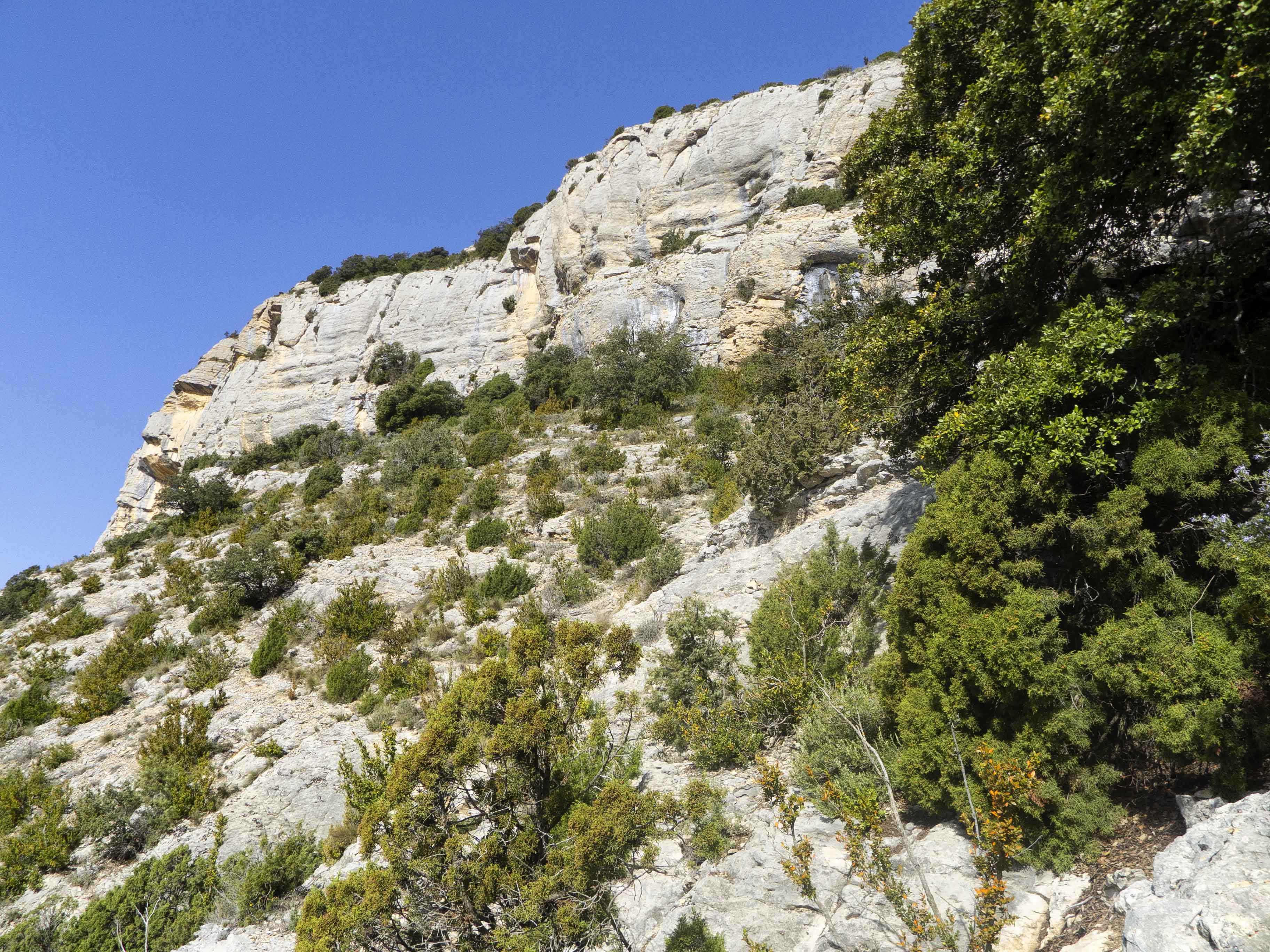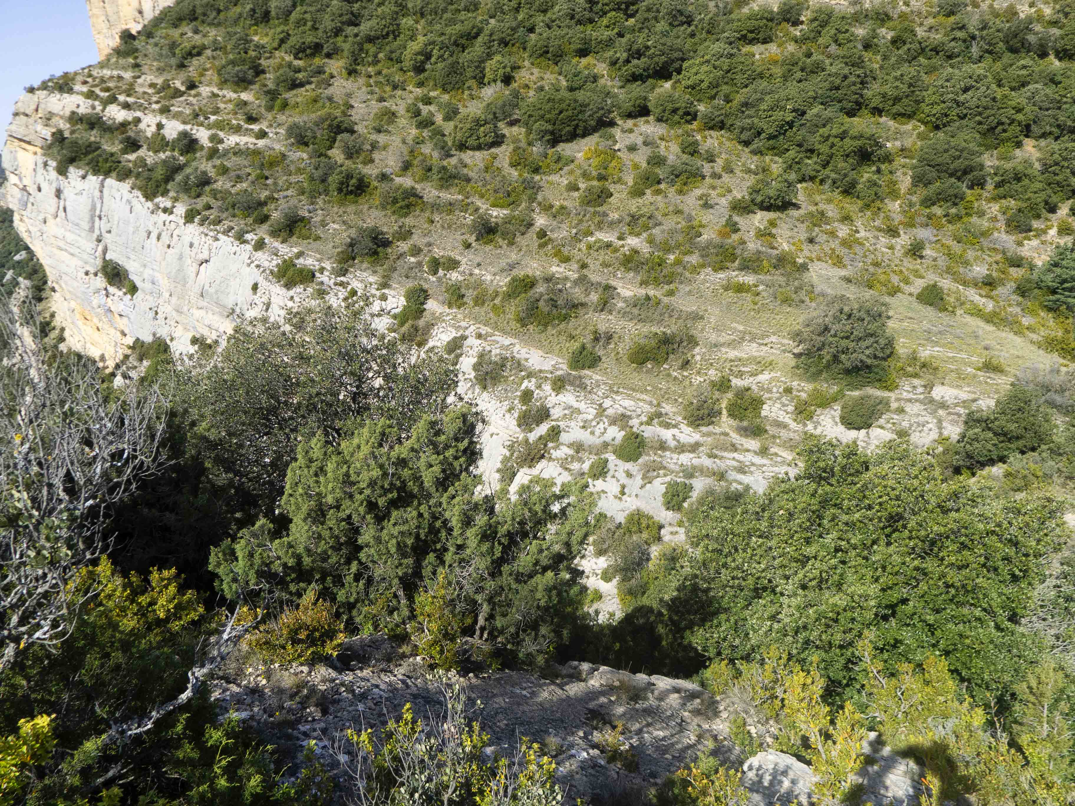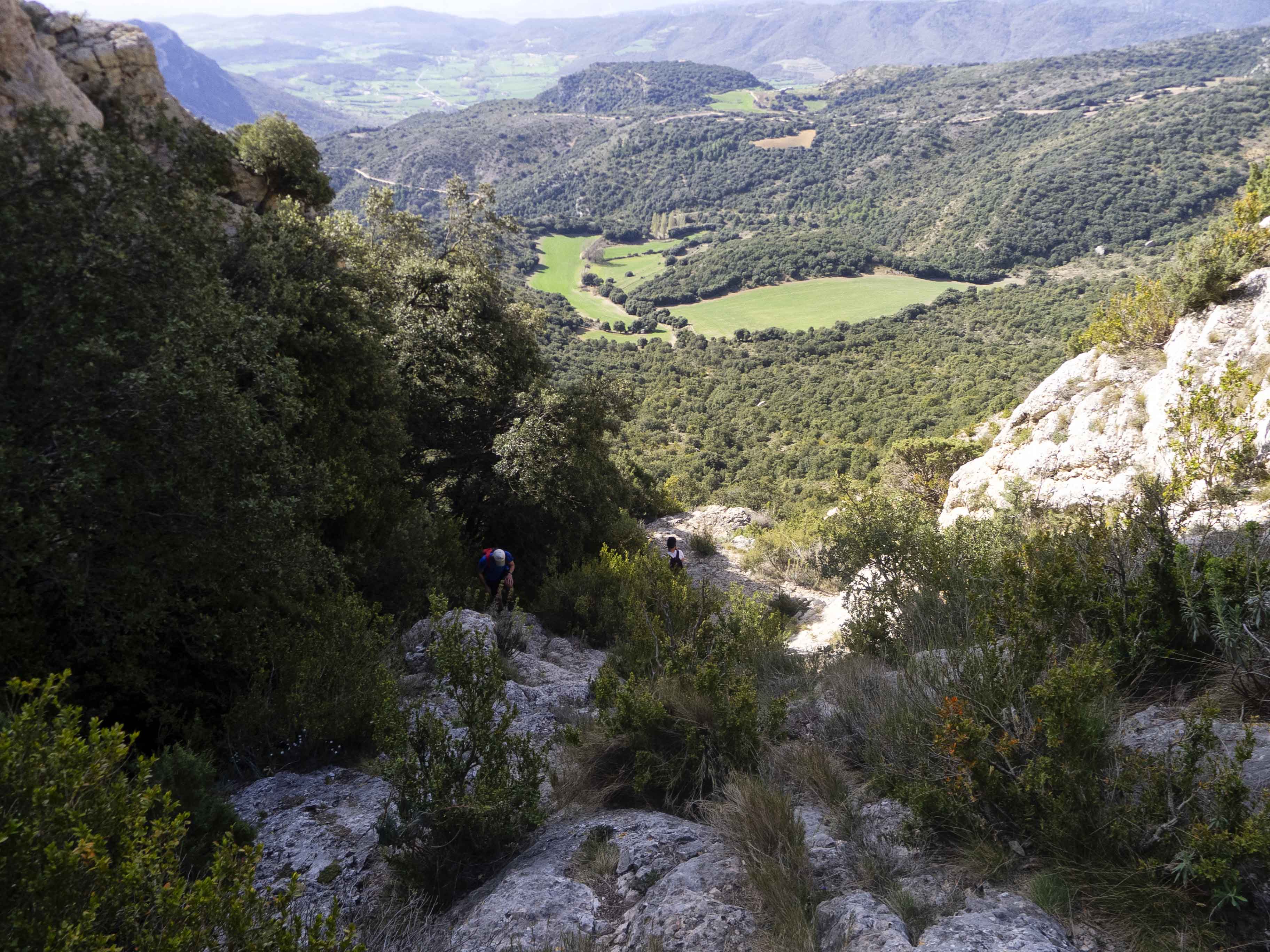 Para descender del muro que cubre casi la totalidad del Montsec, aprovechamos este espolón algo menos vertical que el resto de la muralla.