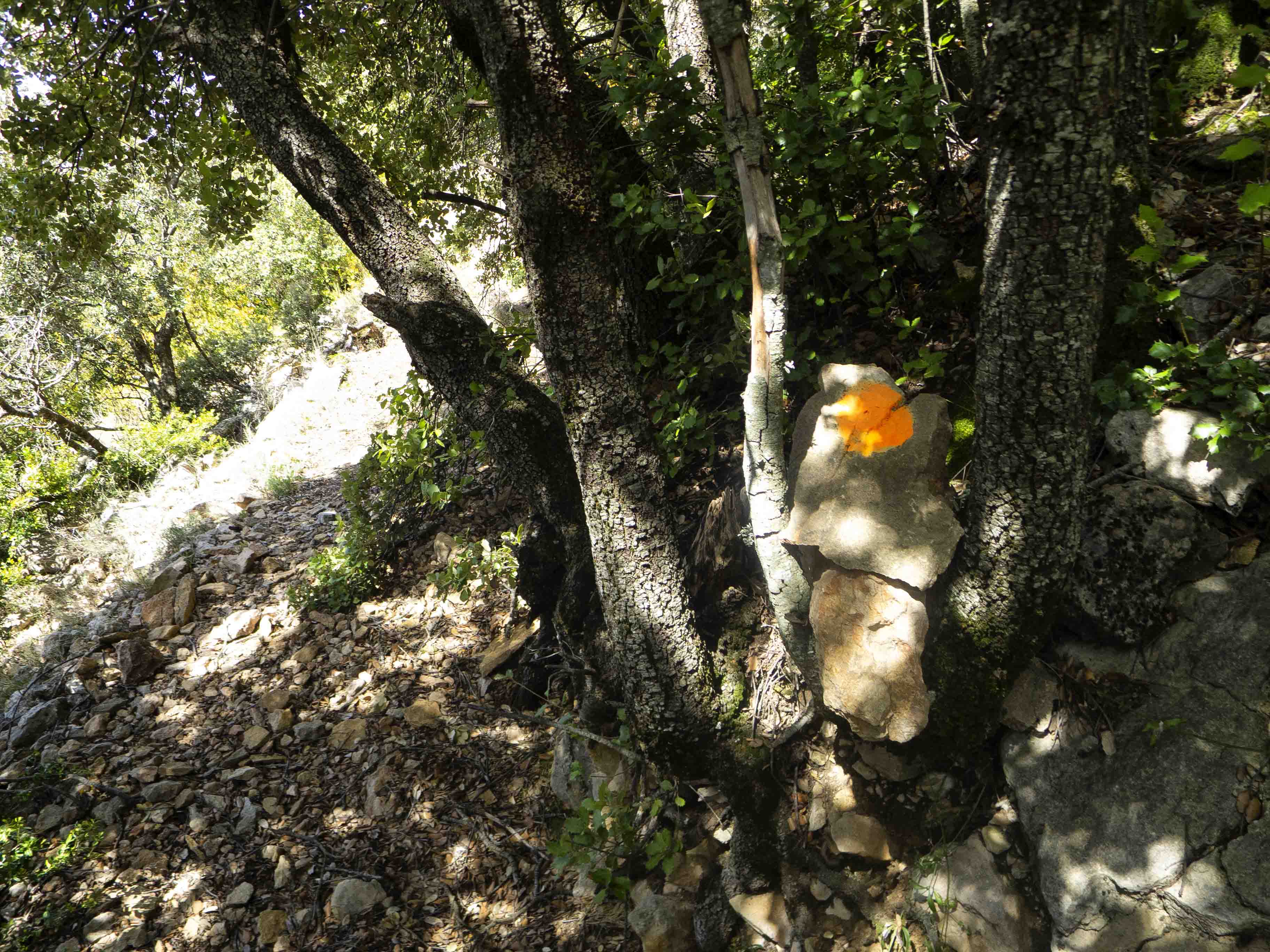 Las marcas naranjas que nos encontramos en la subida a la Roca Alta reaparecen aquí, con menos frecuencia.