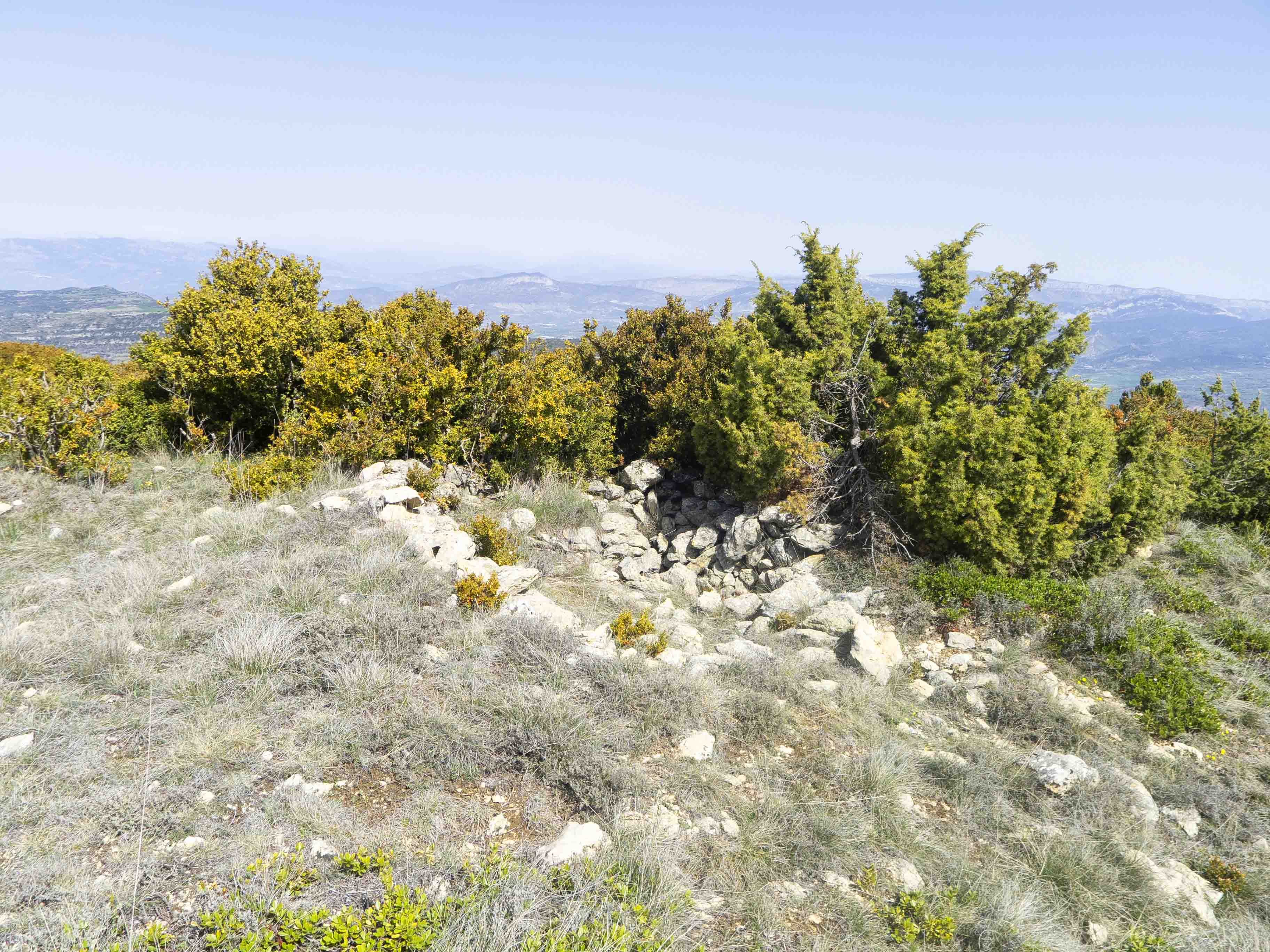 A media subida encontraremos una reliquia histórica, pues hay un depósito de agua construido por los republicanos para abastecer de líquido a los combatientes de lo alto de la sierra, pues el Montsec, como el mismo nombre indica, es muy árido.