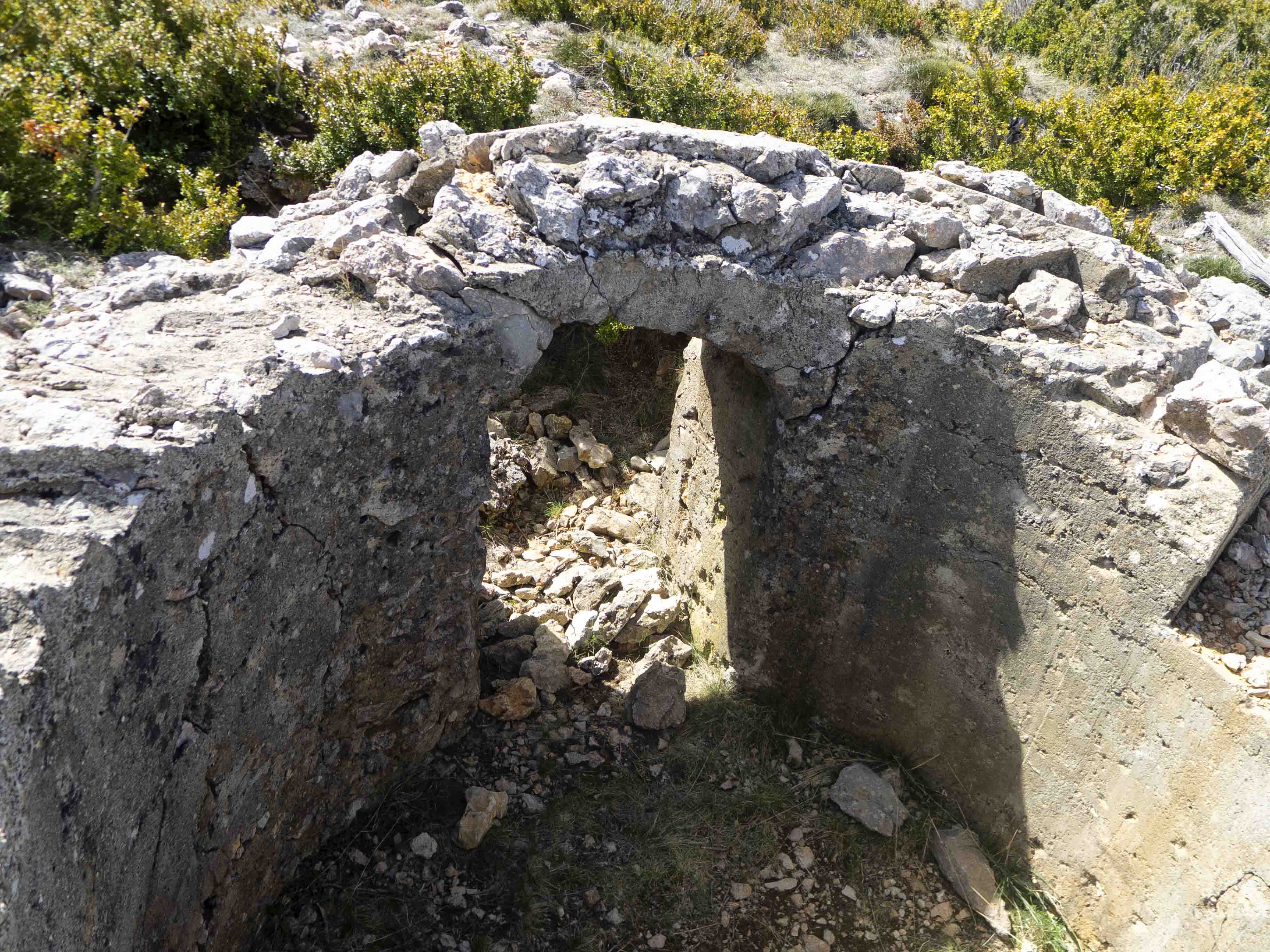 Tras seguirla un rato, nos dirigimos al sur donde, ya cerca de la cumbre, nos encontramos con un búnker en bastante buen estado pero sin techo.