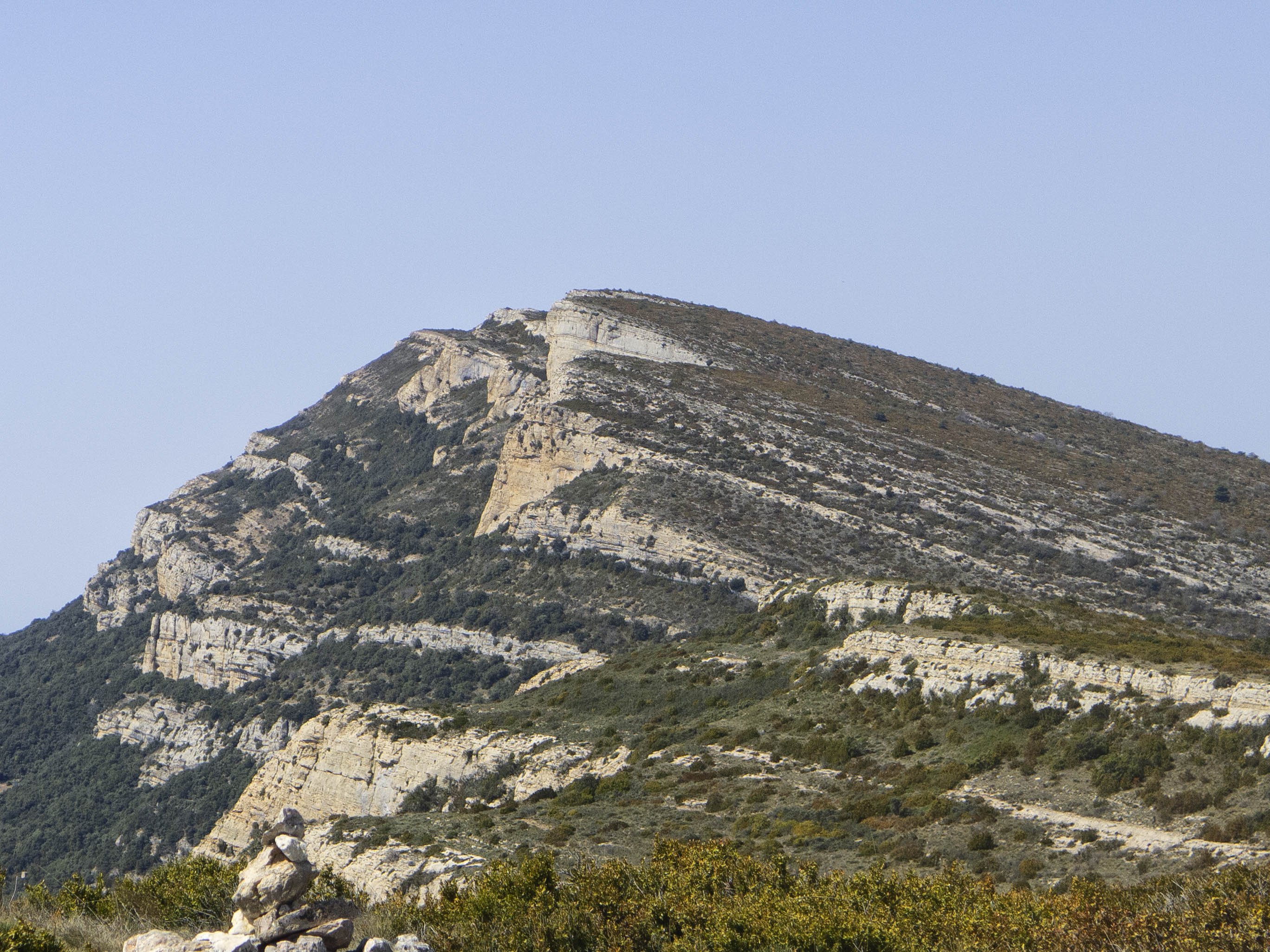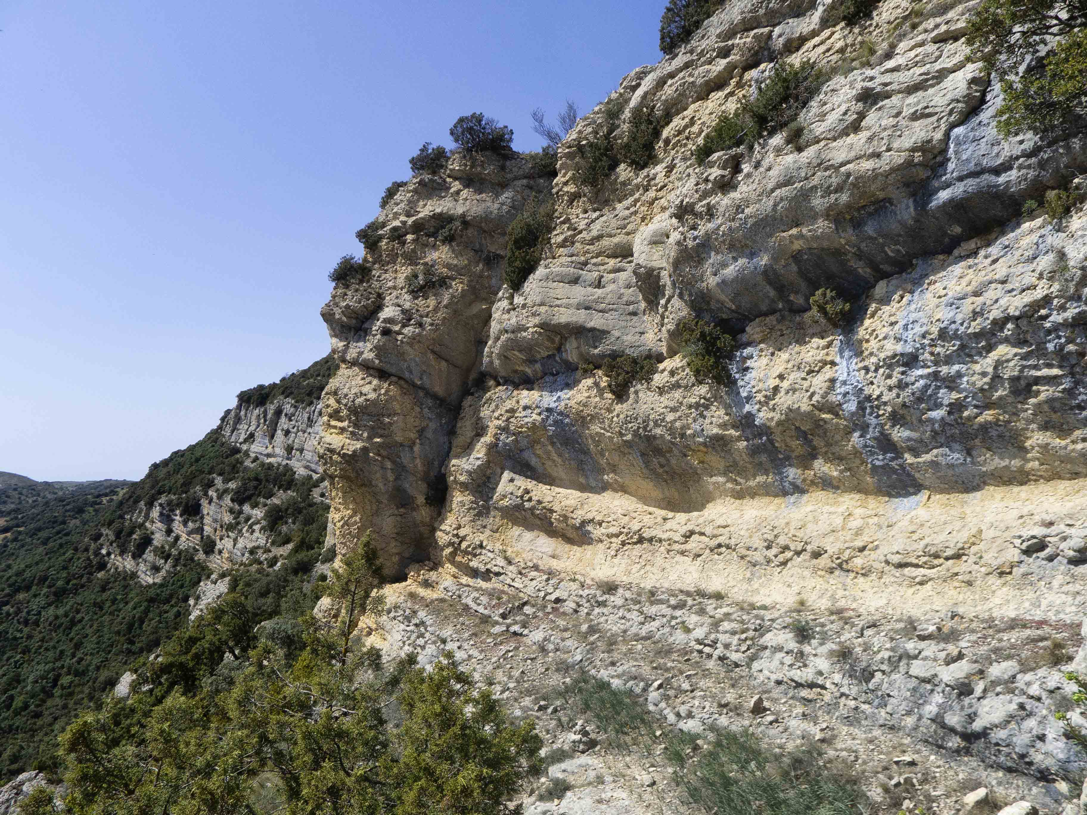 Subiendo, podemos apreciar las curiosas fajas rocosas tan clásicas del Montsec, encabalgadas una encima de otra.