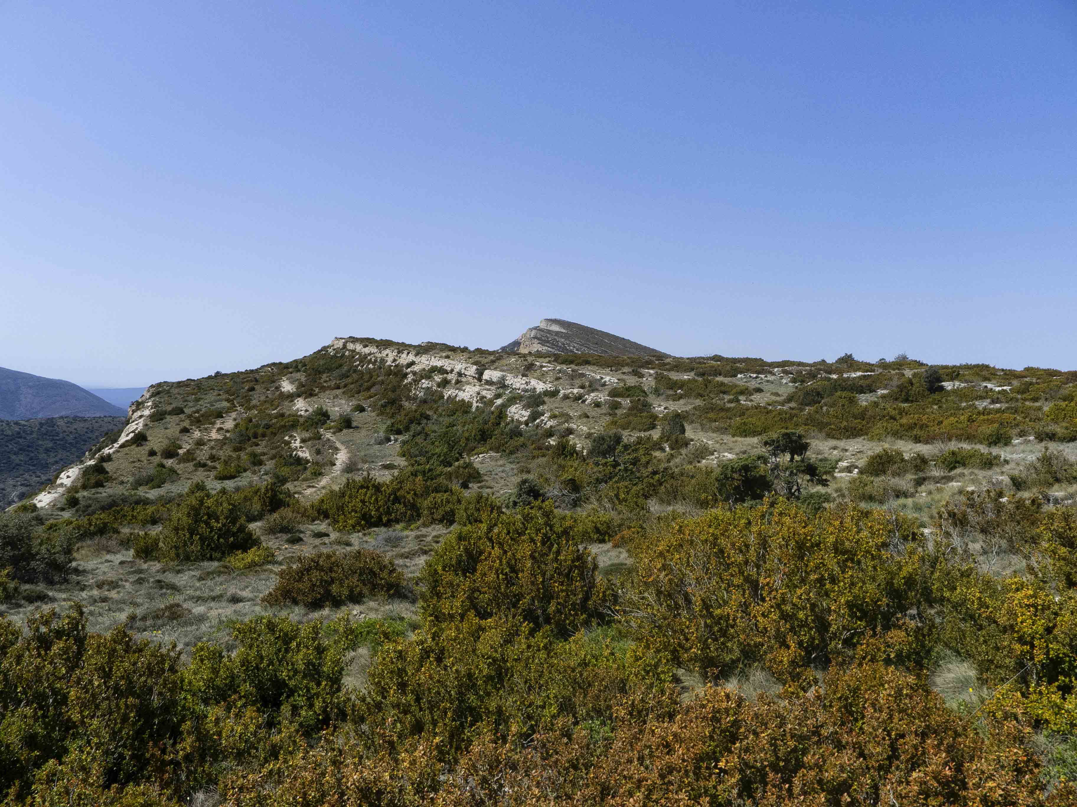 Tras investigar un poco los alrededores de la fortificación, andando hacia el sur nos dirigimos ya a la excelente atalaya que es la cumbre de la Roca Alta, marcada con un hito.