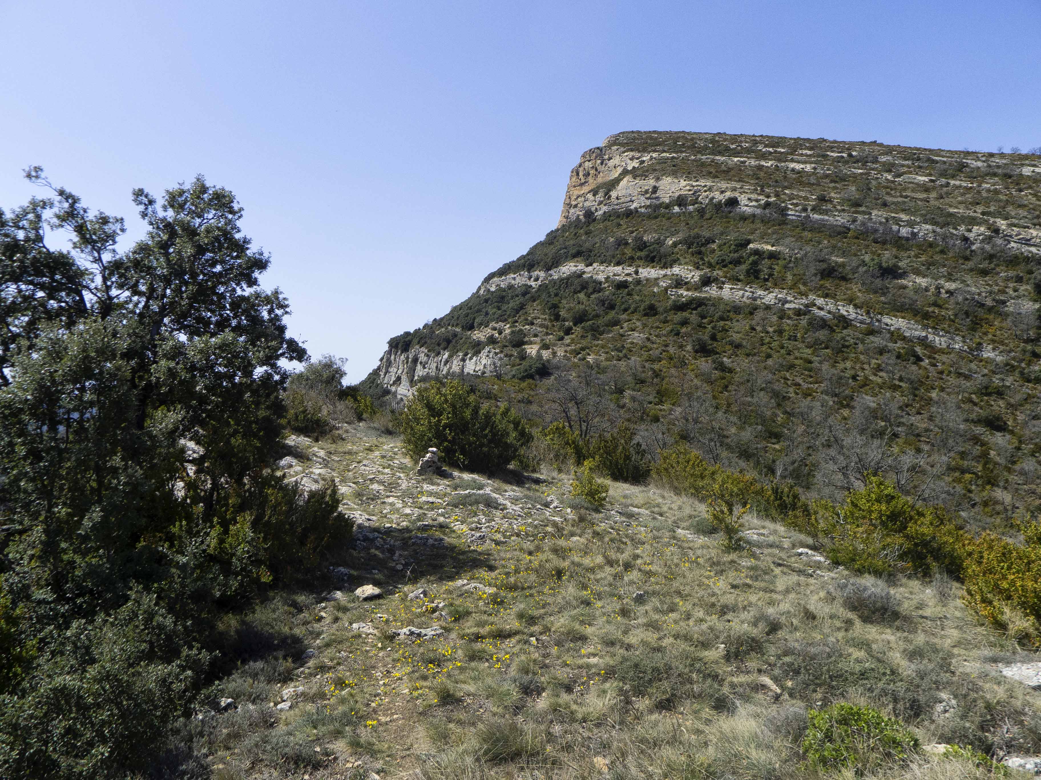 El trazo sigue paralelo a la trinchera, que recorre casi la totalidad del Montsec de Rúbies.