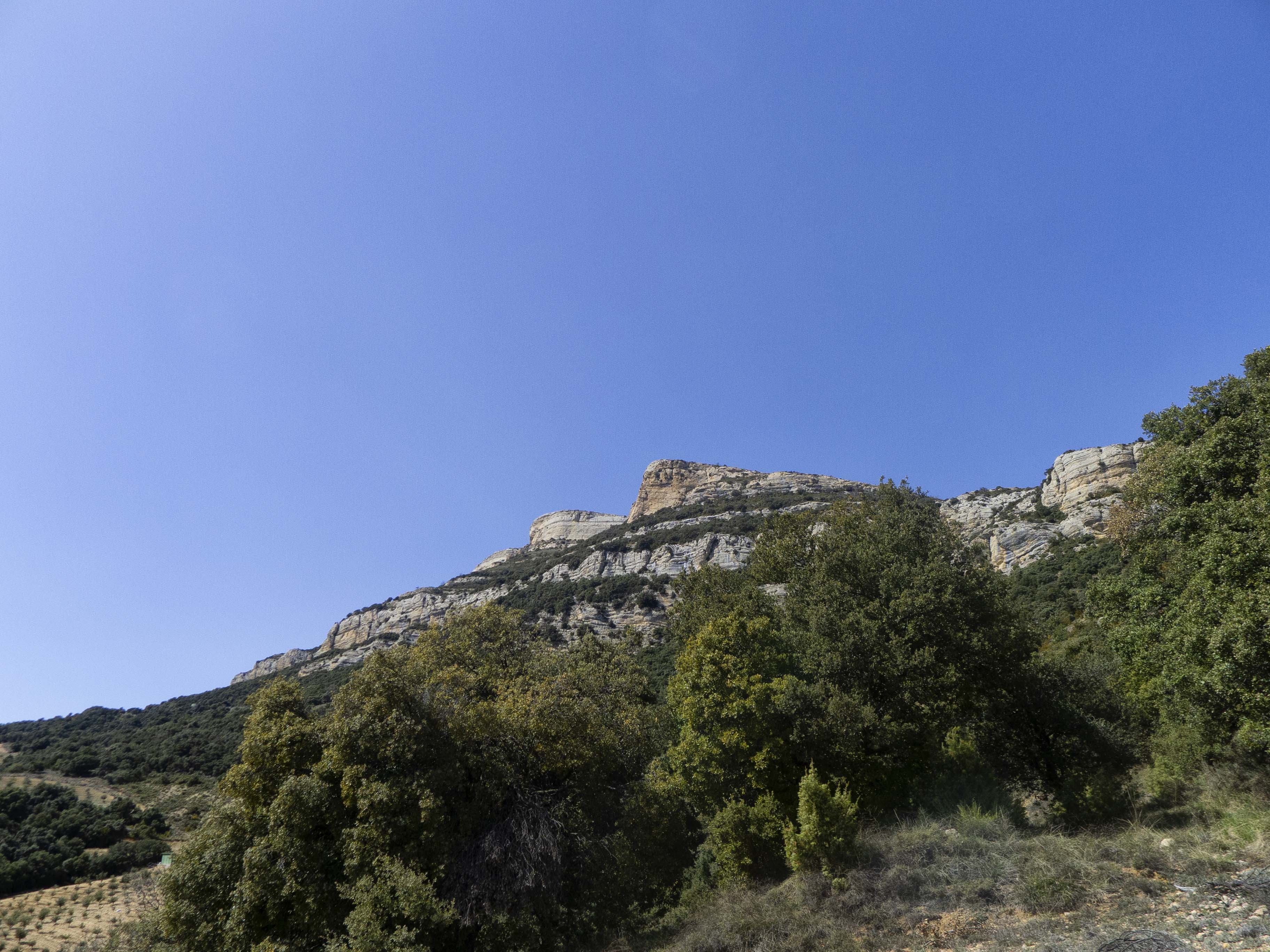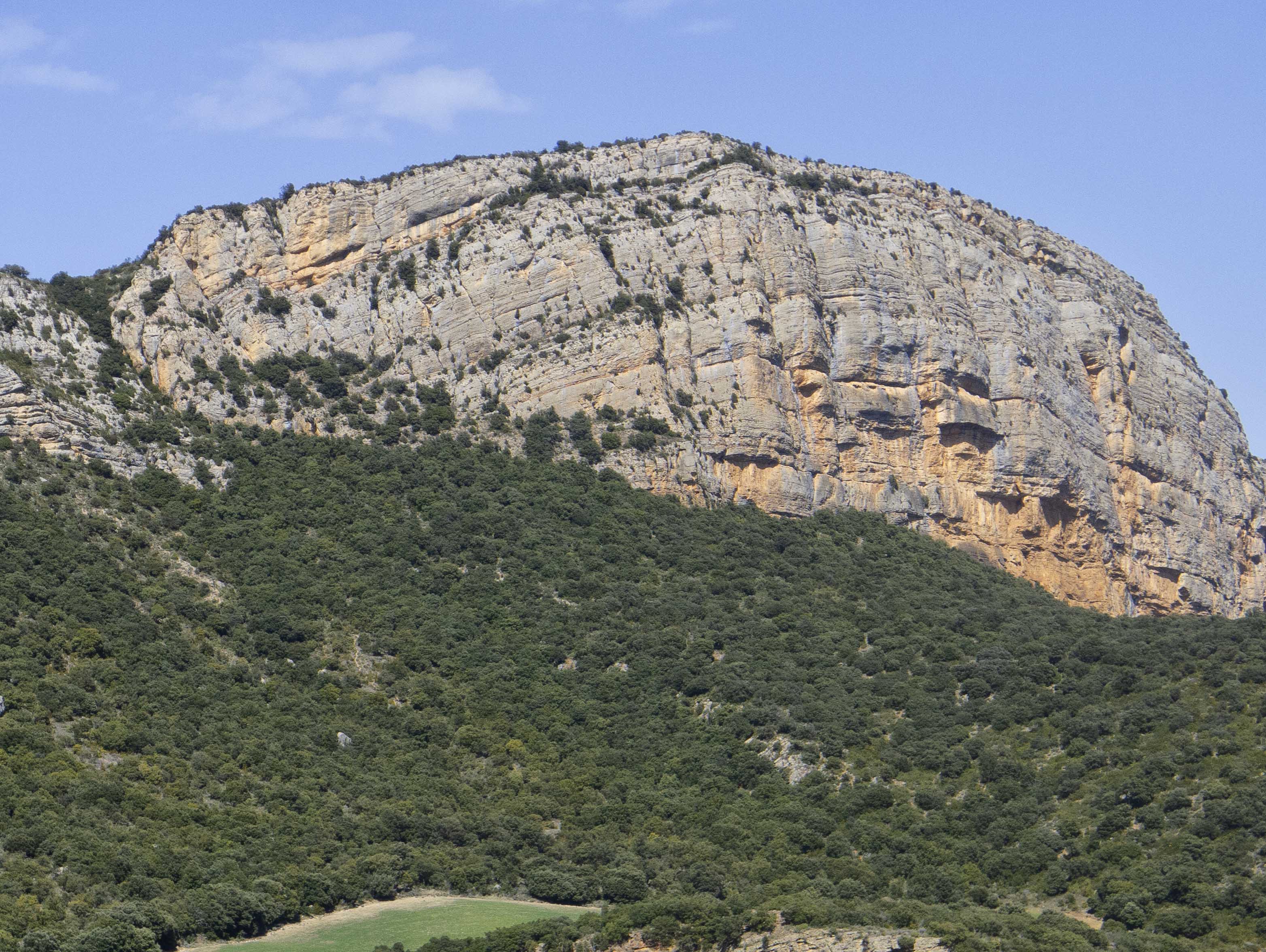Sin embargo, esta pared es solo una de las partes de lo que podríamos considerar el sector oriental del Montsec de Rúbies, separado del resto del macizo por el Pas de les Eugues. La máxima cota de esta zona es la imponente Roca Alta, que junto con sus poderosos dientes meridionales forma uno de los horizontes más conocidos de La Noguera, vista desde el bonito pueblo de Vilanova de Meià. Su cumbre y, de hecho, toda la parte alta del Montsec, está horadada por una línea de trincheras y búnkeres, herencia de las terribles batallas que hubo en la Guerra Civil entre los fascistas que estaban en el Hostal Roig, ya en el Pallars, y los republicanos que estaban en las cumbres del Montsec, siendo hoy bien visibles las heridas de la guerra en la tierra. Para acceder a las cumbres del Montsec desde el sur, siempre bien protegidas por grandes paredes, existen distintos graus o pasos que permiten acceder, a veces de forma penosa, a lo más alto del Montsec.