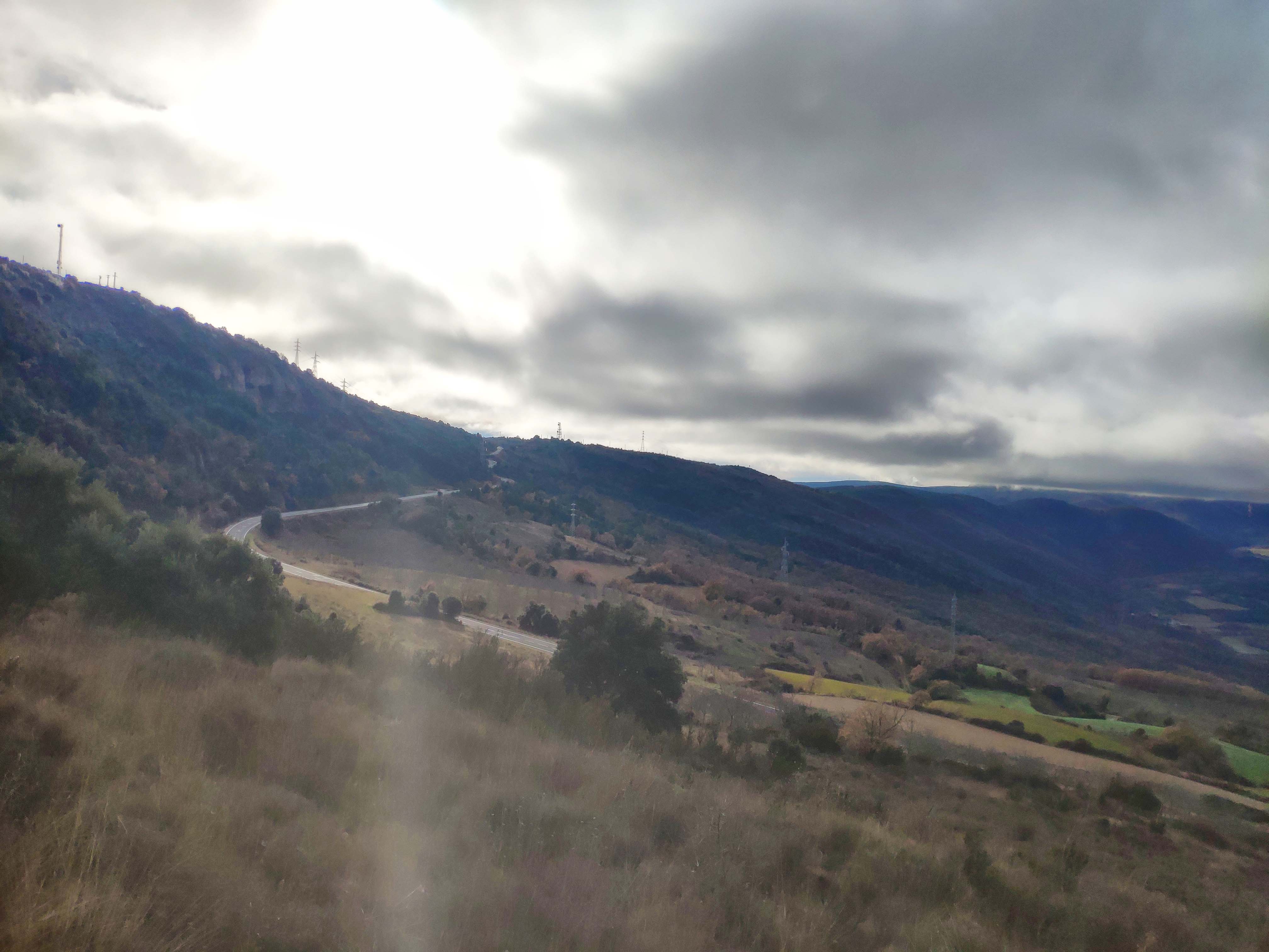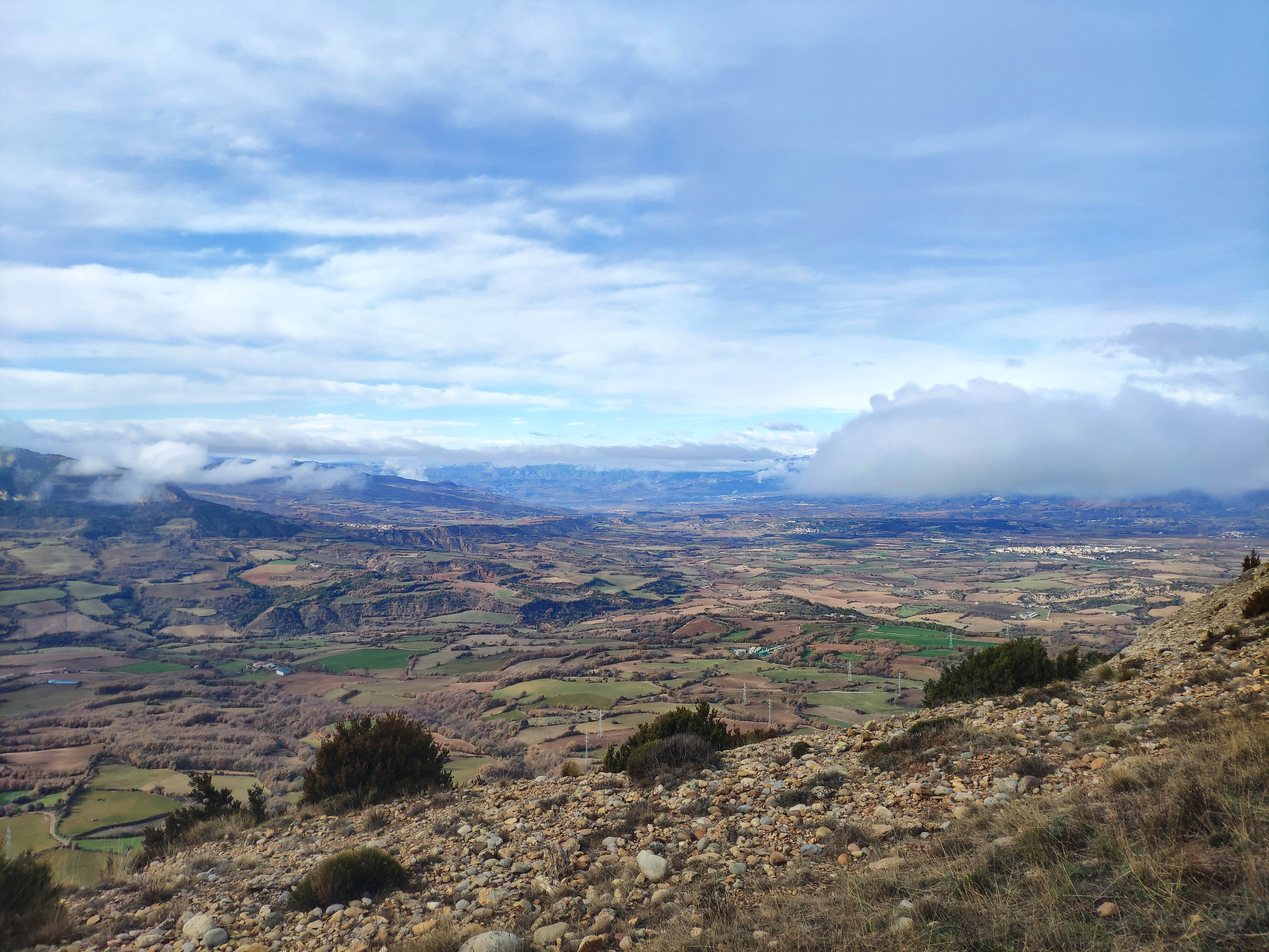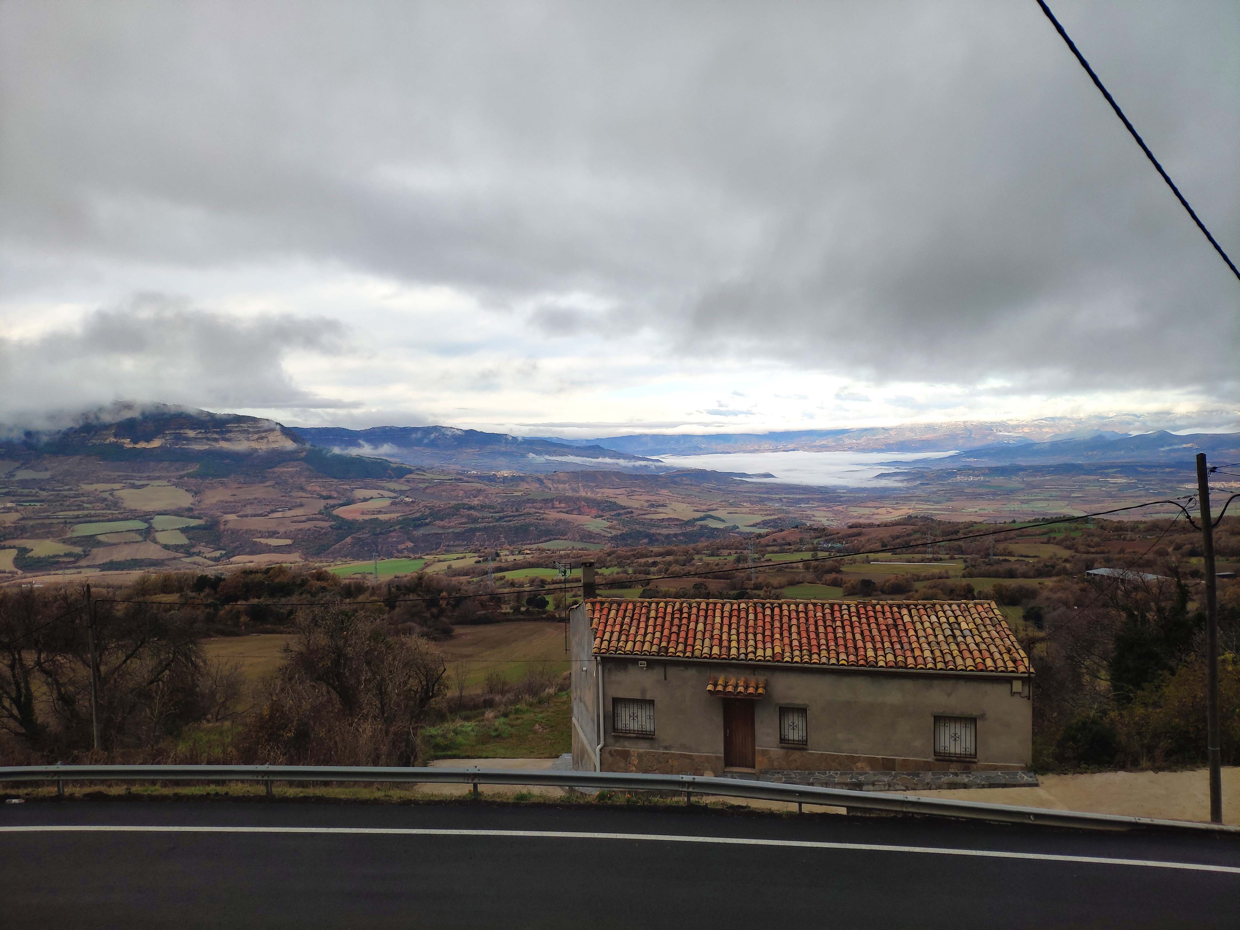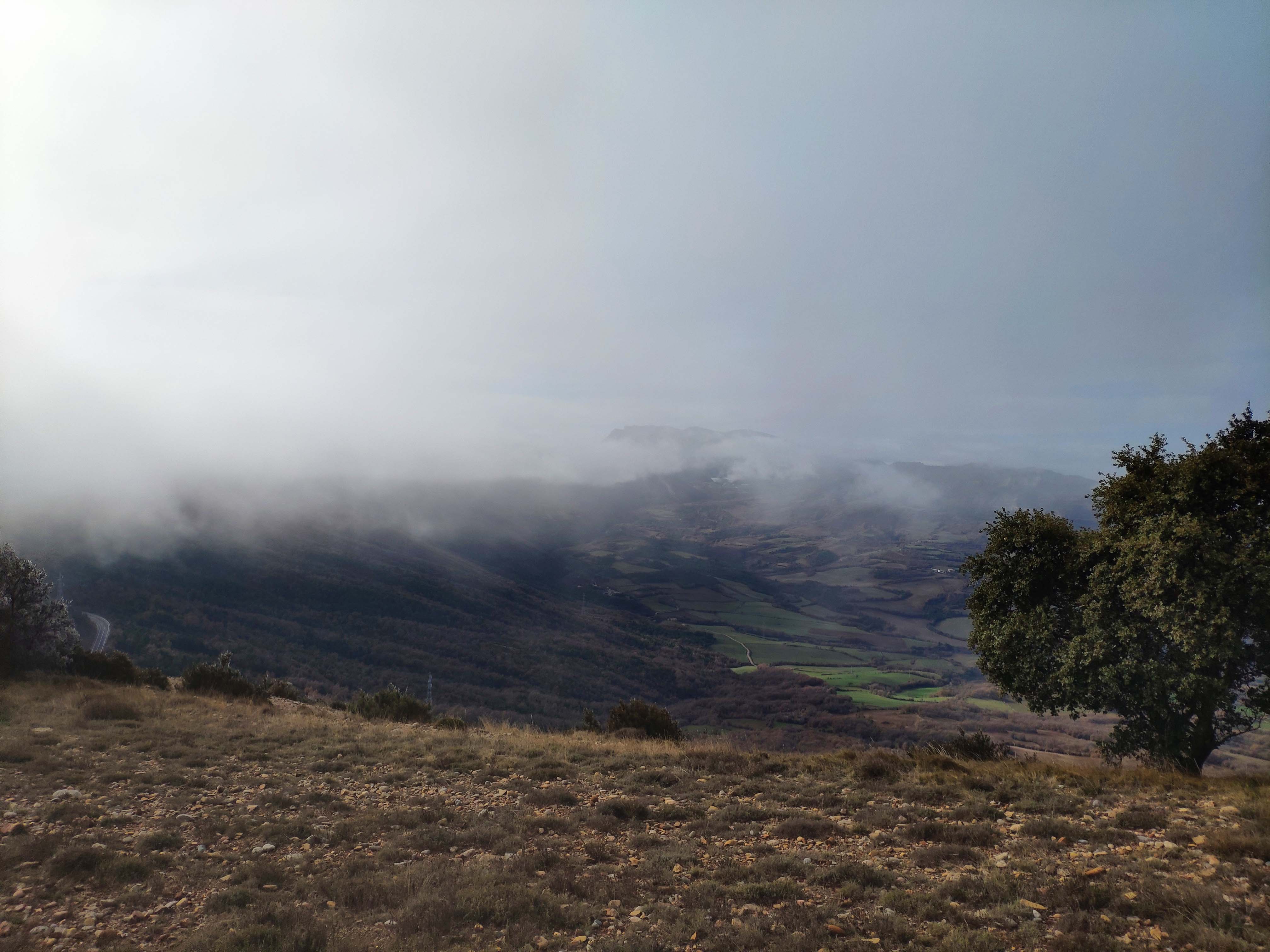 El día es muy gris y frío. La Conca Dellà está bastante descubierta pero al fondo, en la Conca de Tremp, la niebla lo cubre todo.
