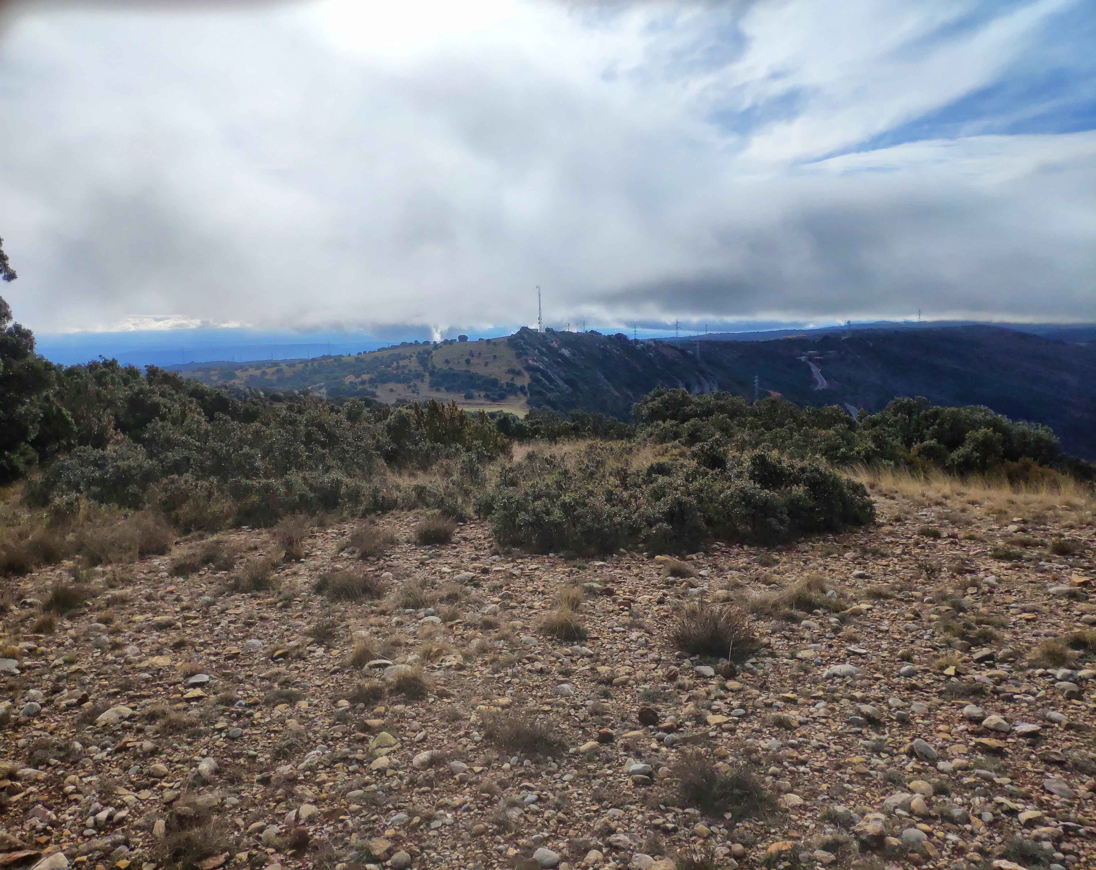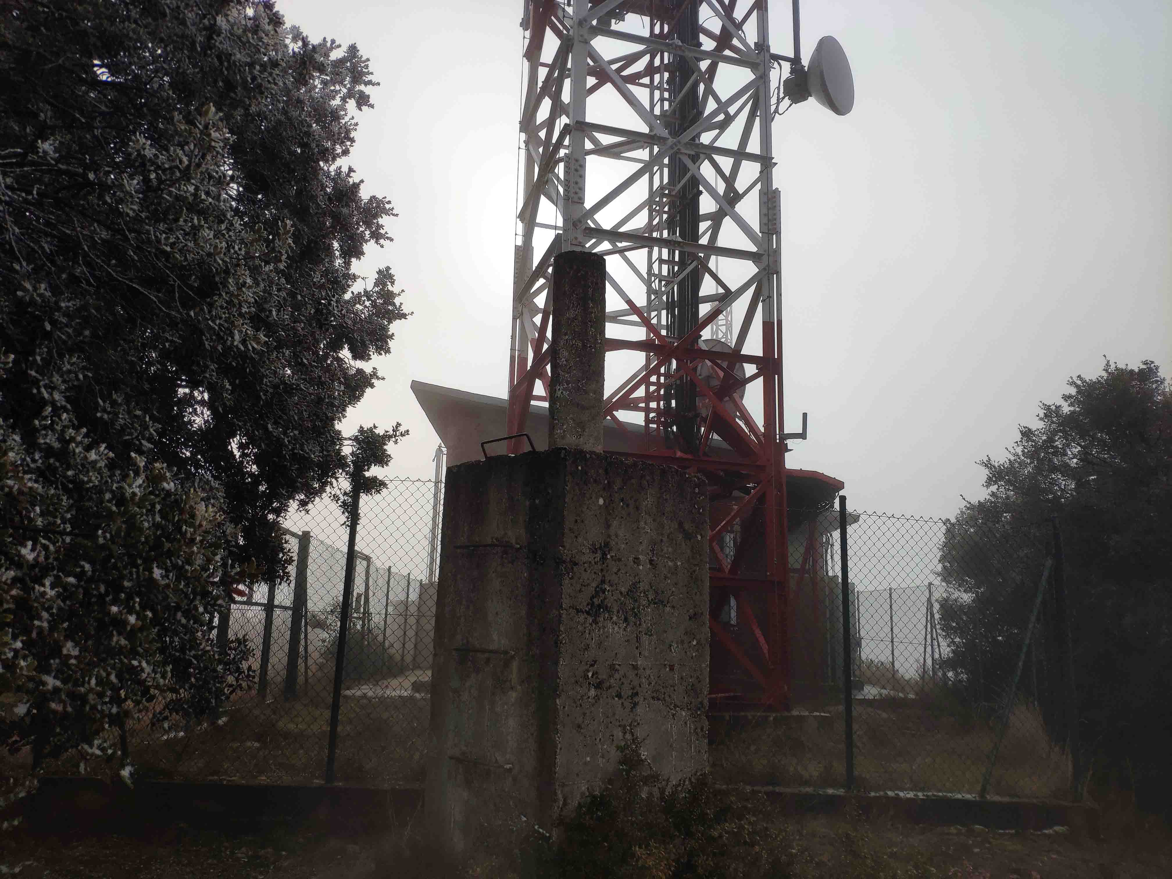 Tras una corta subida, llegamos a la emboscada y civilizada cumbre de la Roca Roja de Benavent, donde hay un vértice geodésico y una gran antena.