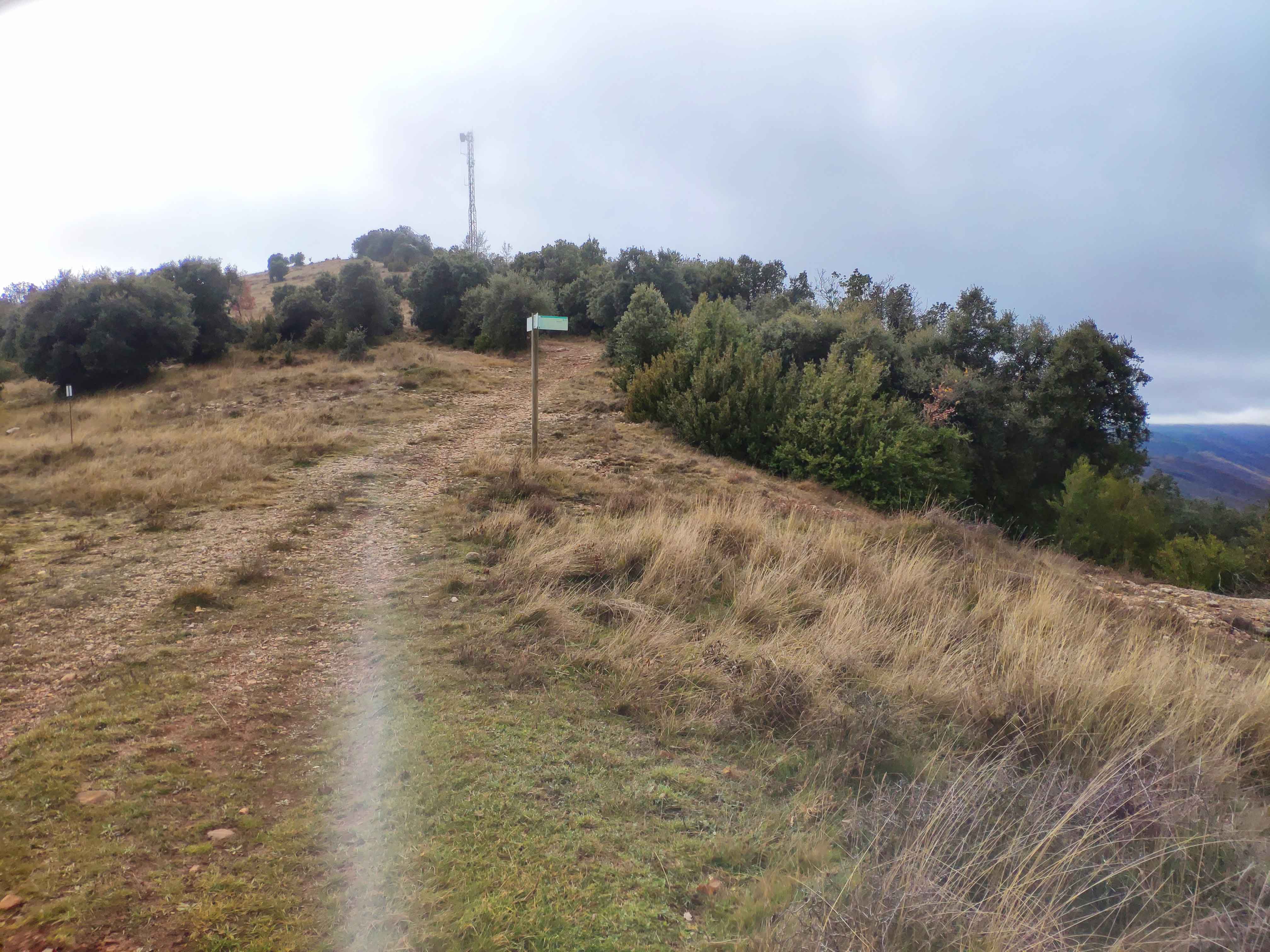El Sant Miquel, también cubierto por antenas. Debemos llegar al collado previo de esta cumbre, donde encontraremos el cartel que señala el inicio al Grau Curt.