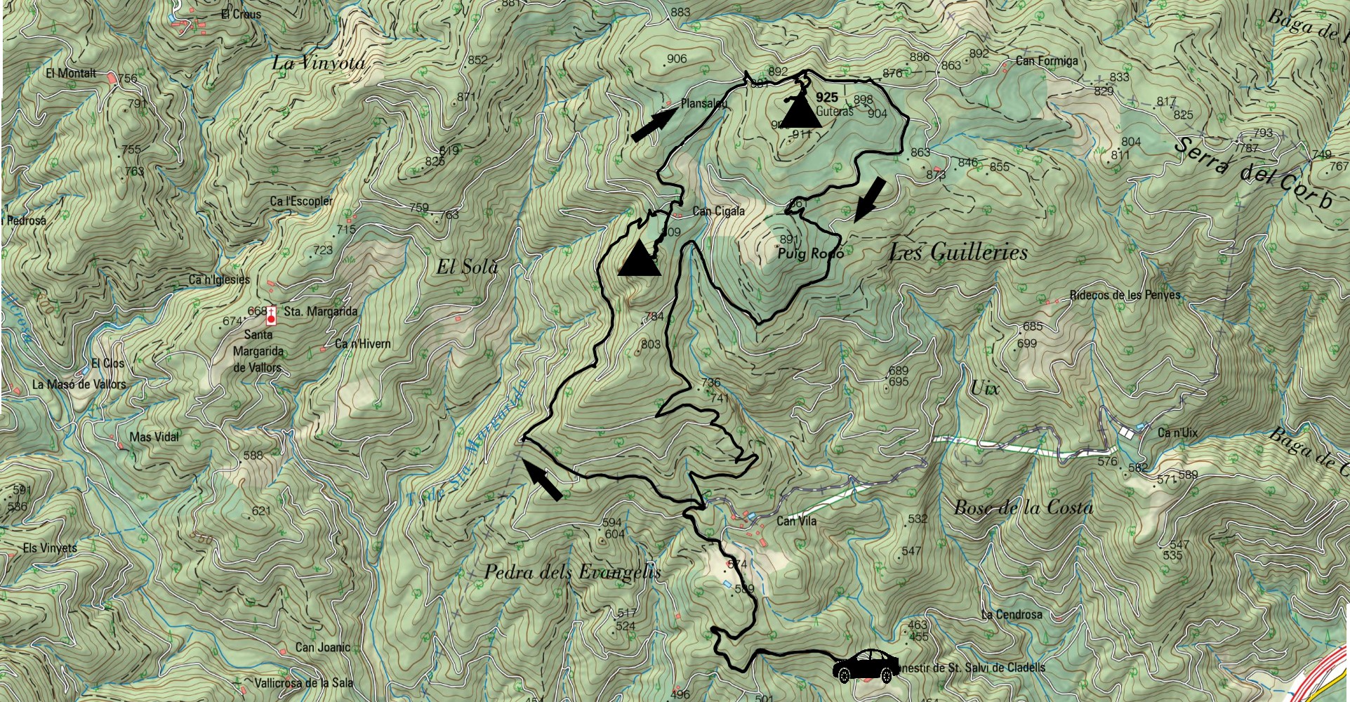 Roques del Rei (852 m) y Goteres (919 m) desde Sant Salvi de Cladells