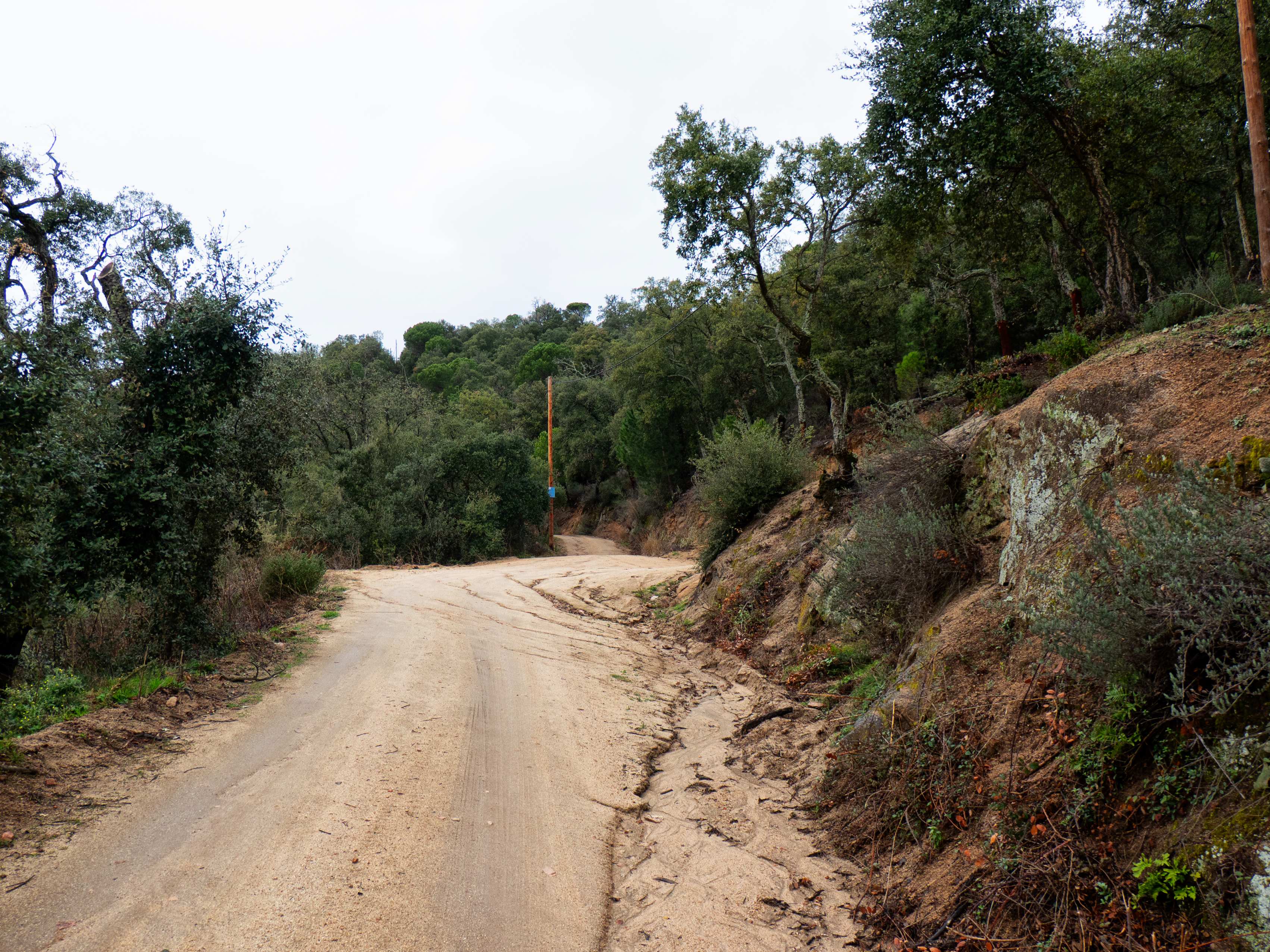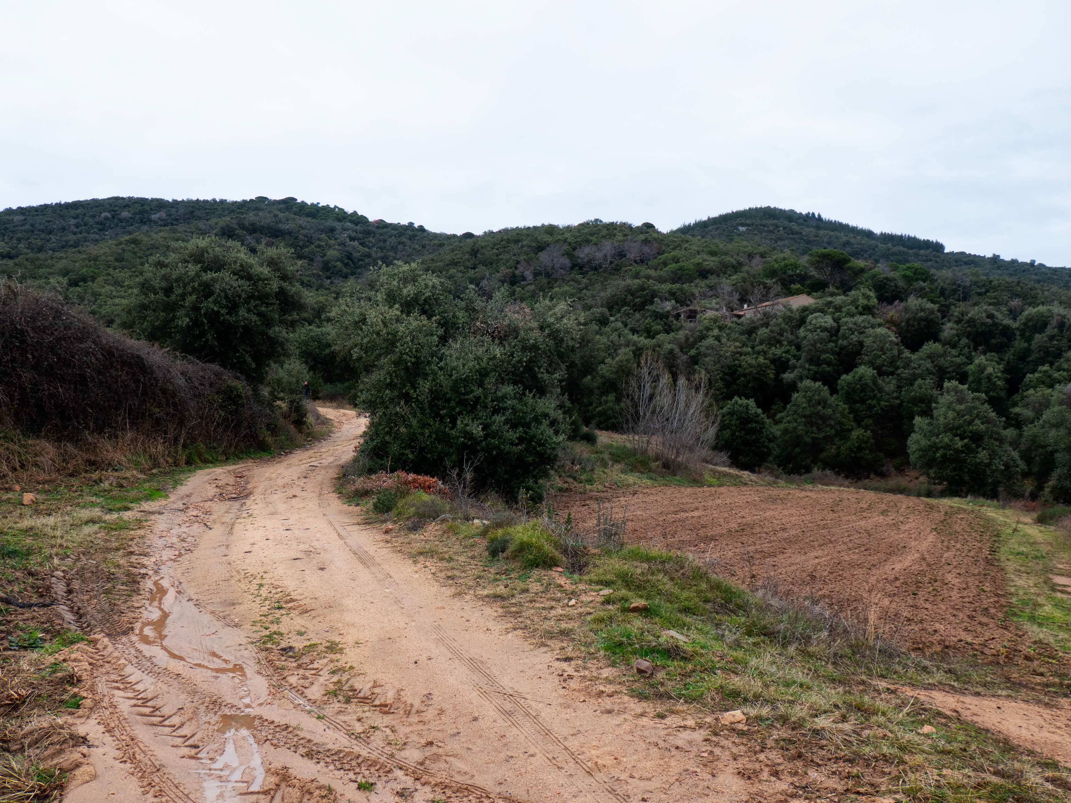 La pista, bastante encharcada debido a las lluvias de los últimos días, se acerca a la masía del Vilar, aunque ignoramos el desvío que conduce a la casa y subimos por la izquierda.