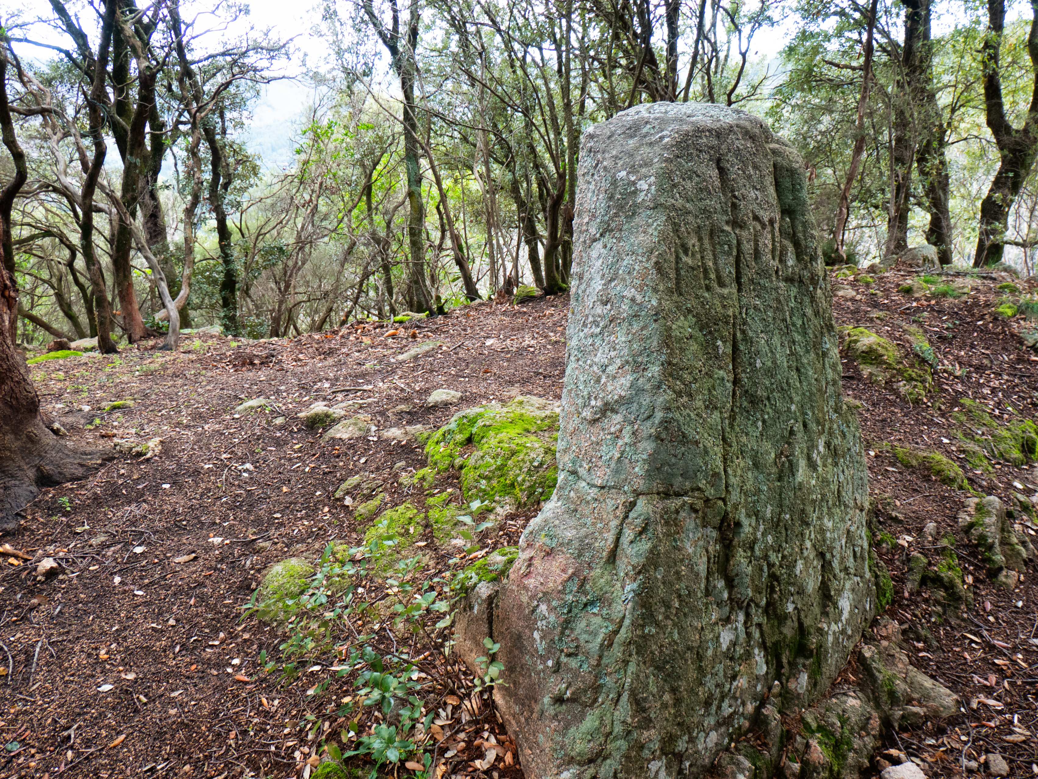 ...la Pedra dels Evangelis, un monolito con las letras “ML” y “MA” talladas en su superficie. Esta roca marcaba antiguamente la frontera entre los obispados de Vic y Girona, mediante las parroquias de Sant Miquel de Cladells (ML) y Santa Margarida de Vallors (MA).