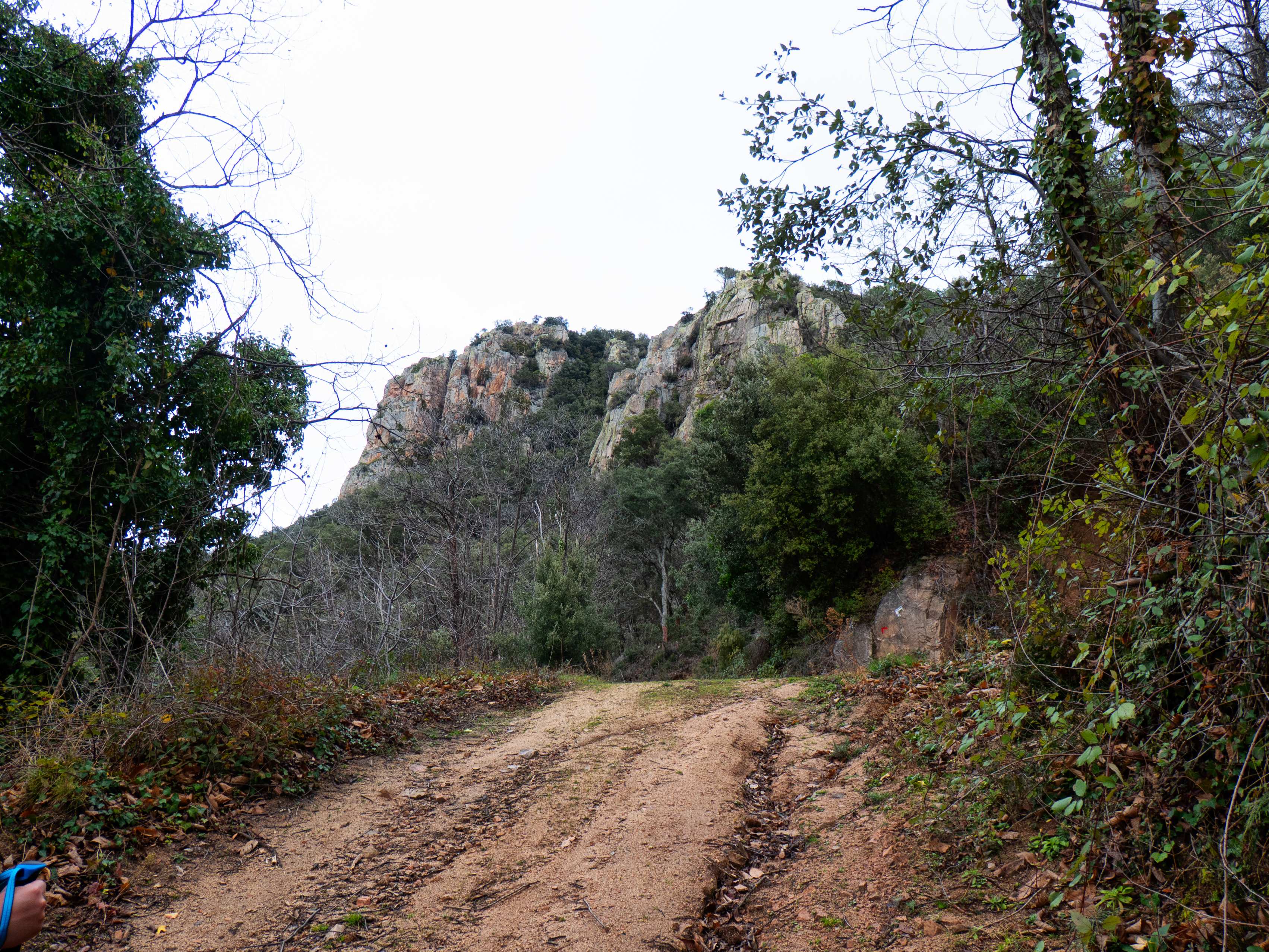 A medida que nos acercamos de nuevo a les Roques del Rei, ignoramos las marcas rojas que nos invitarían a regresar a la cumbre y seguimos fieles a la pista descendente. El camino vadea el Sot de la Mina y recorre la ladera oriental de les Roques del Rei, dirigiéndose hacia el sur.