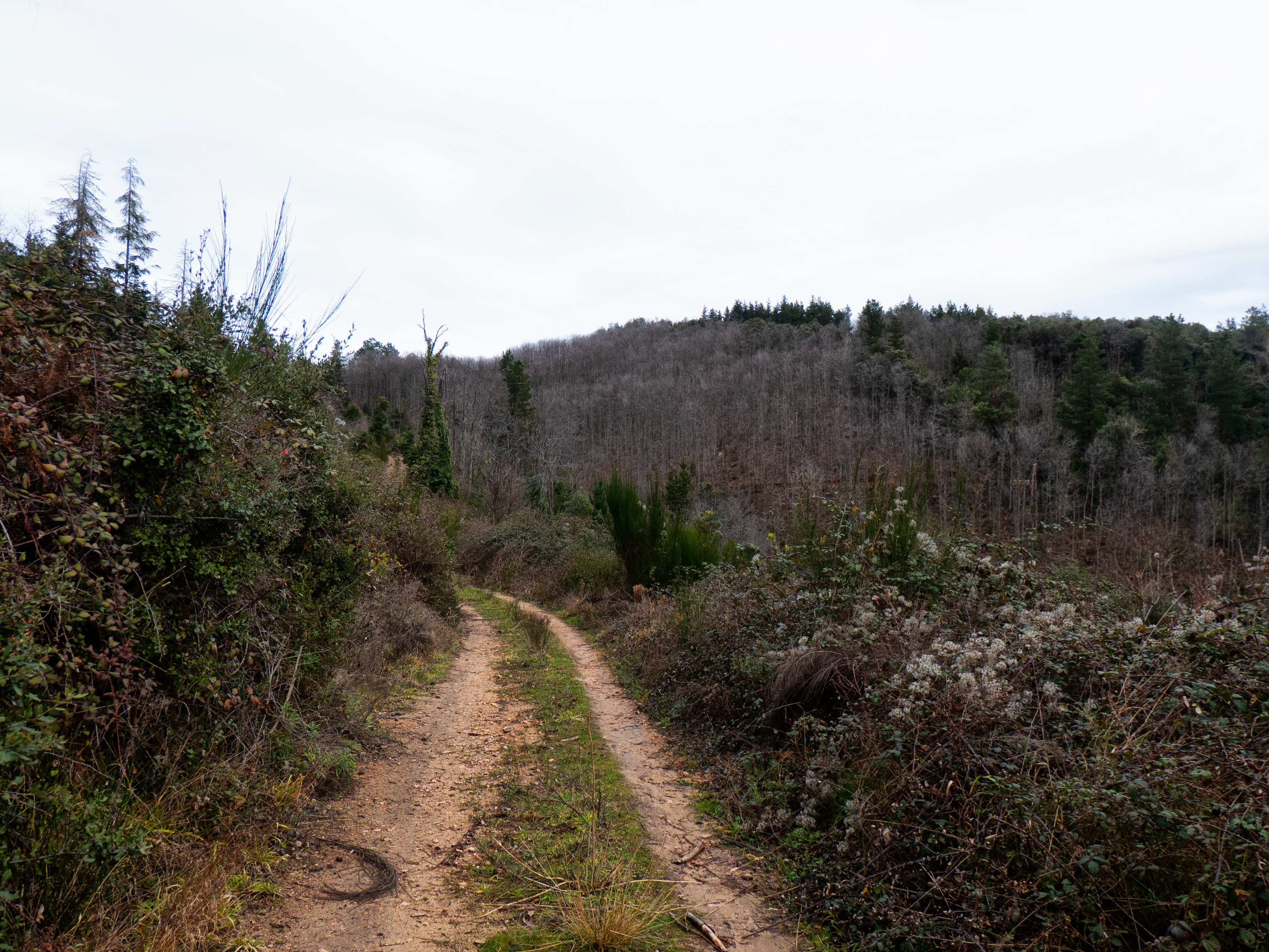 Comenzamos a caminar, en lo que será una nubosa jornada, siguiendo la pista del monasterio de Sant Salvi de Cladells, hoy reconvertido en espacio para eventos de todo tipo. Continuamos subiendo por la misma pista que veníamos siguiendo con el coche, de forma muy suave, en lo que será la tónica general de casi toda la excursión.