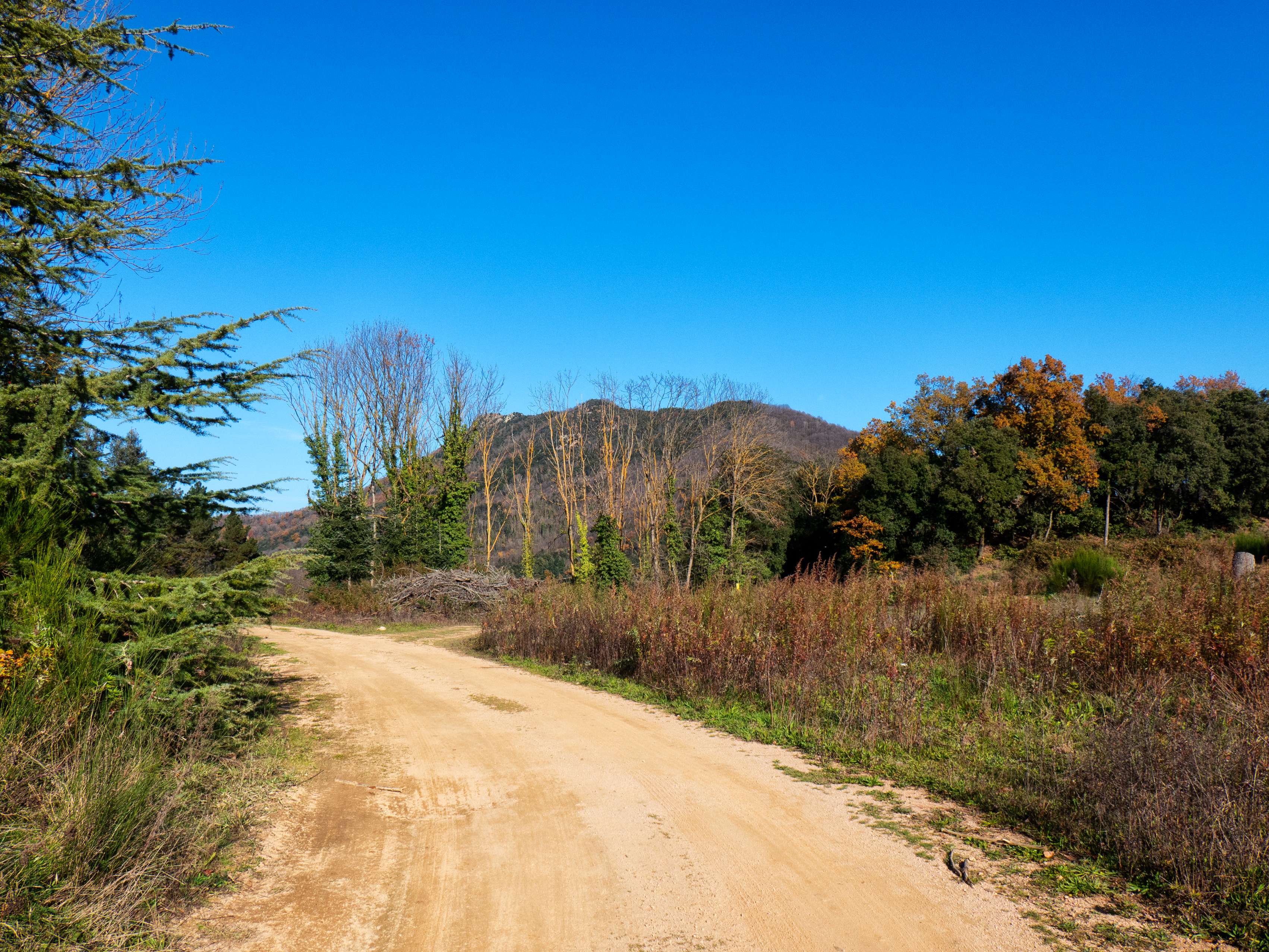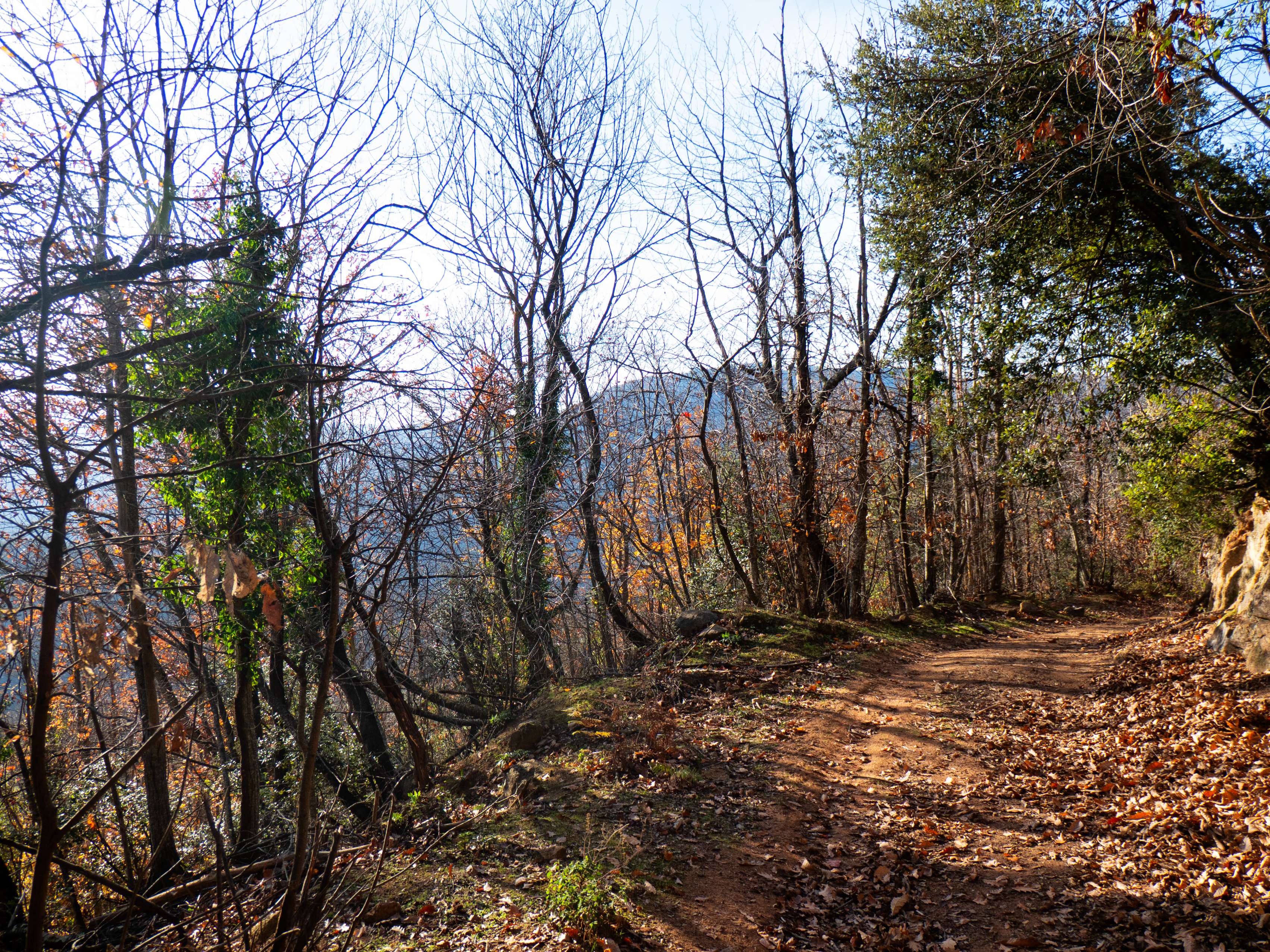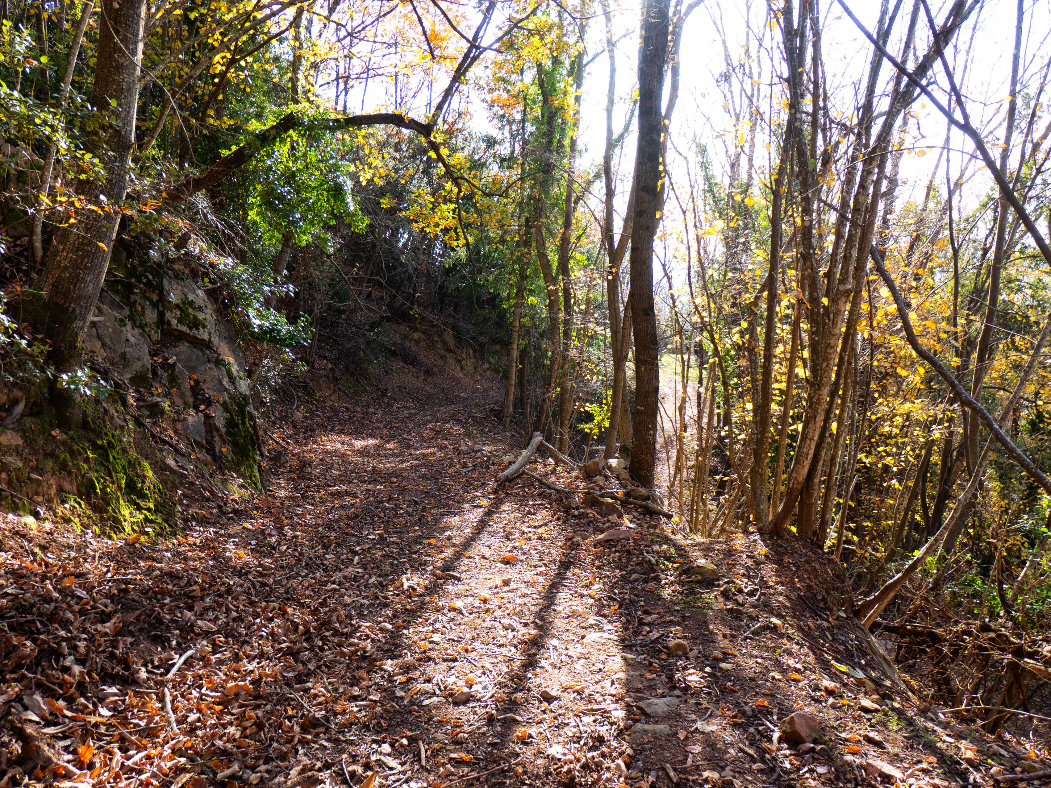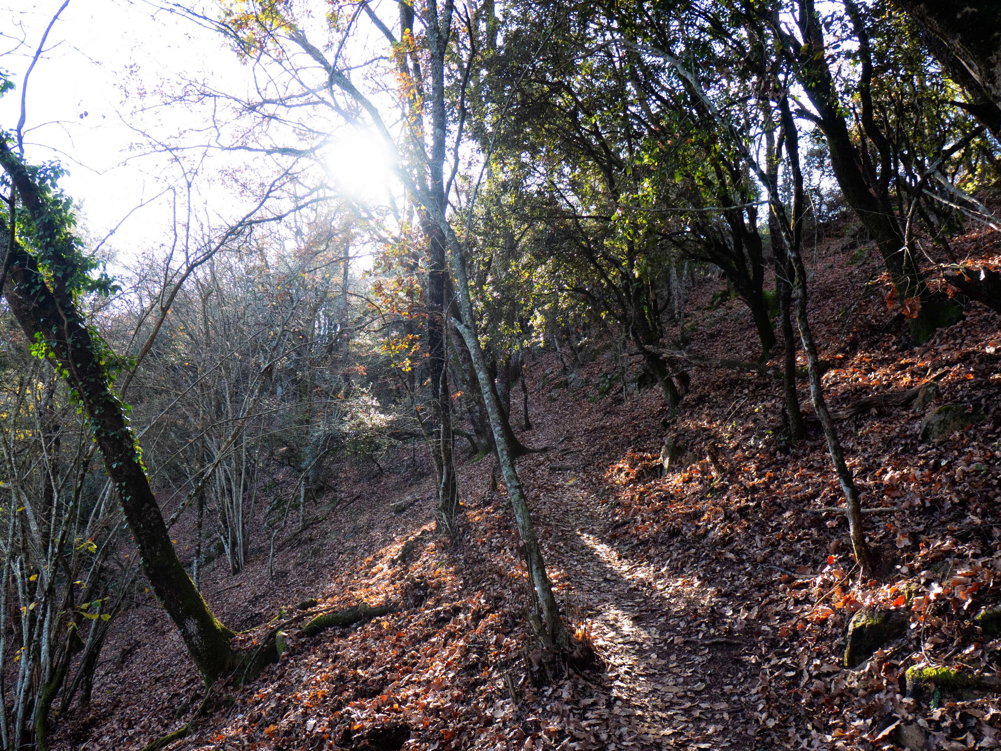 Un último ascenso bajo la suave luz invernal del atardecer nos dejará en el parking de Can Calabrès, completando esta ruta por la gran montaña de les Guilleries.