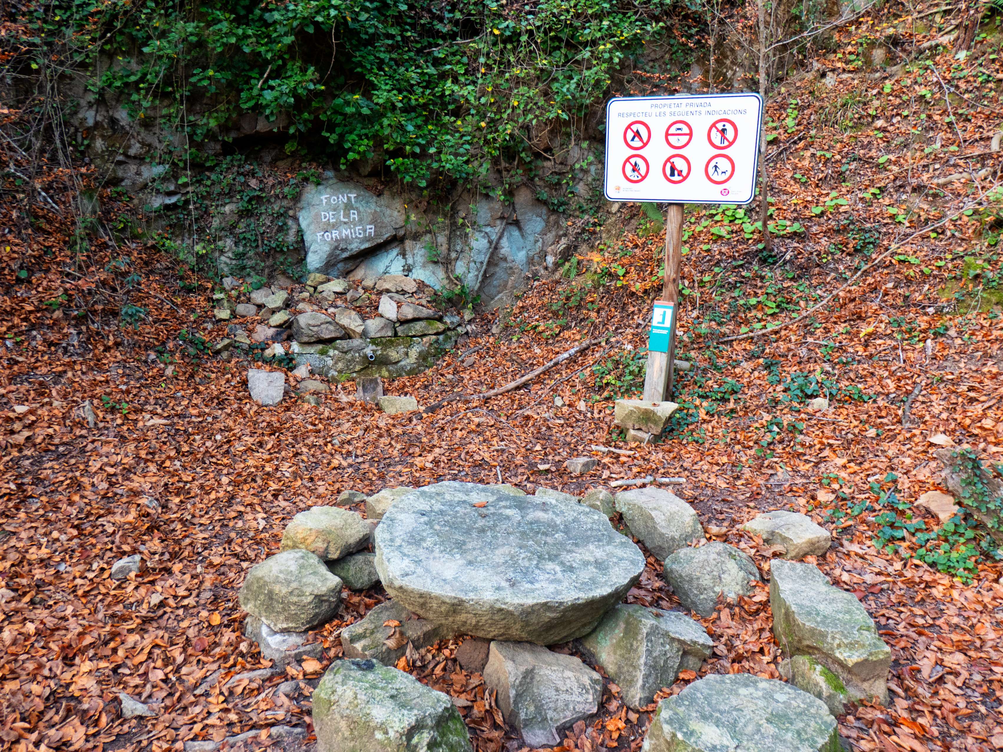 ...visitar la Font de la Formiga, hoy seca a pesar de que el torrente que hay a su lado baja con buen caudal. Si bajamos unos metros más...