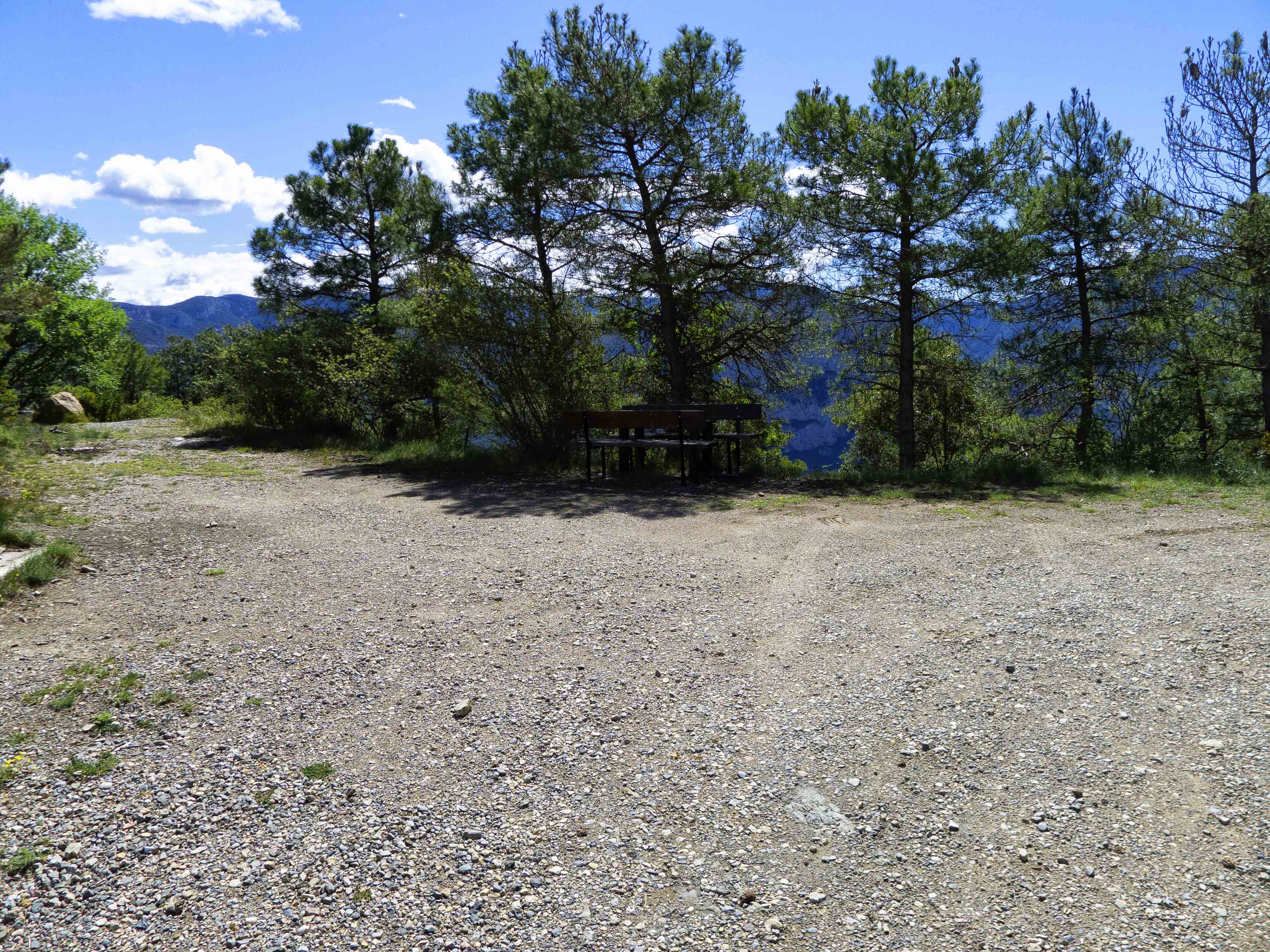 ...la gran explanada del Coll Marí, donde hay unos bancos y un cartel informativo.