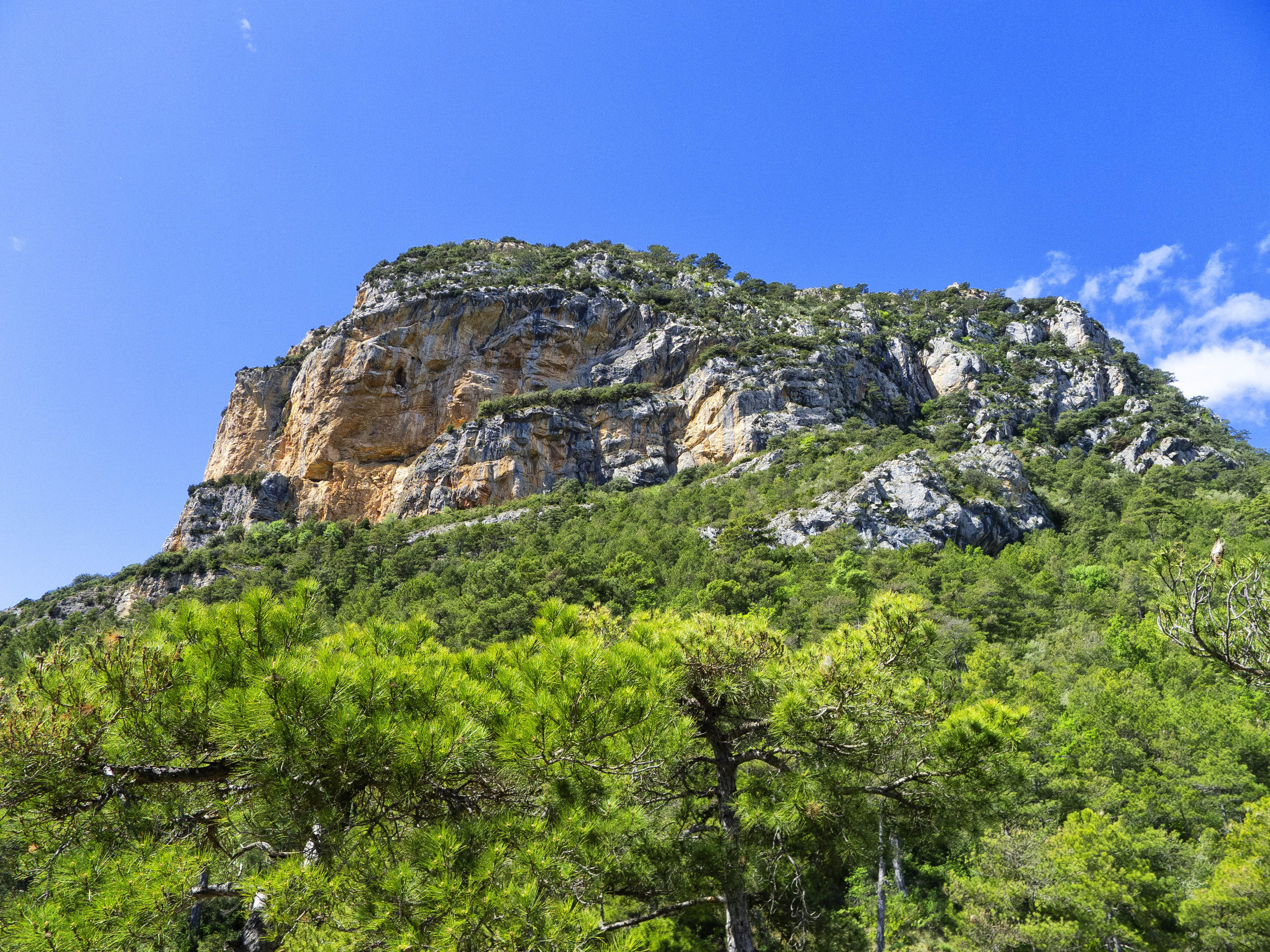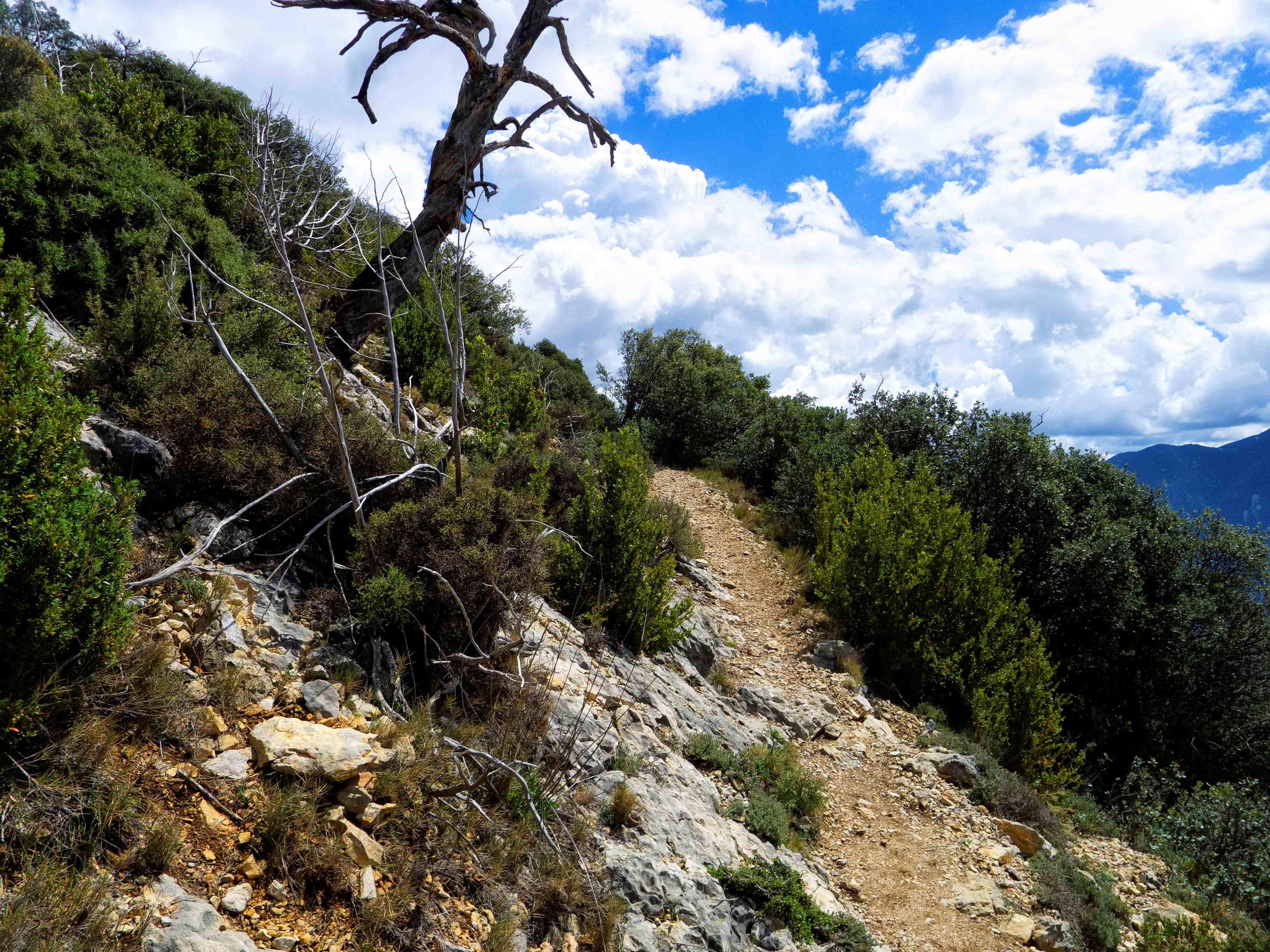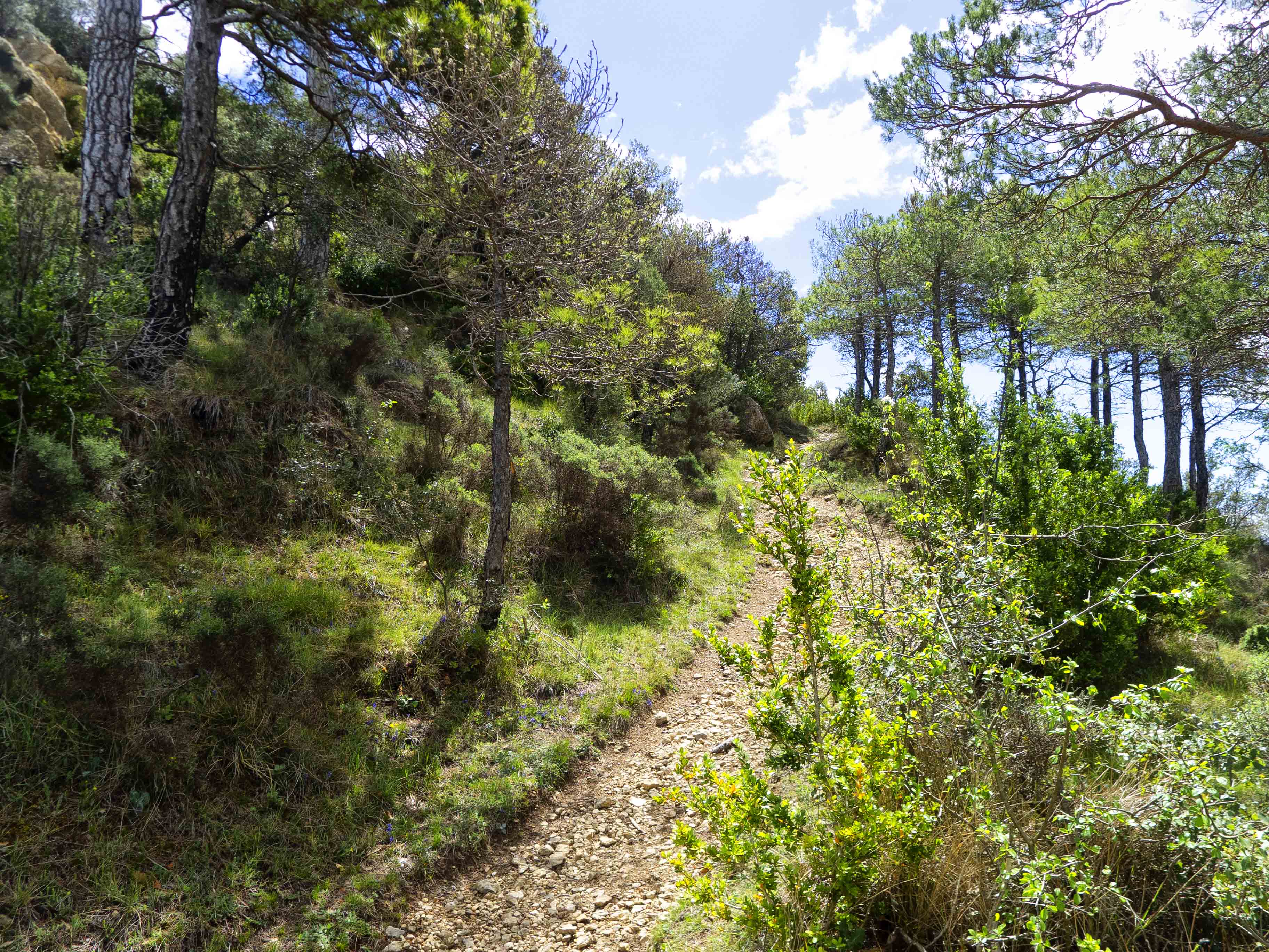 Tras haber ganado algo más de 100 metros de altura, el sendero aprovecha una vira para hacer un precioso recorrido horizontal, con grandes vistas sobre la Vall de Cabó.