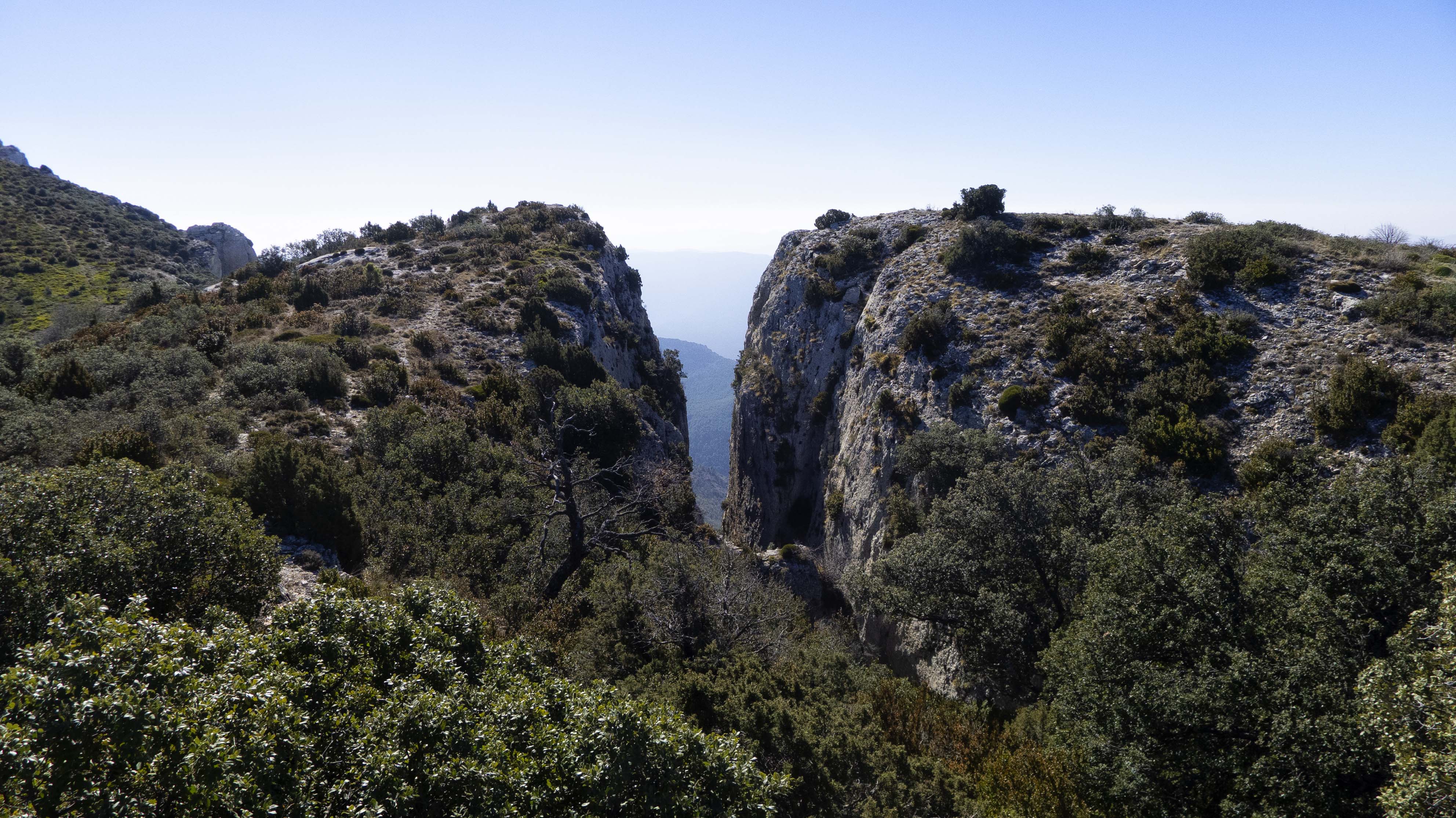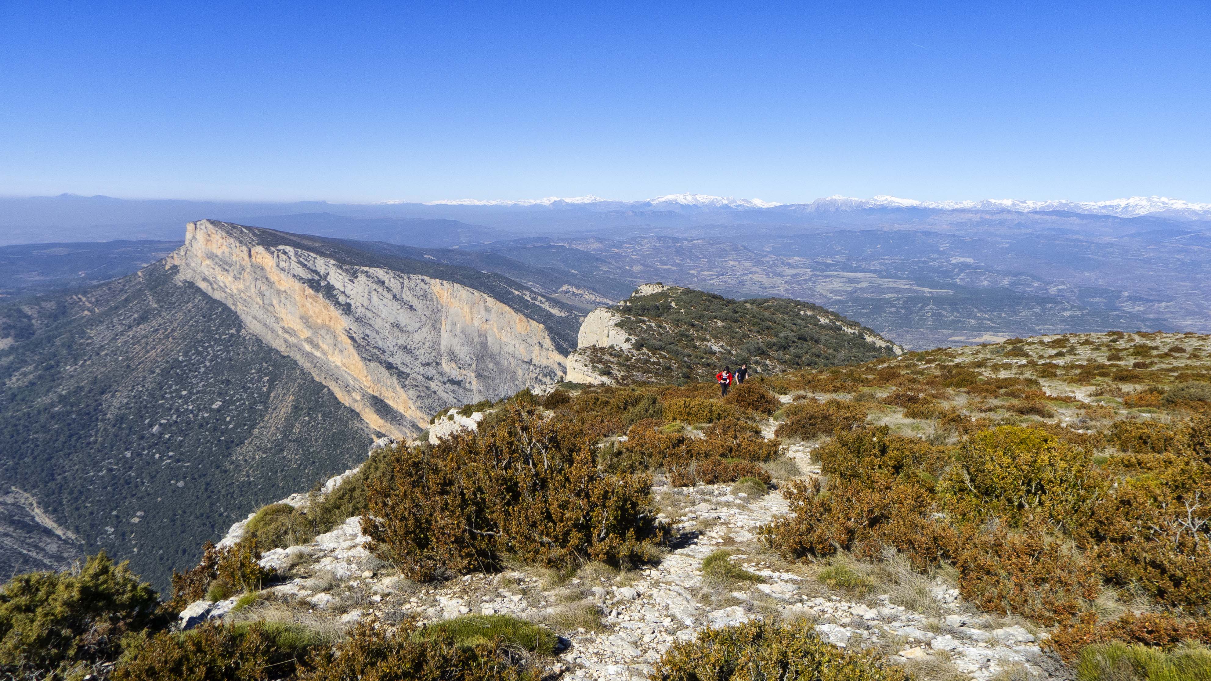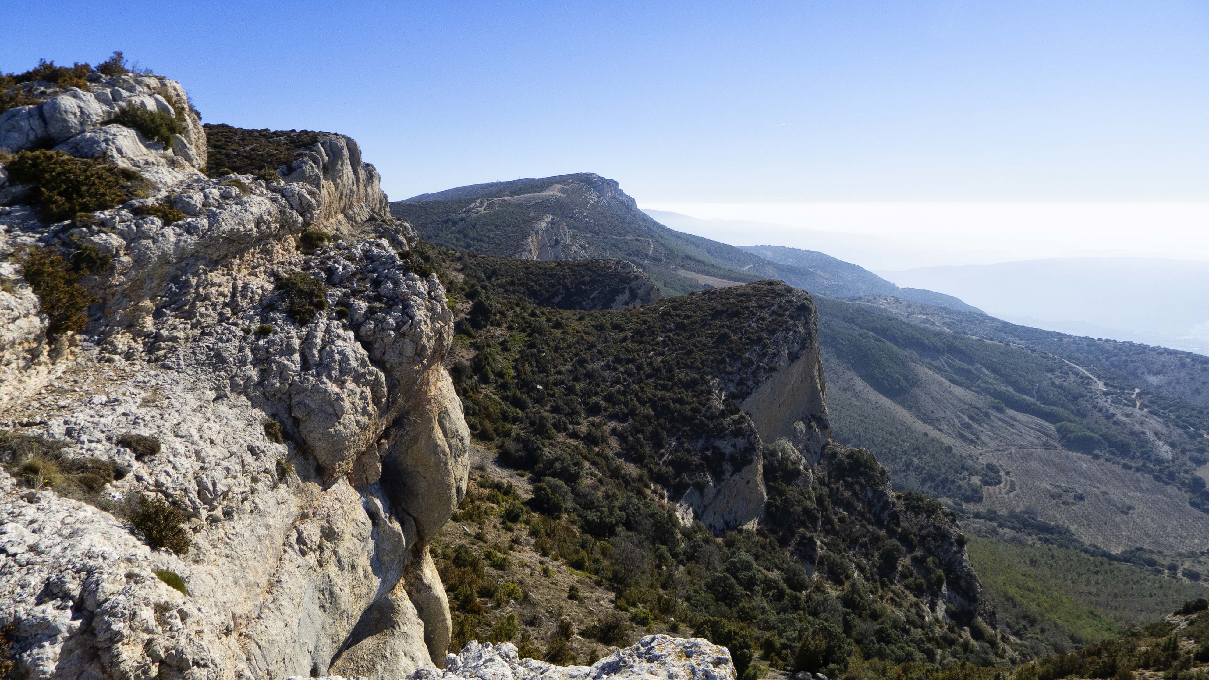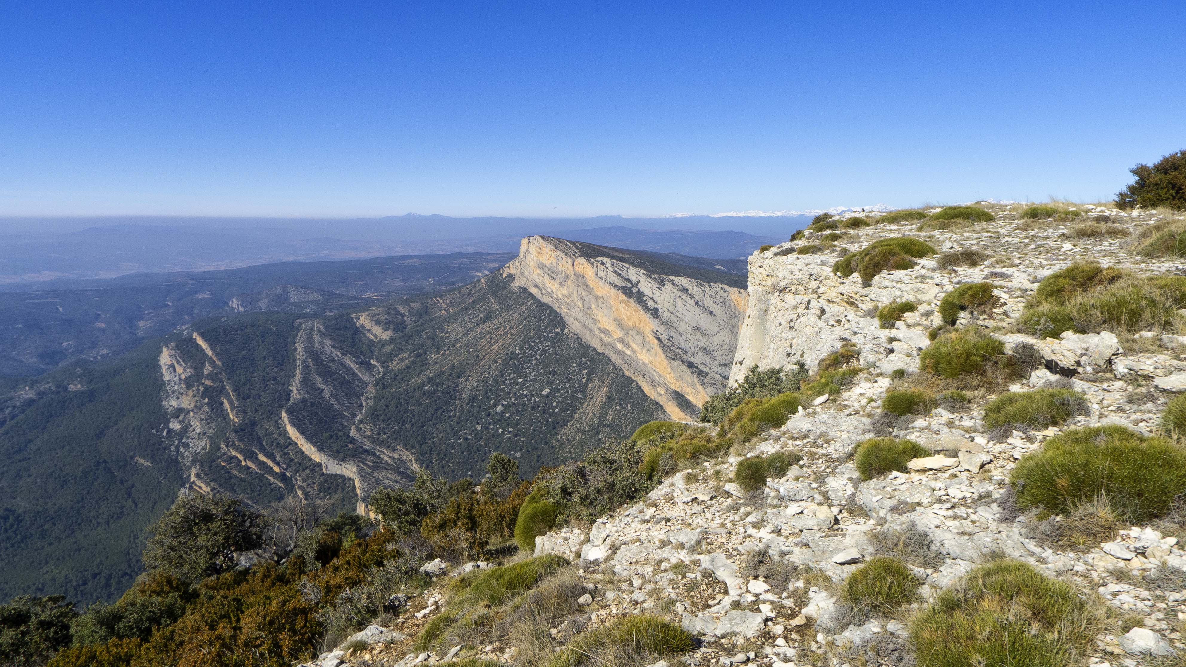 Vale la pena desviarse un poco hacia la izquierda pues nos asomaremos a la agreste vertiente sur del Montsec, con sus clásicas proas desplomándose hacia la Vall d'Àger.