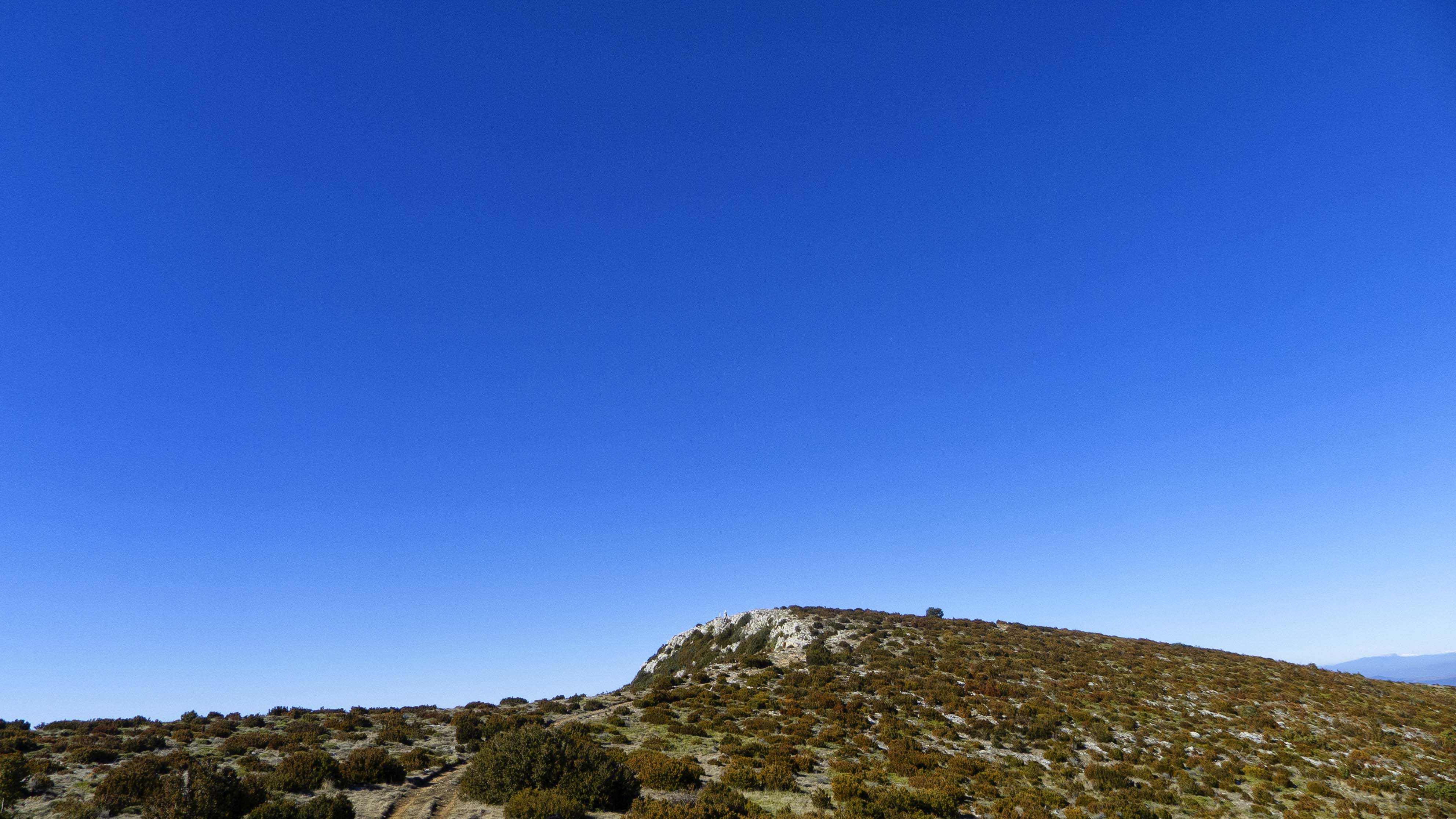 Así pues, nos empezamos a dirigir hacia la pared, empezando la larga bajada hacia La Trona, que es la pequeña protuberancia que hay al fondo de la loma. Utilizamos la pista que, aunque casi impracticable para vehículos, nos viene de perlas para avanzar con rapidez.