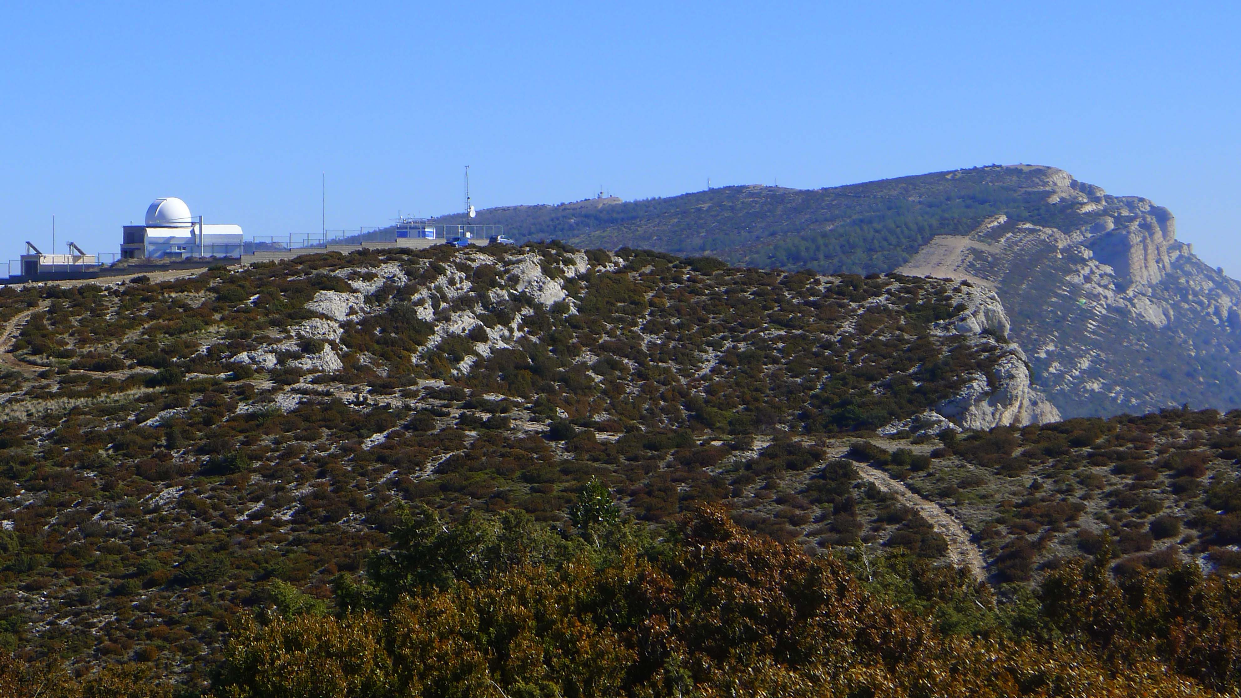 Tras una breve subida llegamos al observatorio, que aprovecha la poca contaminación lumínica de la zona para observar el espacio (el Montsec ha sido incluso certificado como zona Starlight, que premia los lugares del mundo con una mejor visibilidad nocturna del cielo).