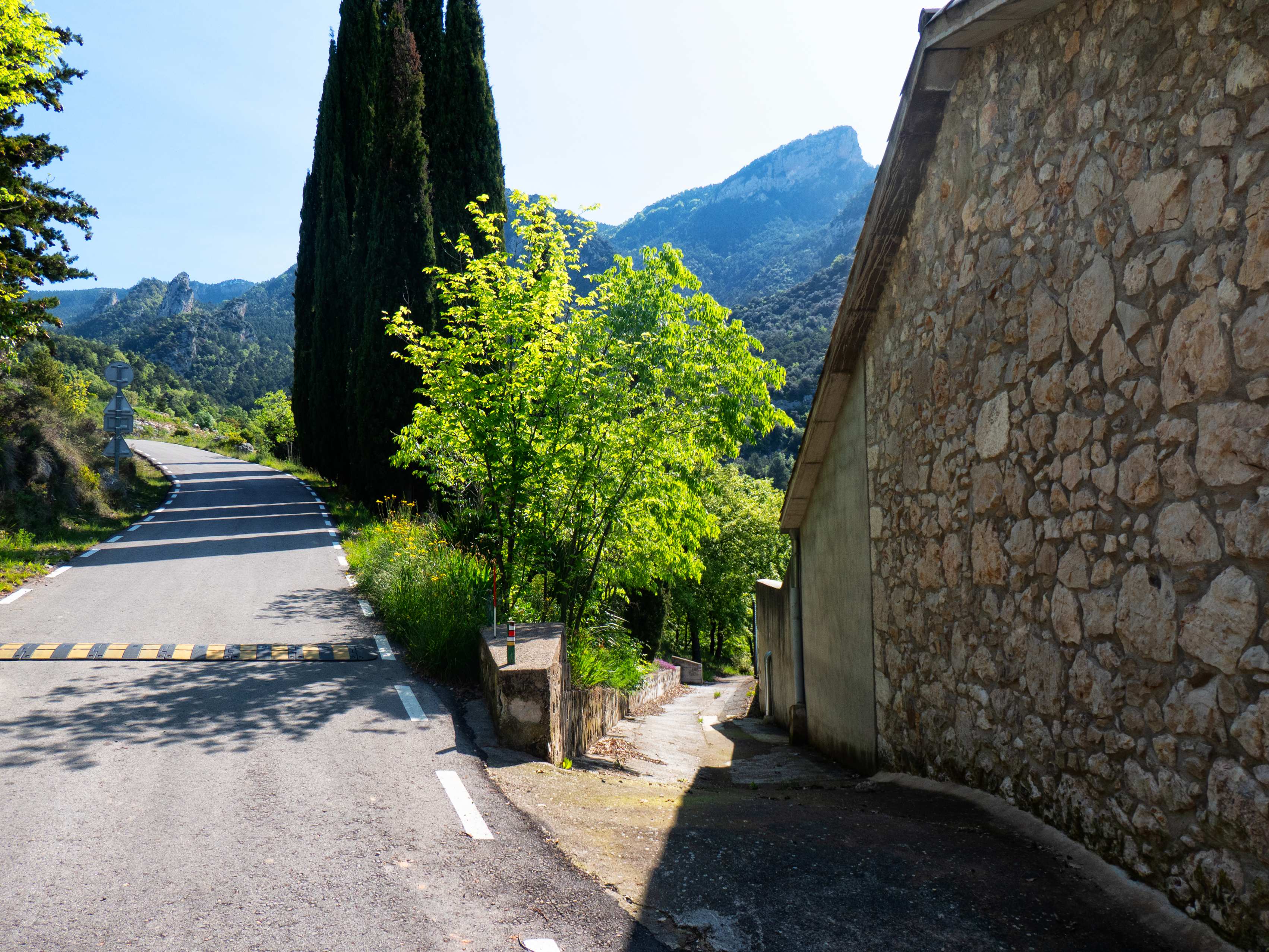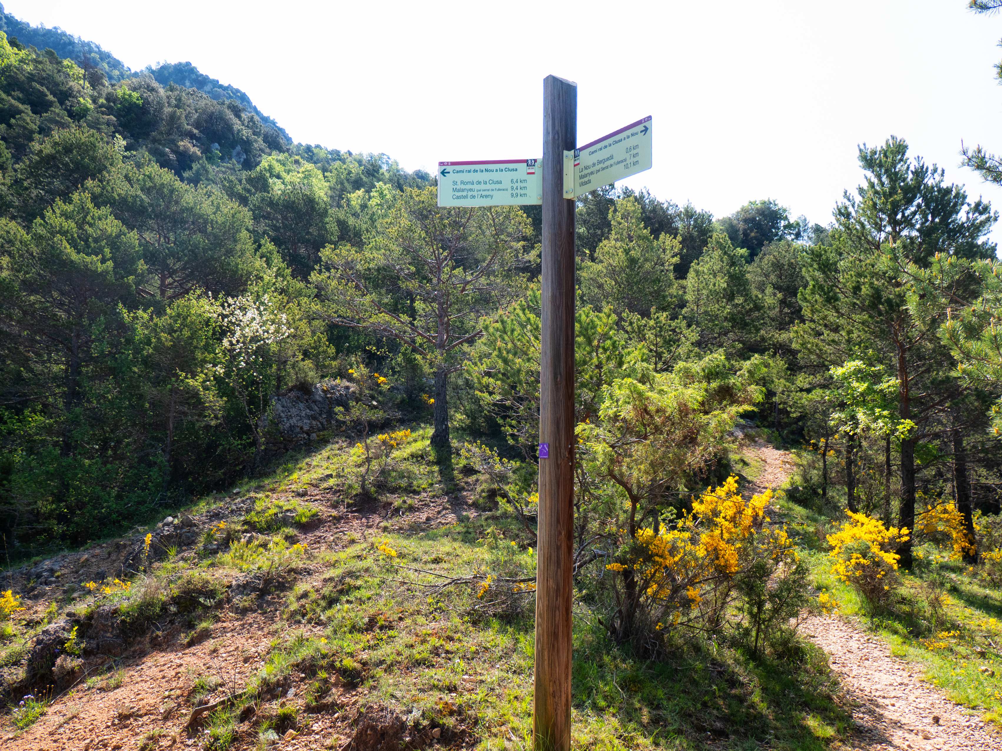 Empezamos a andar por las calles de la Nou de Berguedà en un caluroso y despejado día de mayo, cuando los bosques del Catllaràs lucen en todo su esplendor. Tras seguir unos metros por la carretera que cruza el pueblo, nos desviamos rápidamente por un camino asfaltado en el que confluyen las marcas de GR y de PR.
