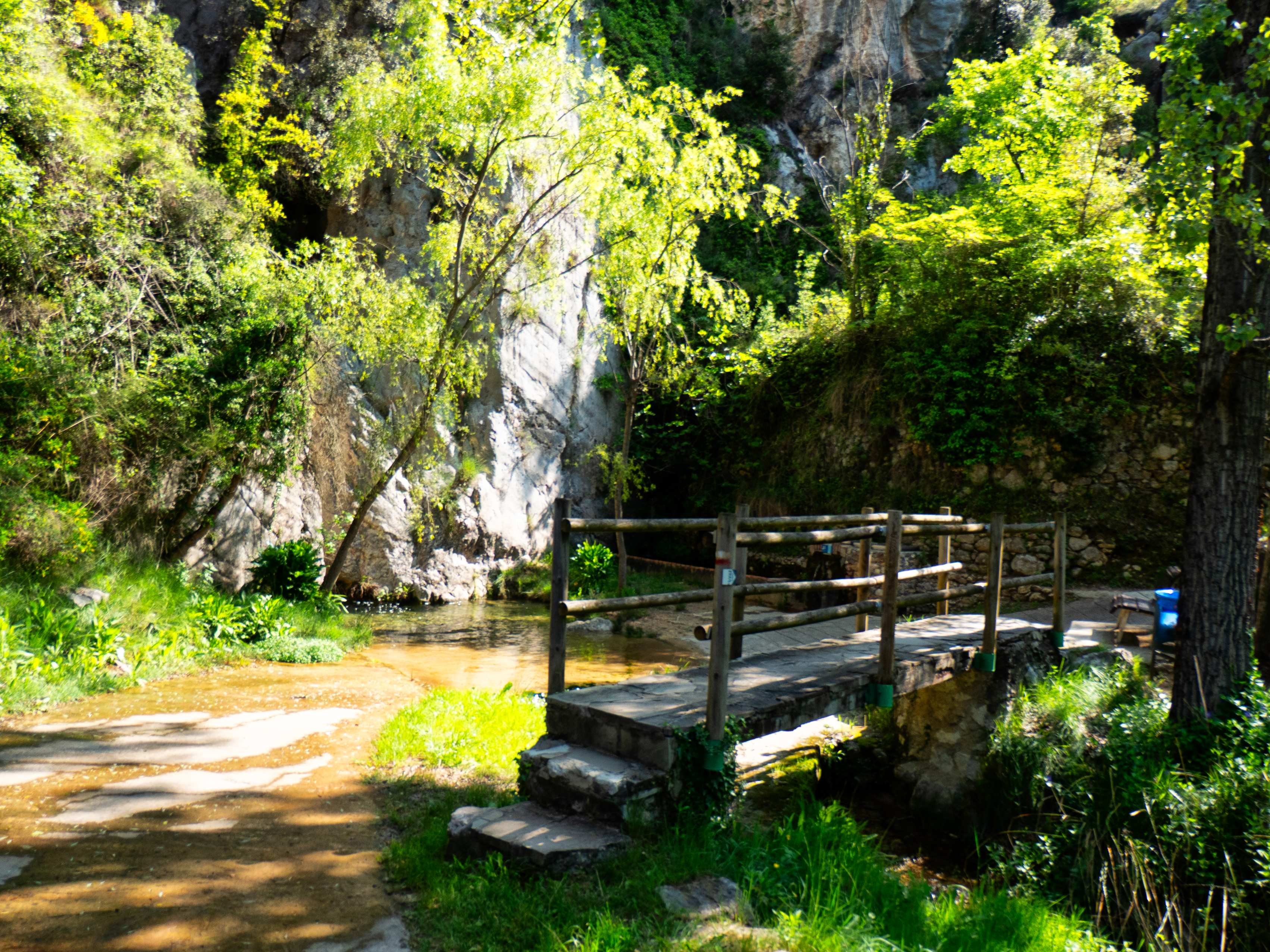 El sendero nos lleva a cruzar el Torrent de la Nou, que aquí forma una bonita cascada.
