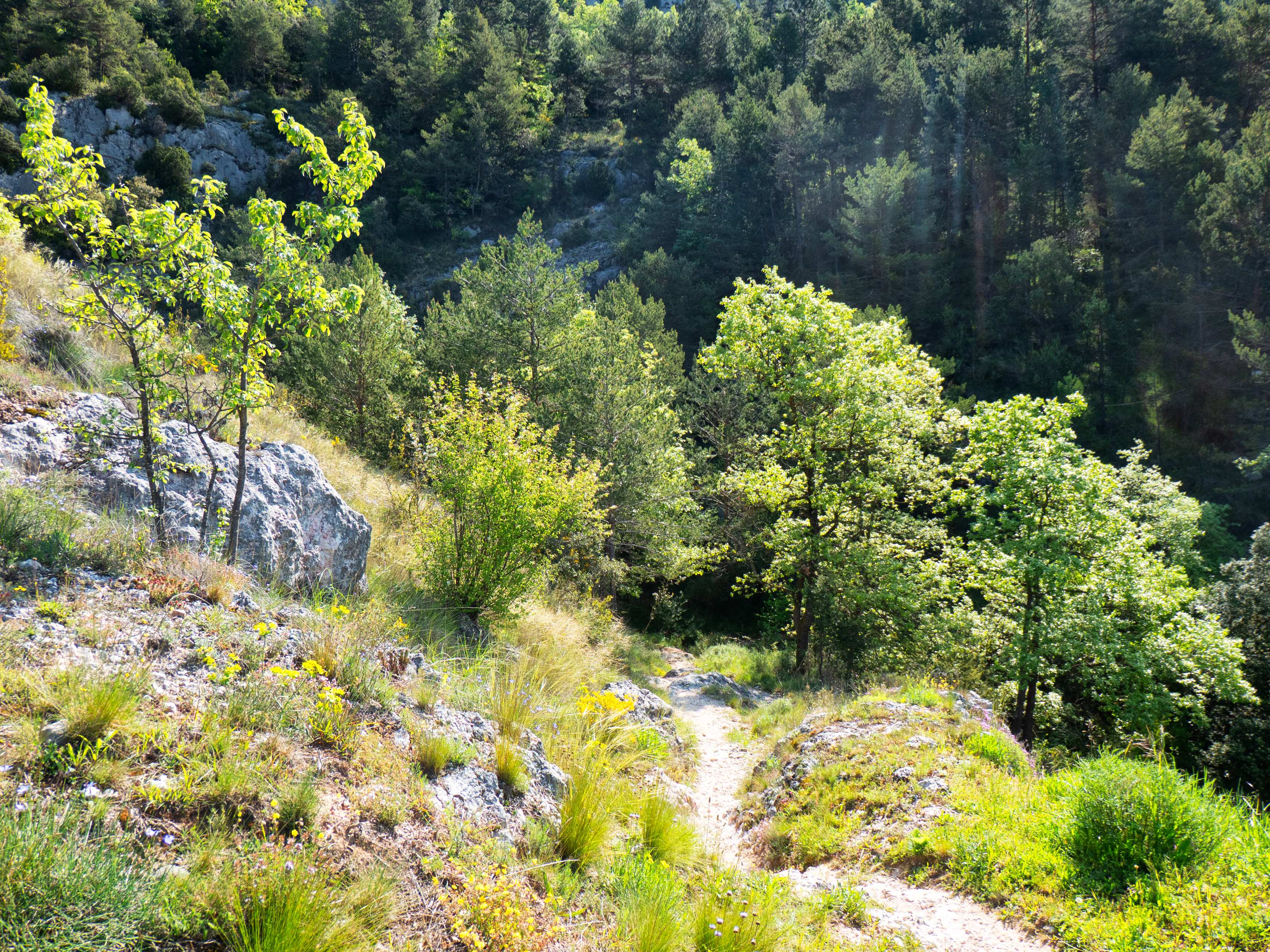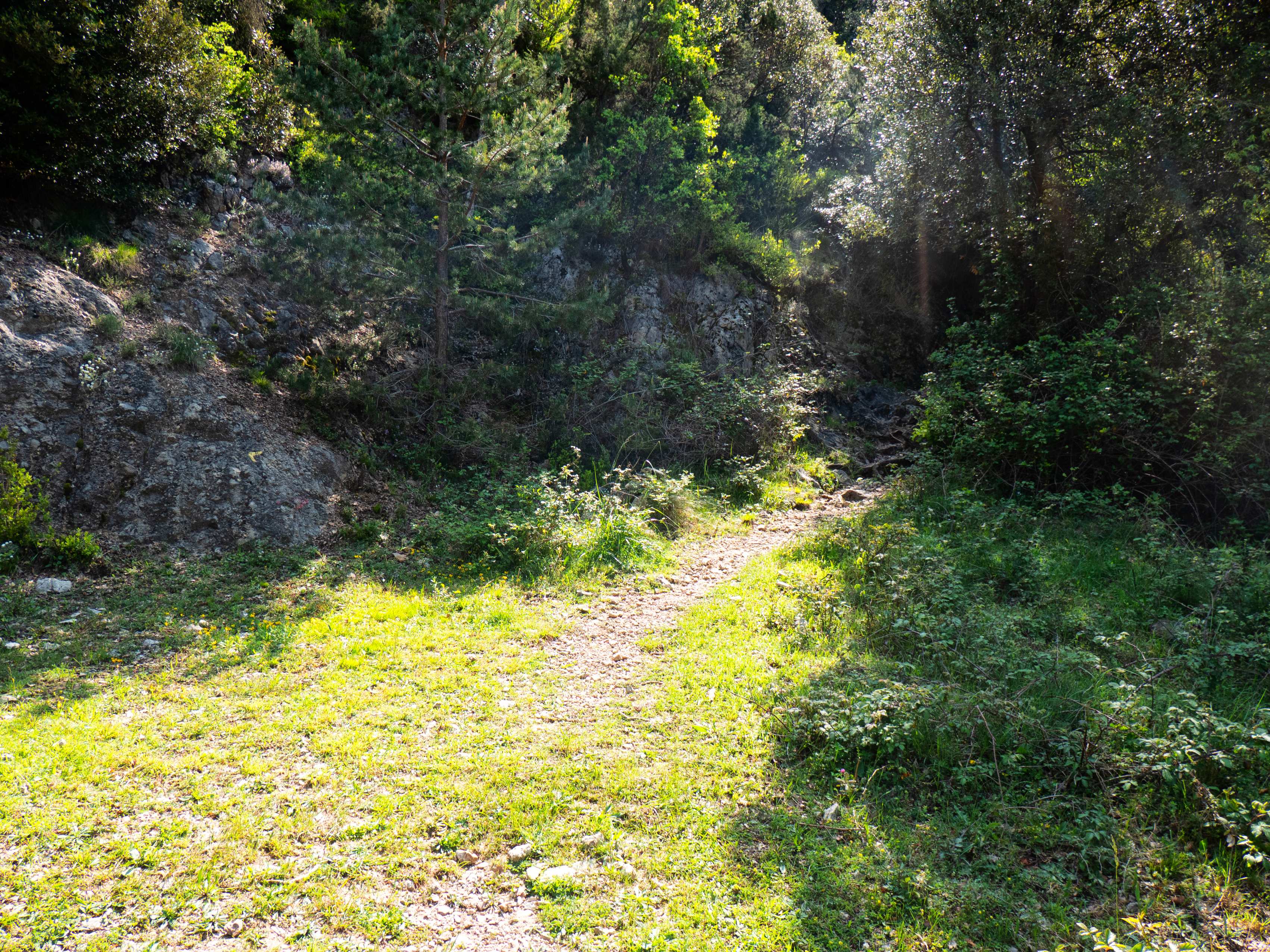 En el punto donde este camino traza una curva, un sendero lo abandona para adentrarse en el Torrent de la Foranca.