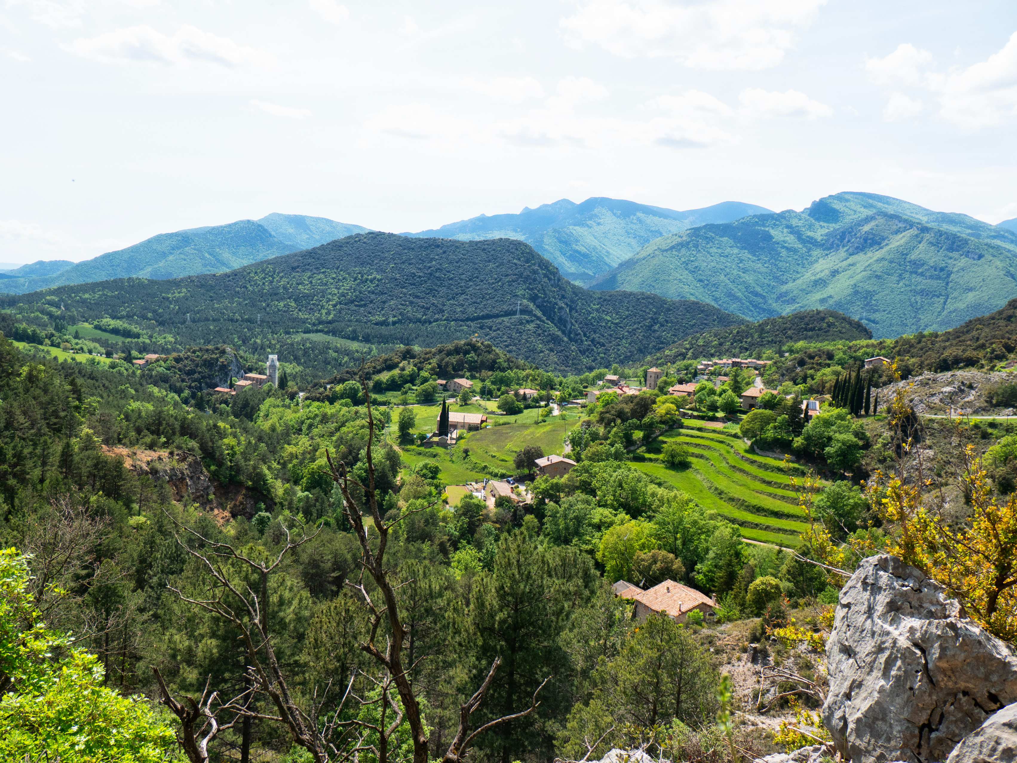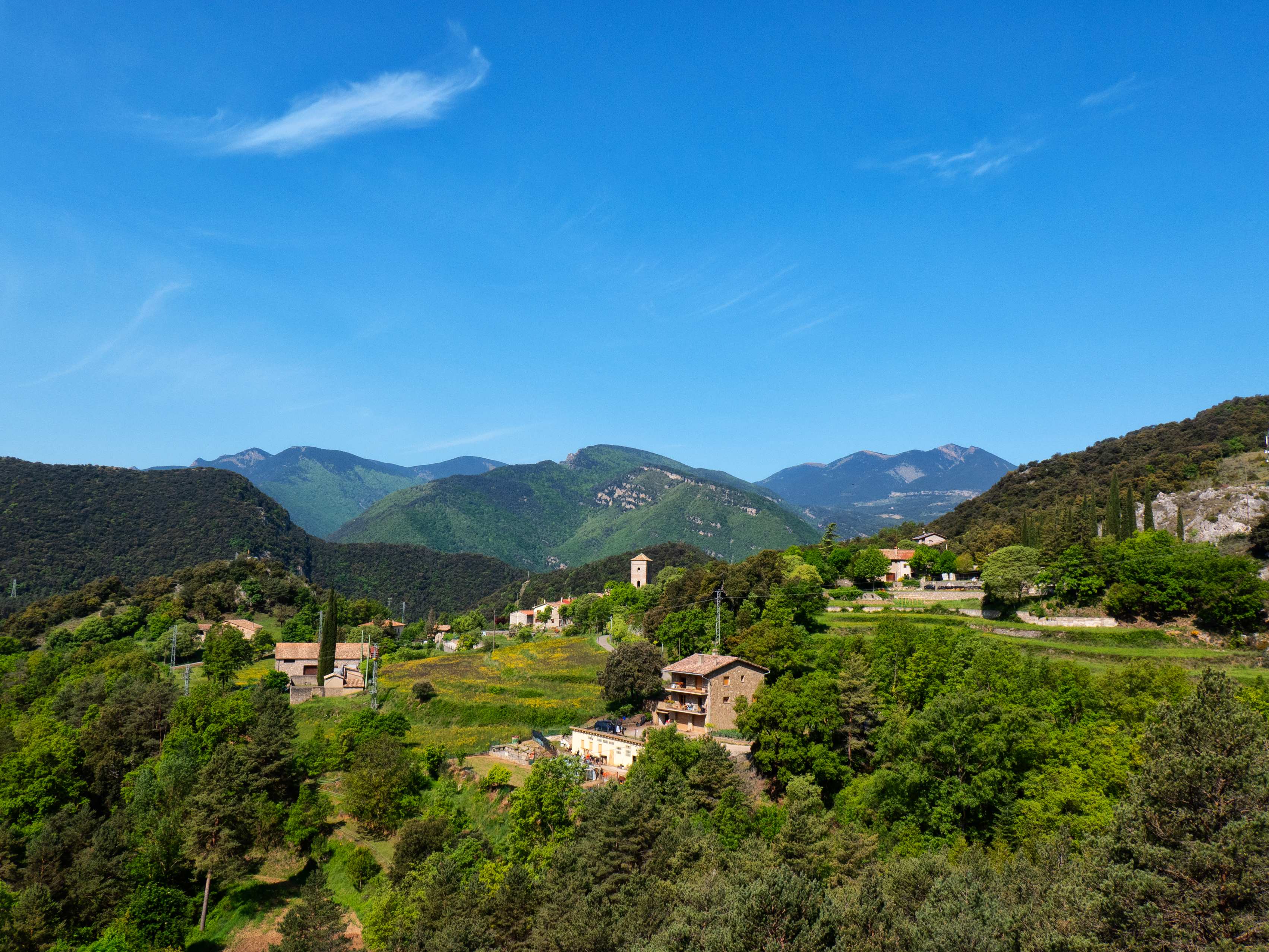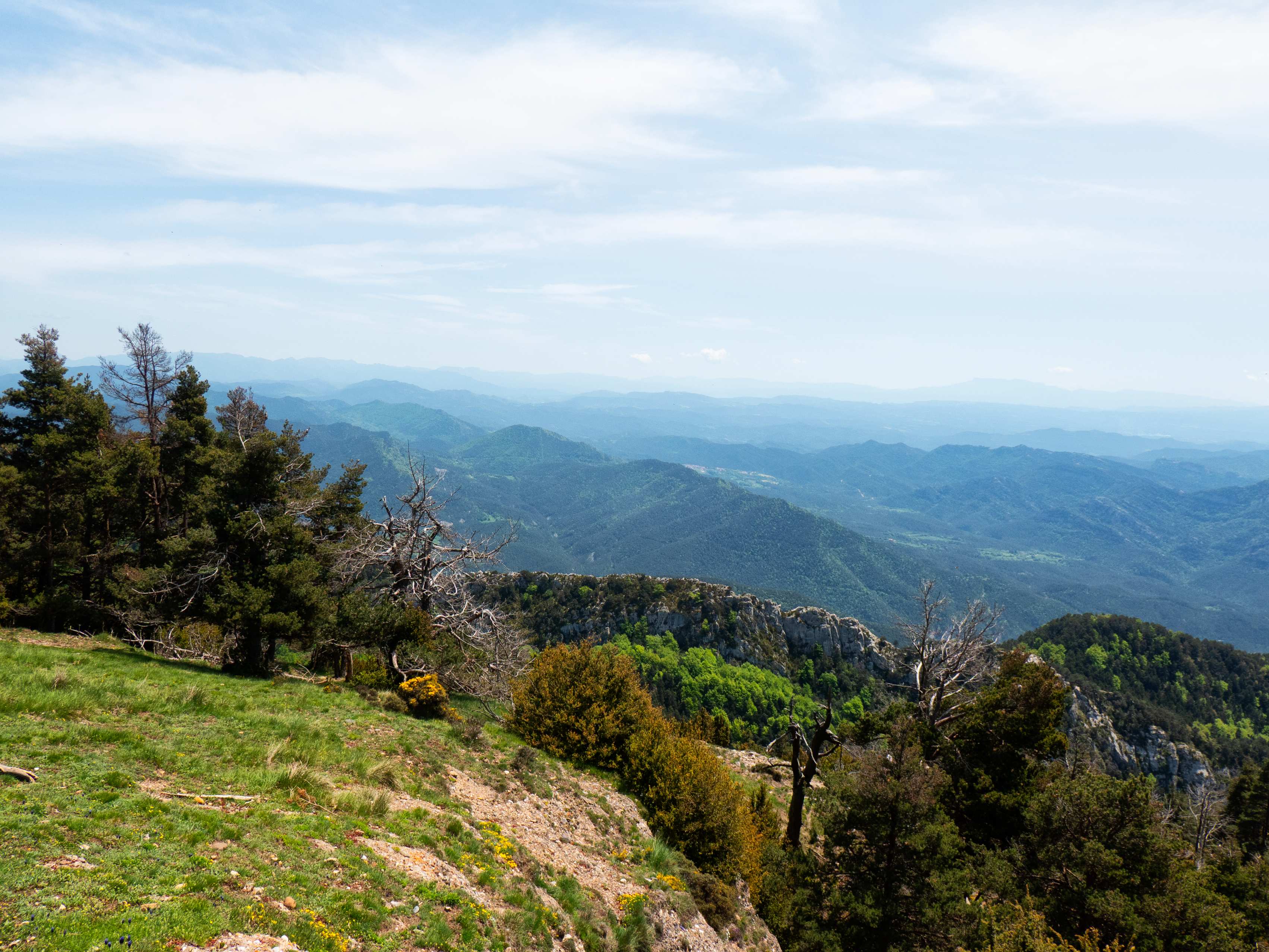A cambio, ganamos perspectiva hacia el este, donde asoman las suaves colinas del Lluçanès y, en la lejanía difuminada, el Montseny y la Cordillera Transversal.