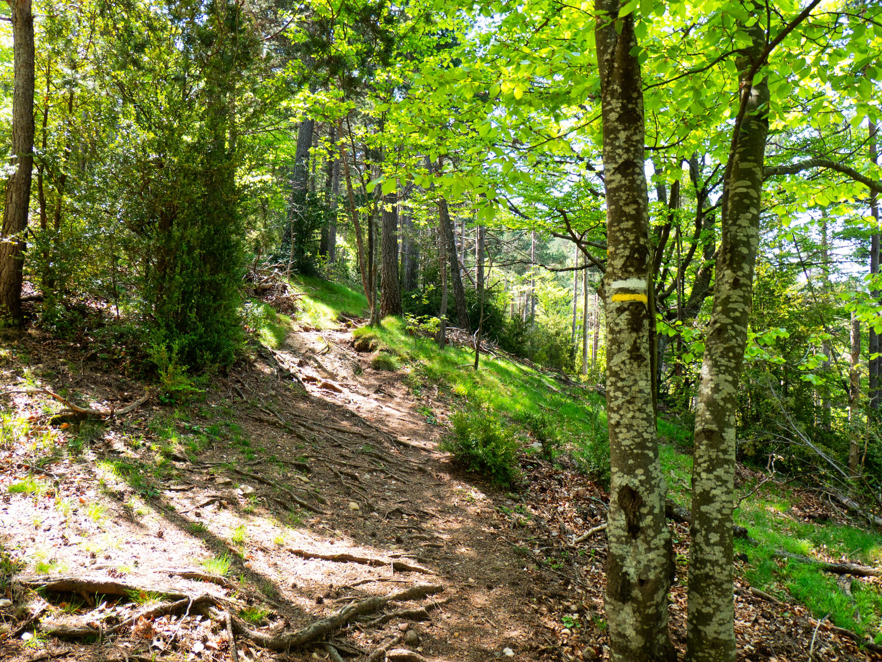 Dificultad técnicaNula. Recorrido siempre por buenos senderos aunque bastante empinados.