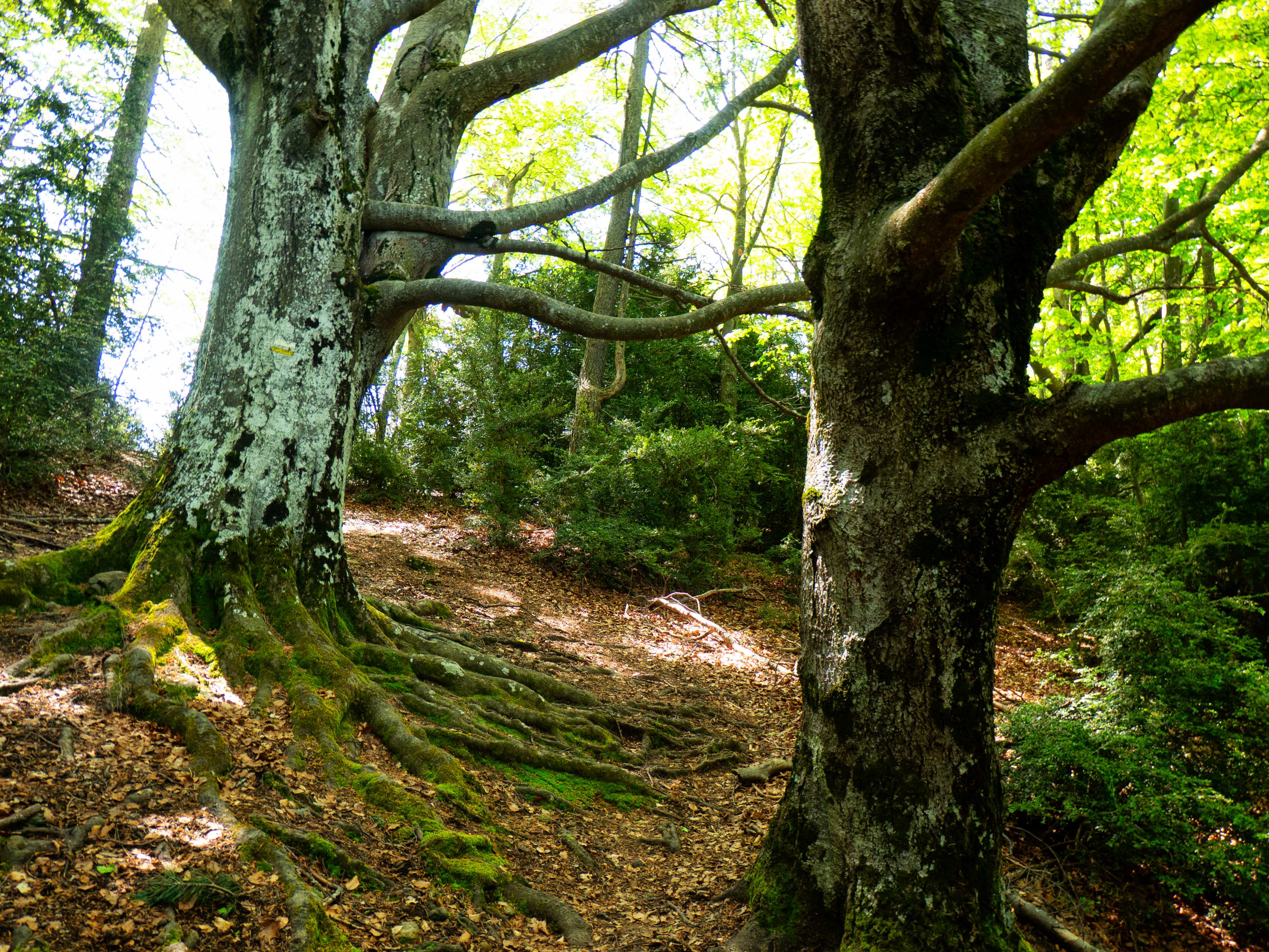 Junto a una de estas hayas monumentales, al lado de la Font del Faig (hoy seca), giramos a la derecha para dirigirnos a la cresta del Sobrepuny.