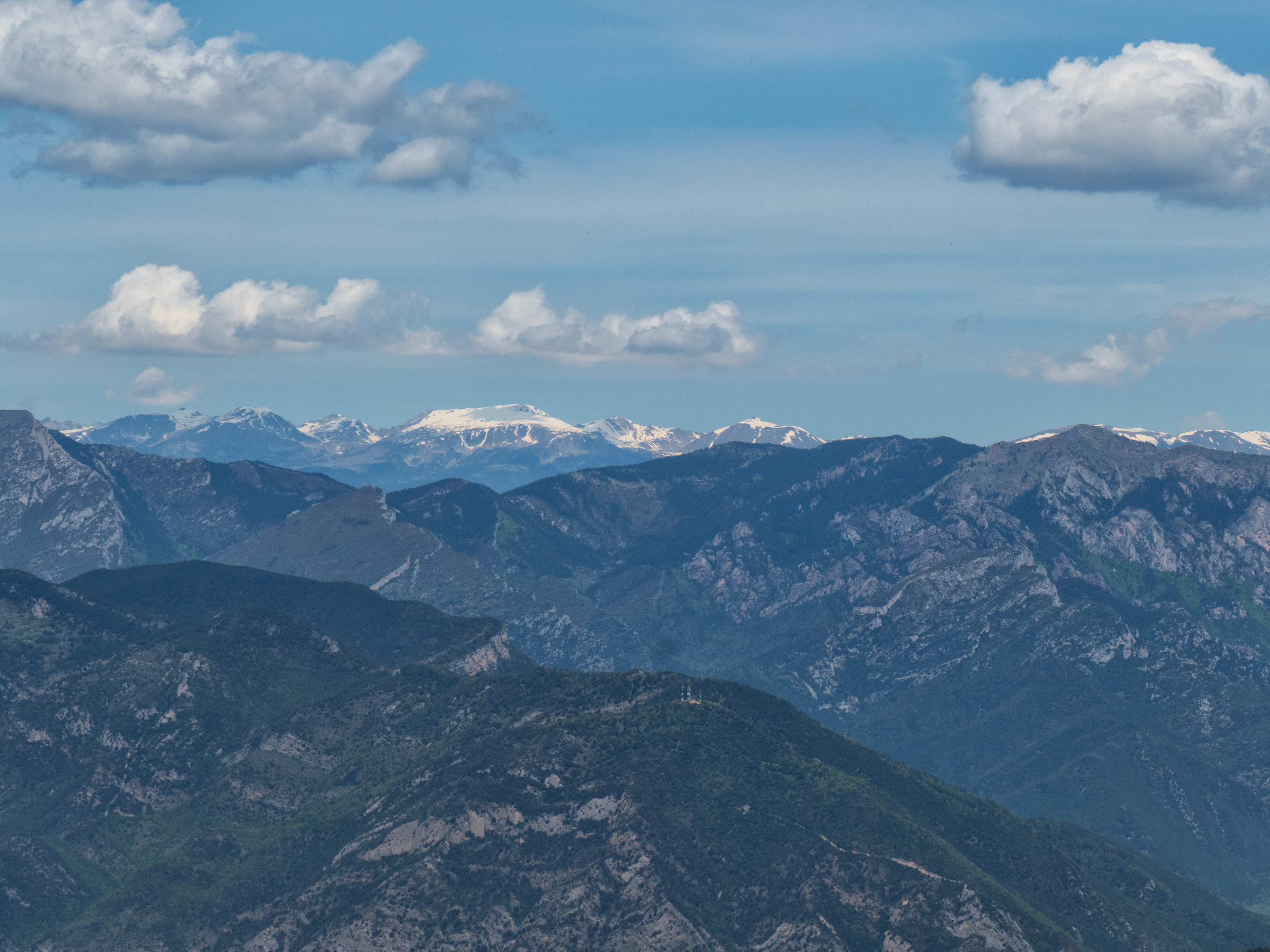 Las vistas desde el Sobrepuny son similares a las de antes pero, como hemos dicho, más limitadas, pudiendo ver hasta Ensija. Al menos tenemos una buena perspectiva de la muralla meridional de esta cumbre, con el Sobrepuny de Baix destacando sobremanera.