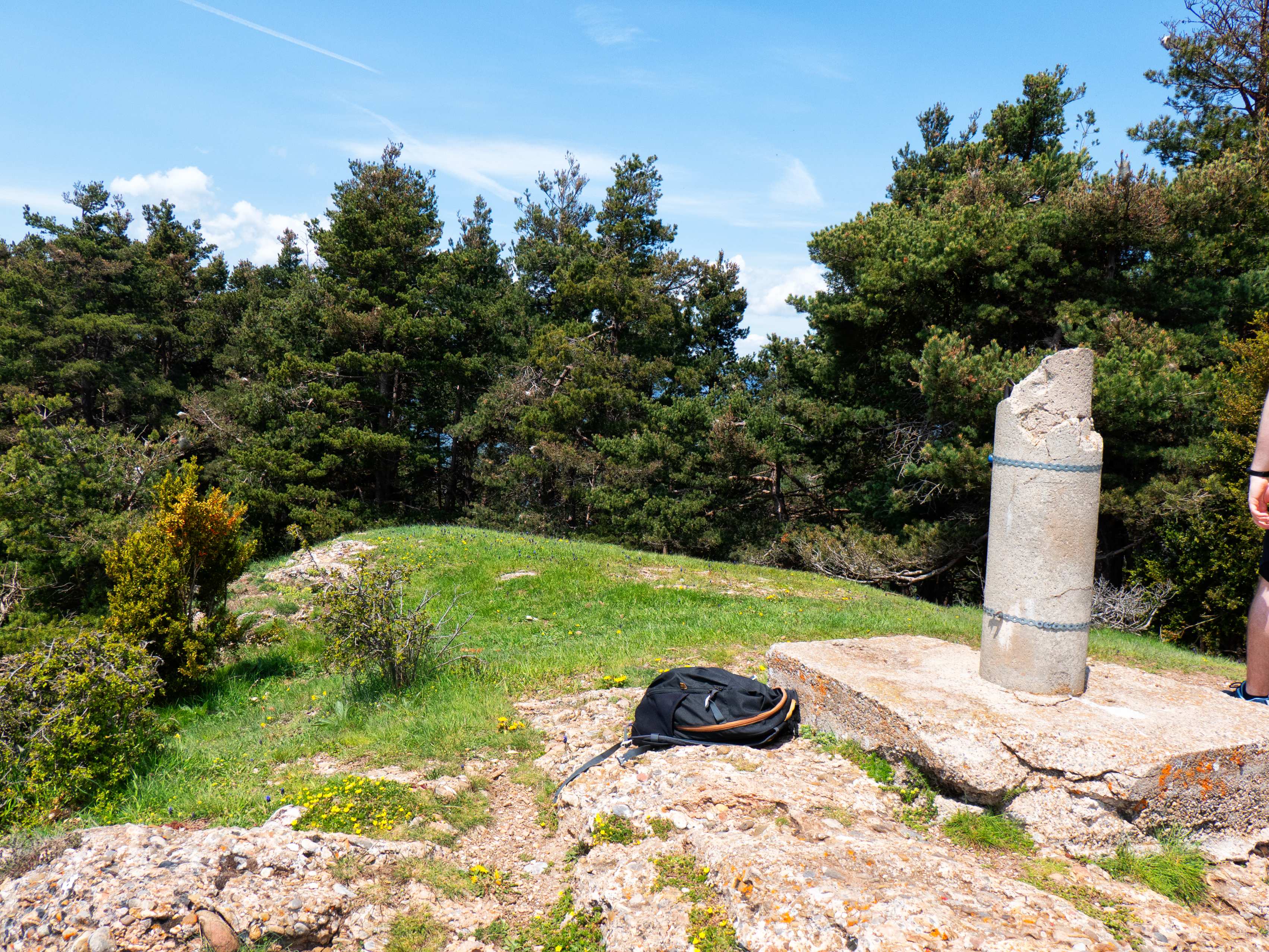 Finalmente, llegamos al vértice geodésico del Sobrepuny que, como podemos observar, no tiene vistas hacia el norte debido al bosque que llega hasta la misma cima.